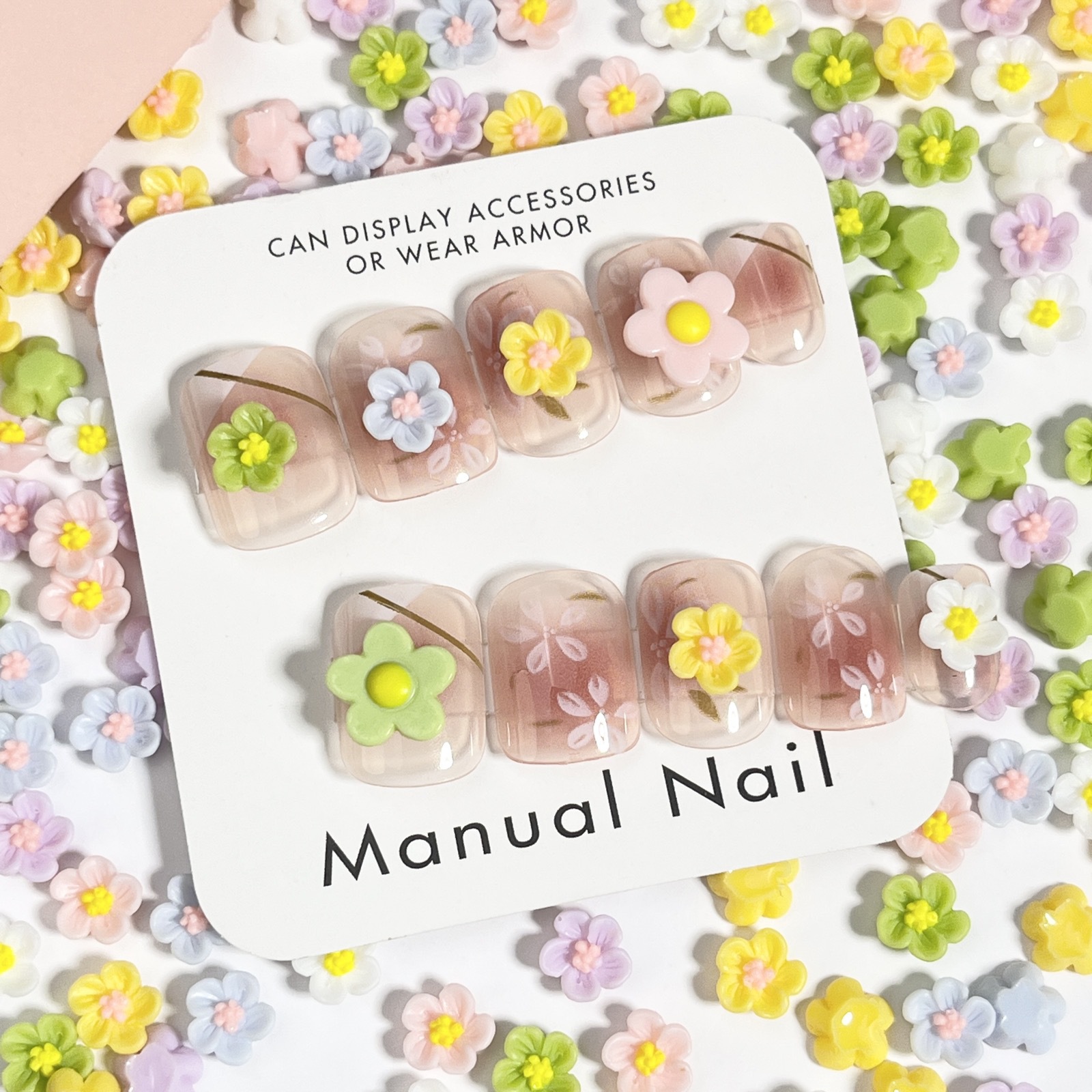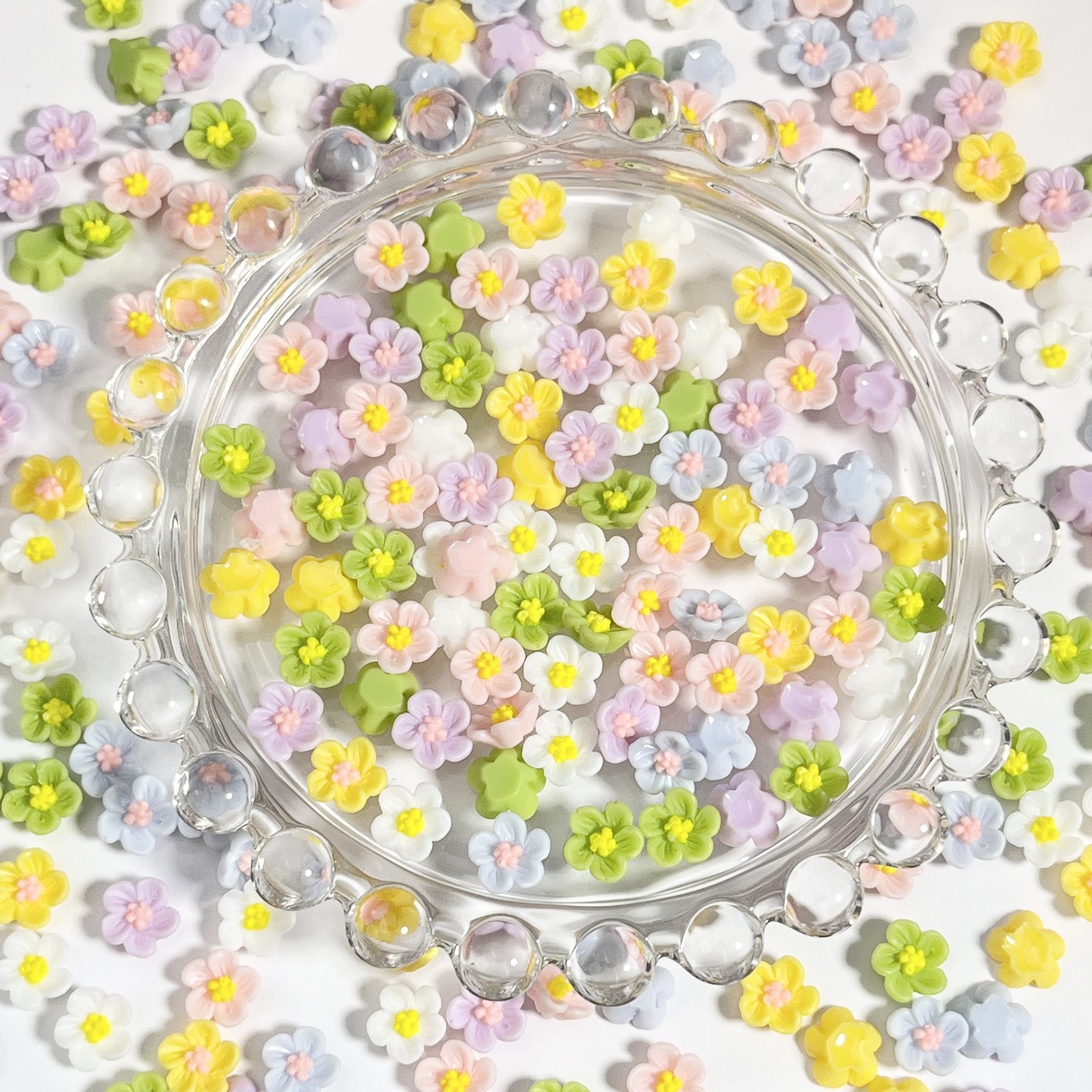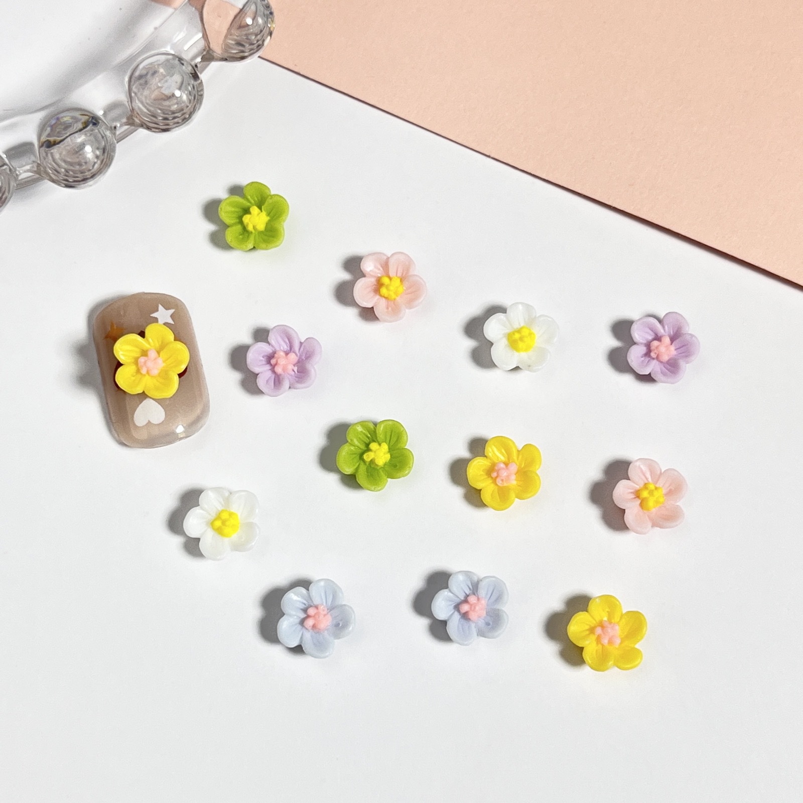 Fingertip spring color daisy nail jewelry mixed small fresh three dimensional five petal flower diy nail earring accessories