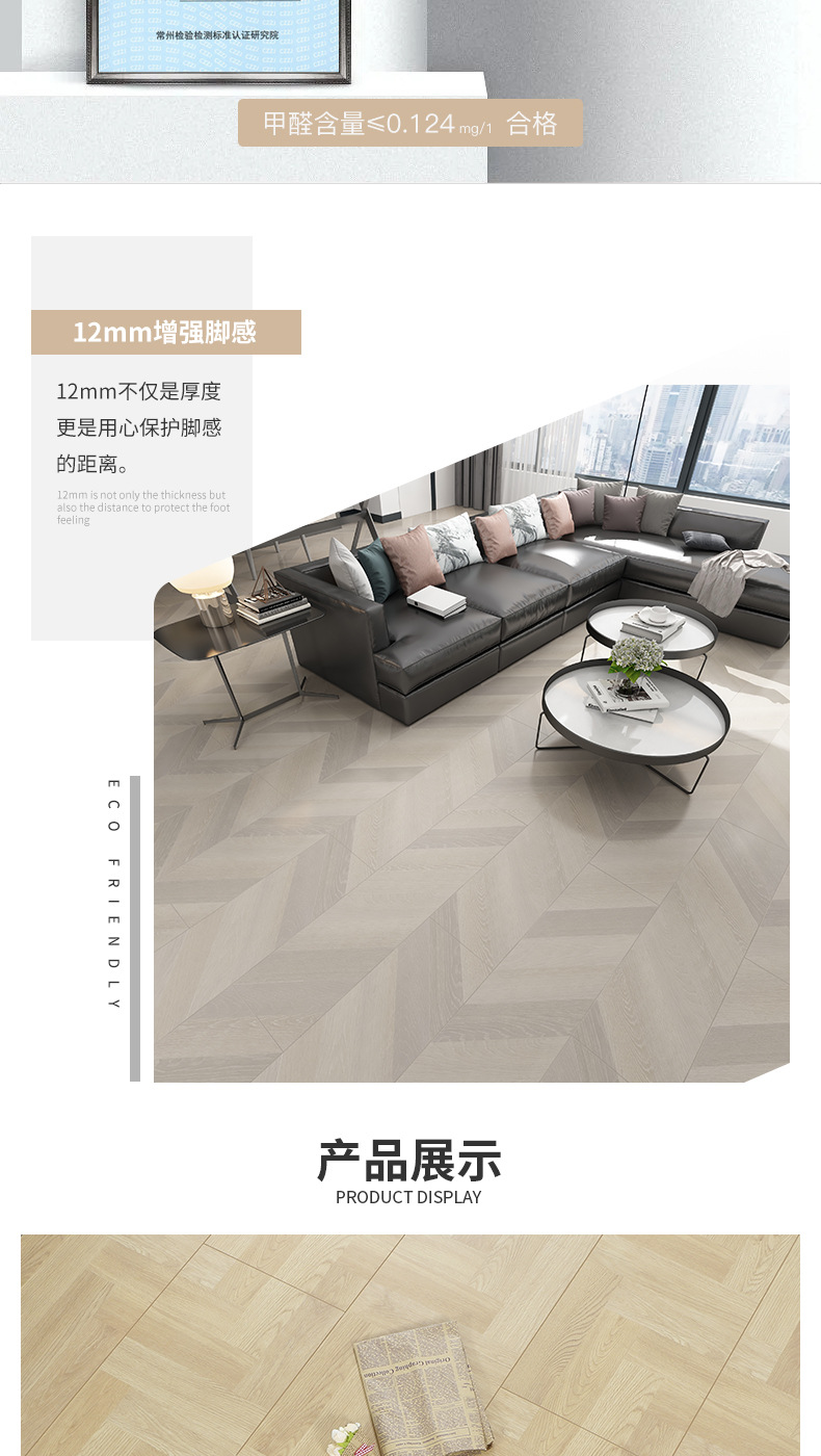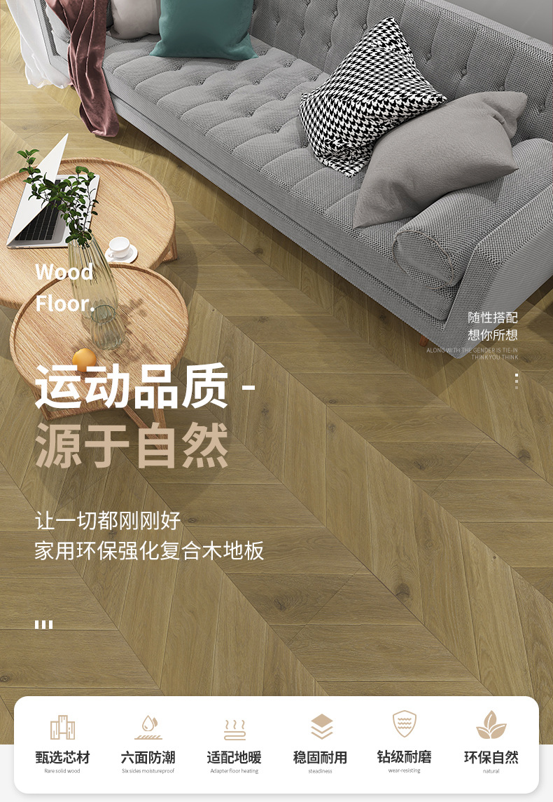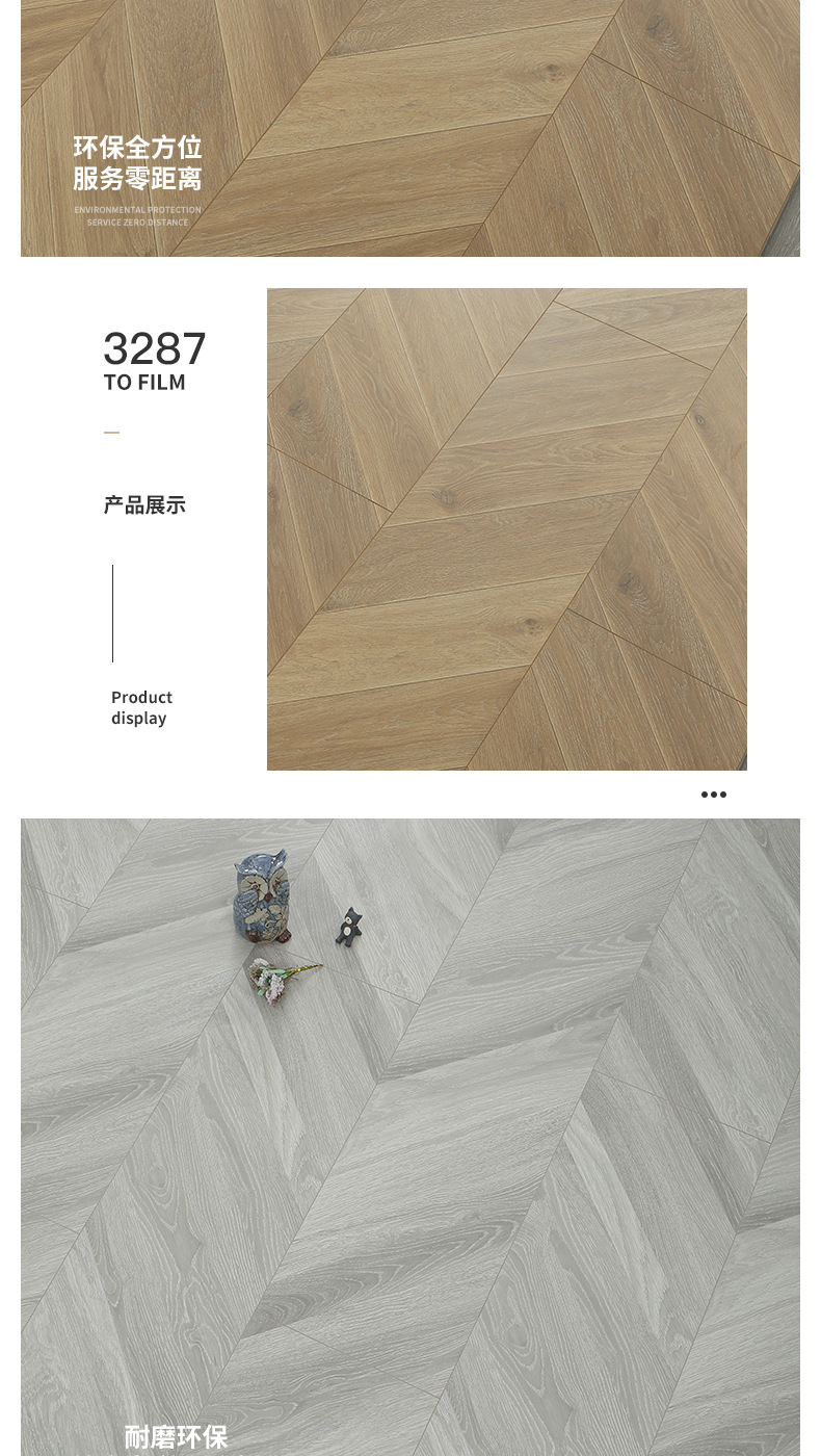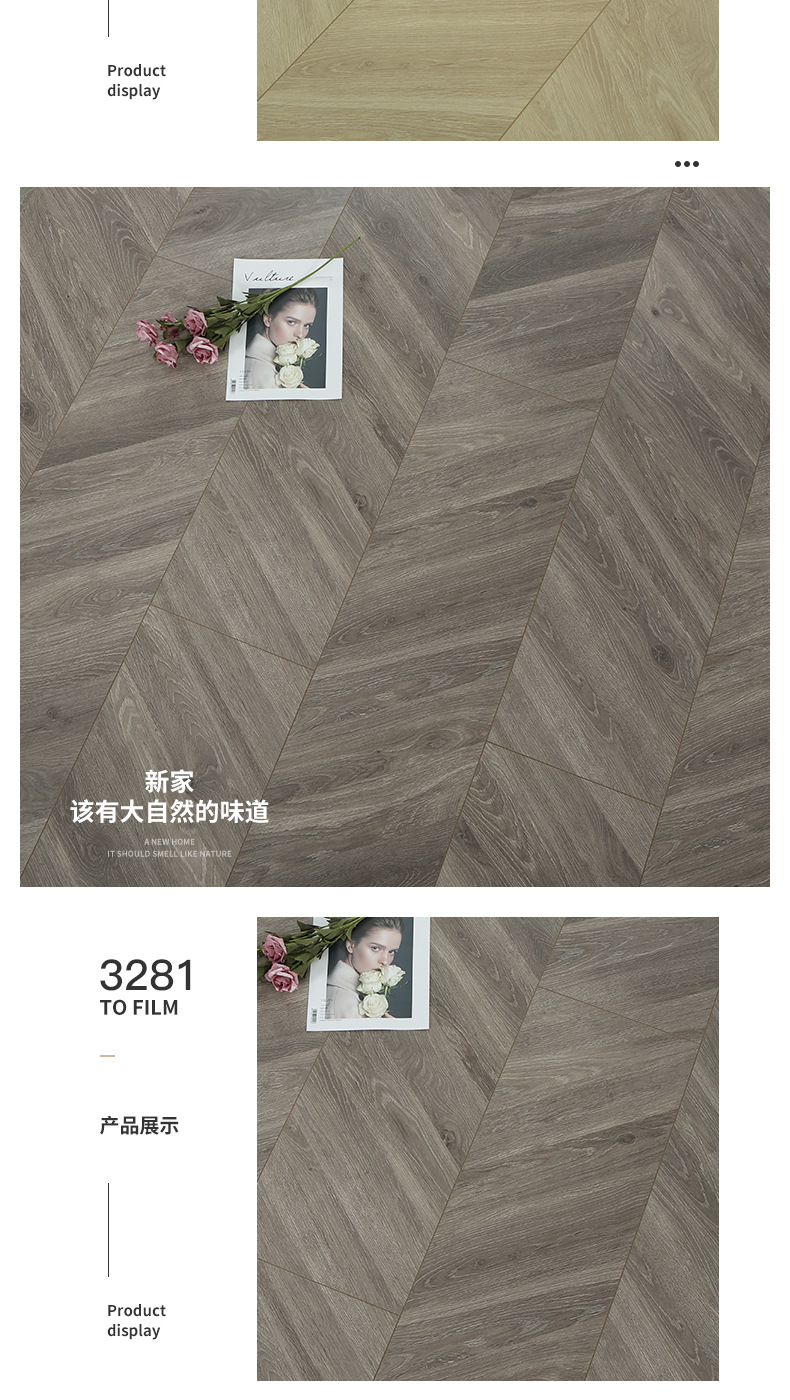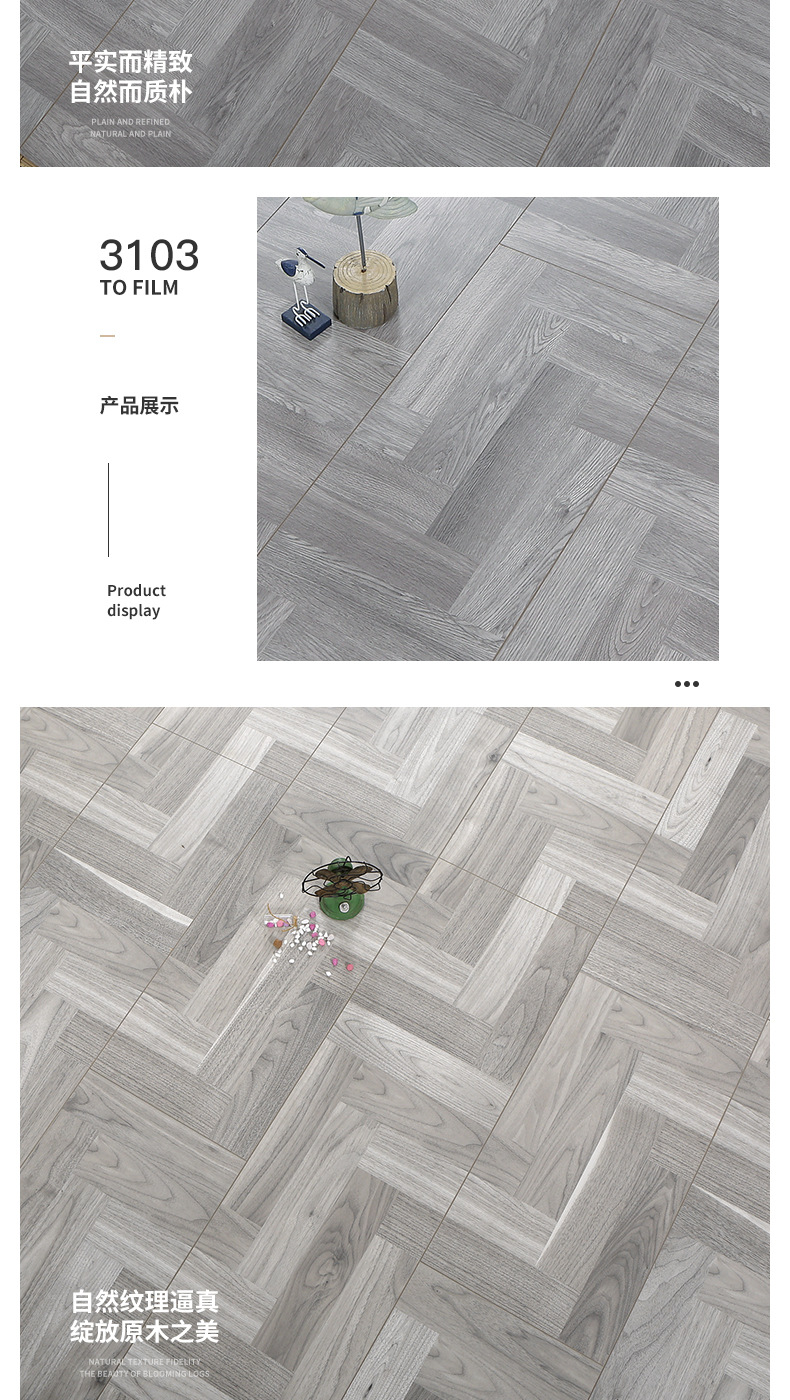 Fishbone Parquet Wooden Floor Household Cream Style Herringbone Reinforced Laminated Floor Wear resistant Floor Heating in Clothing Store Exhibition Hall