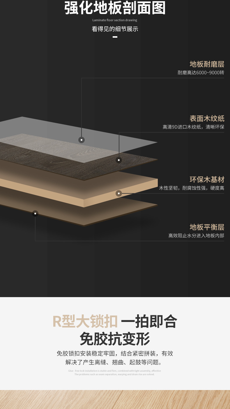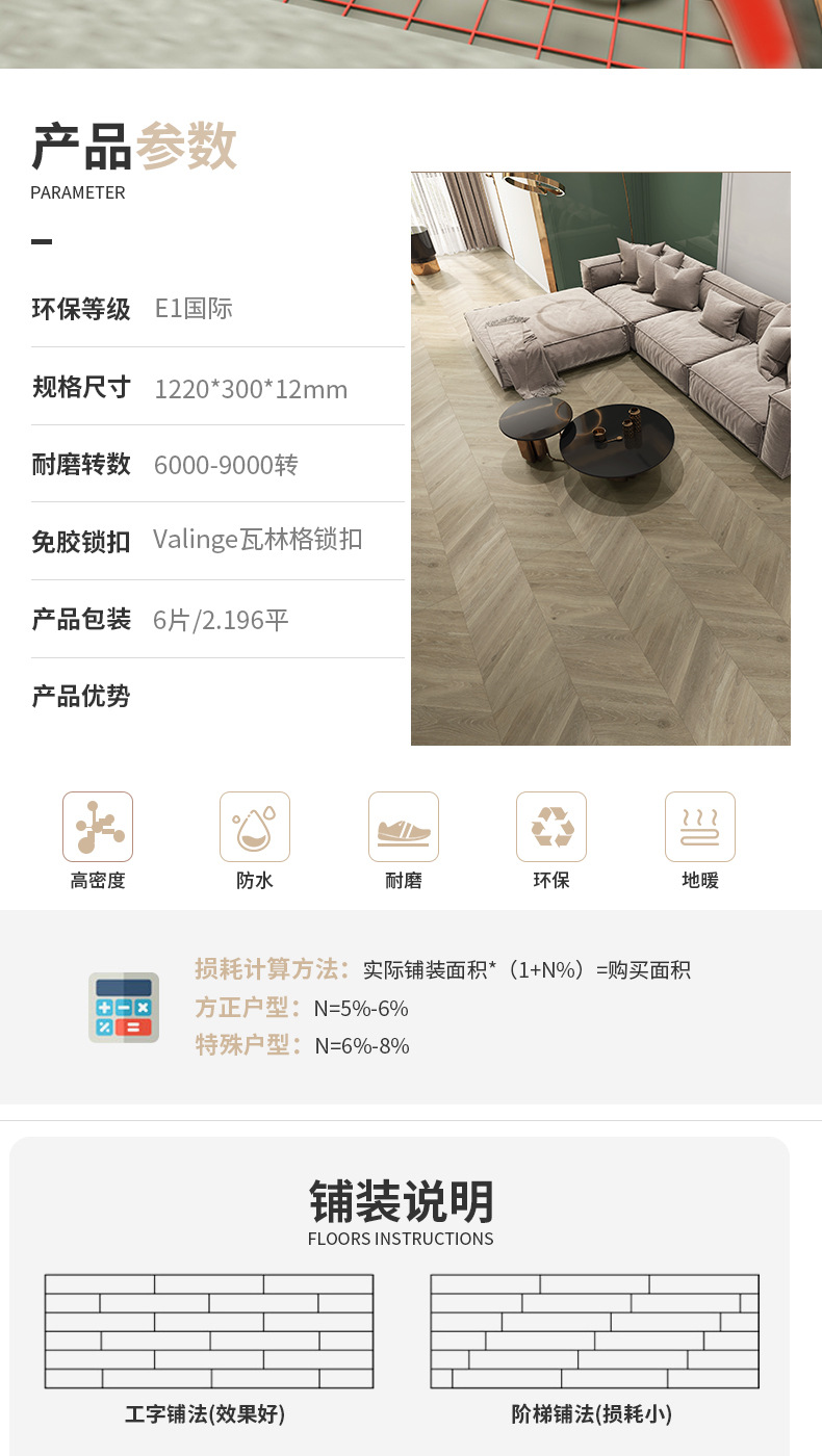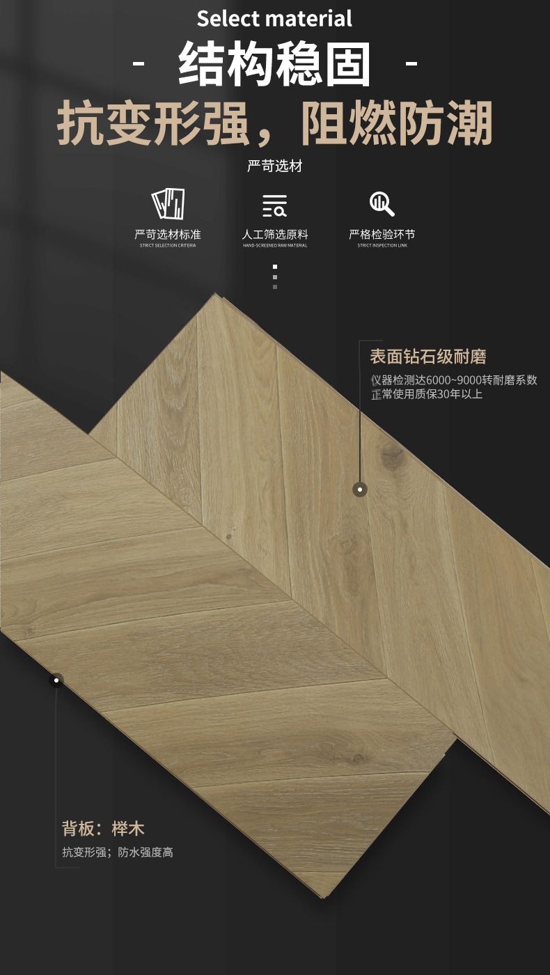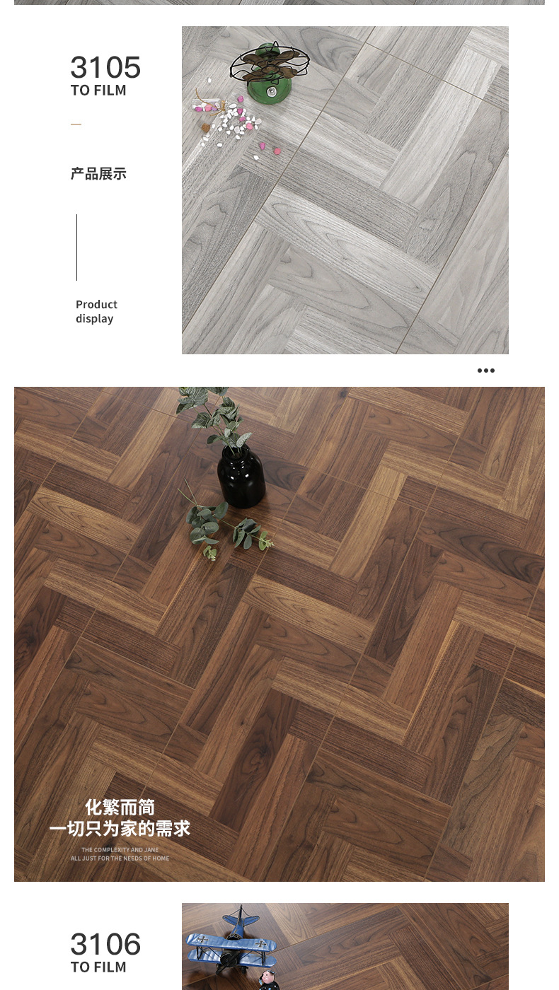 Fishbone Parquet Wooden Floor Household Cream Style Herringbone Reinforced Laminated Floor Wear resistant Floor Heating in Clothing Store Exhibition Hall