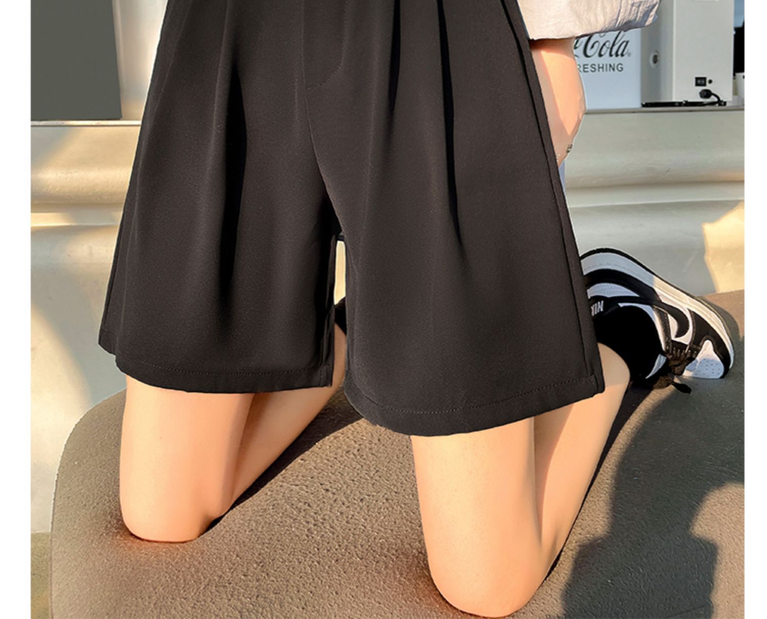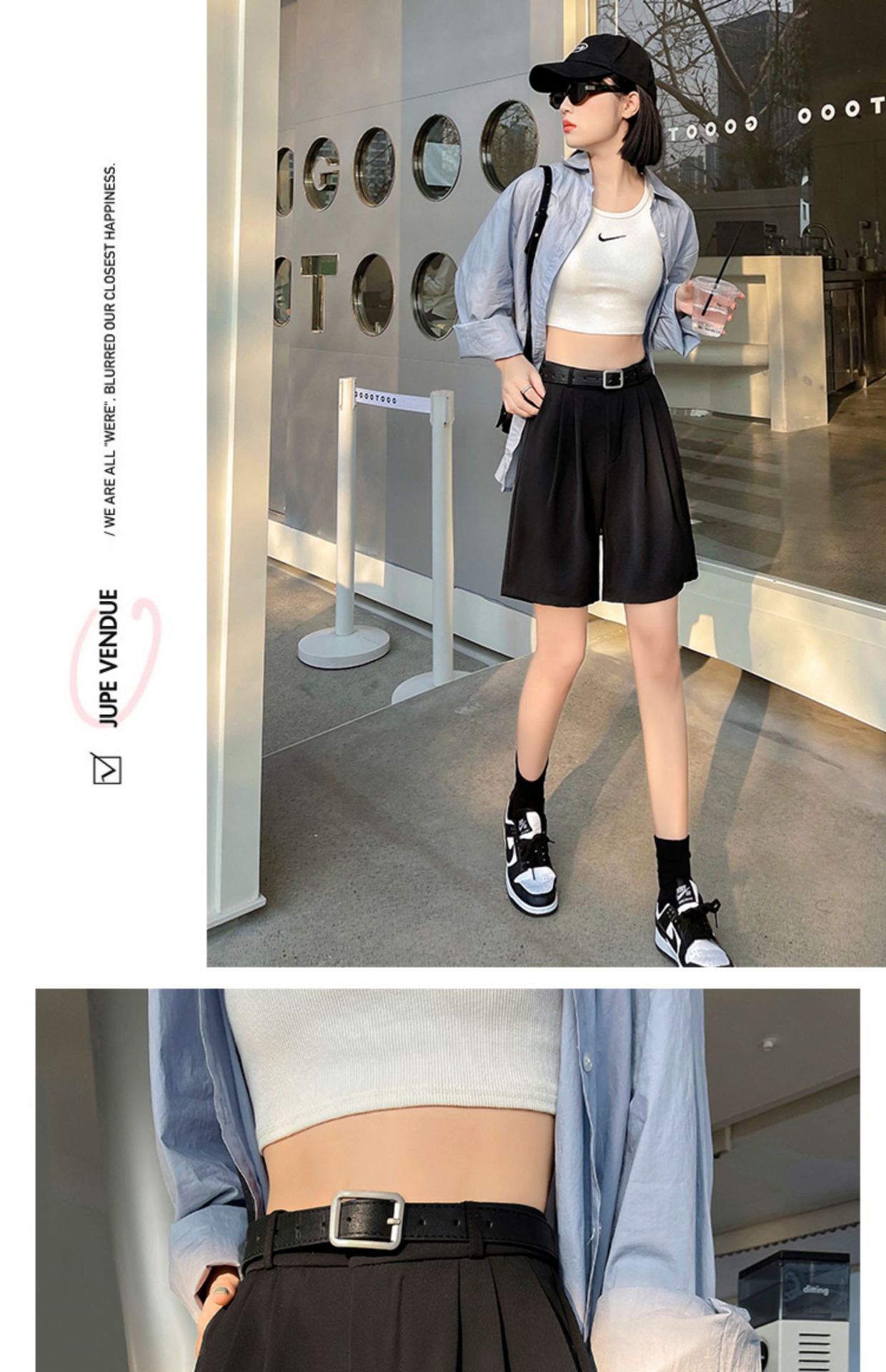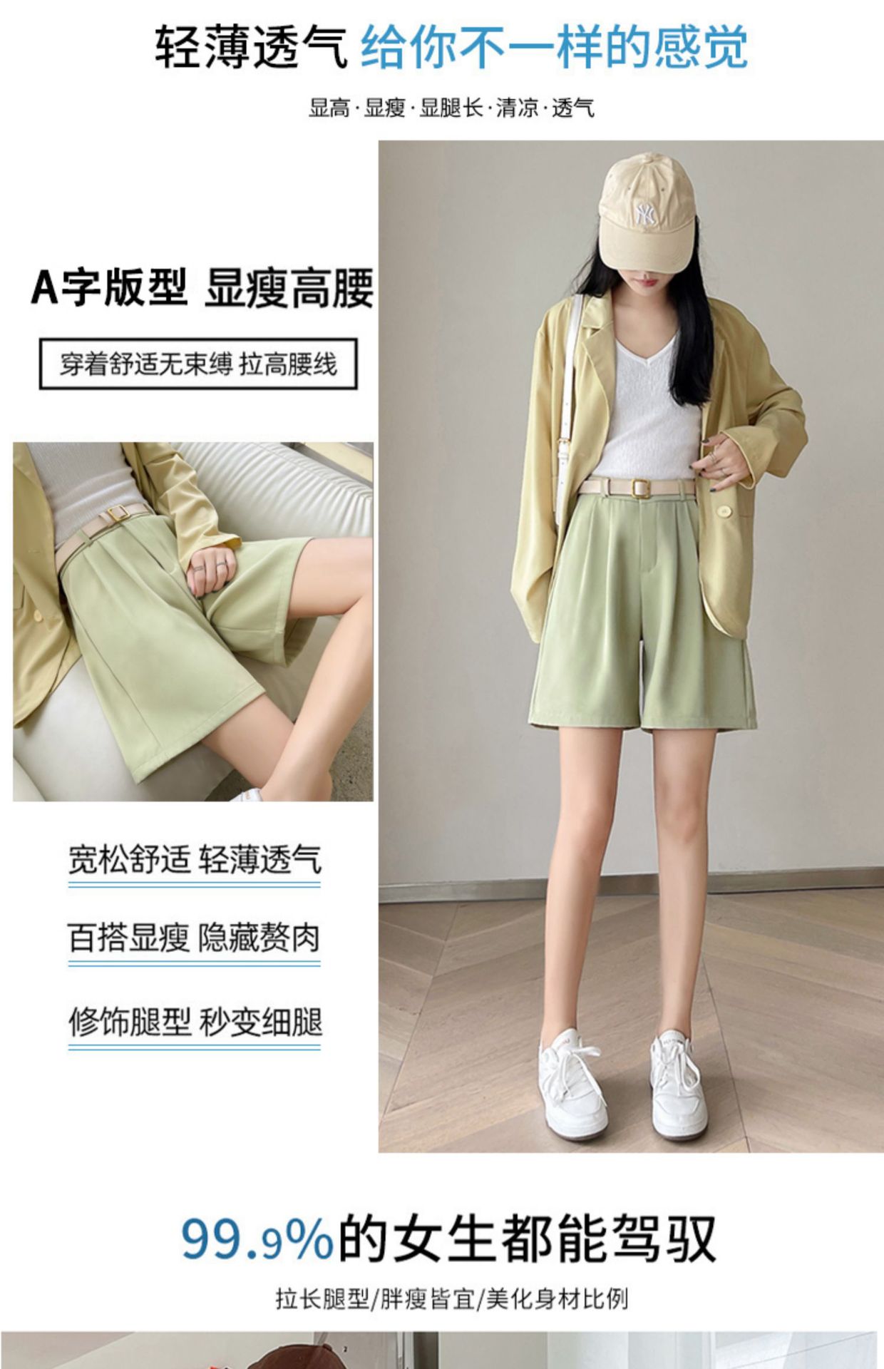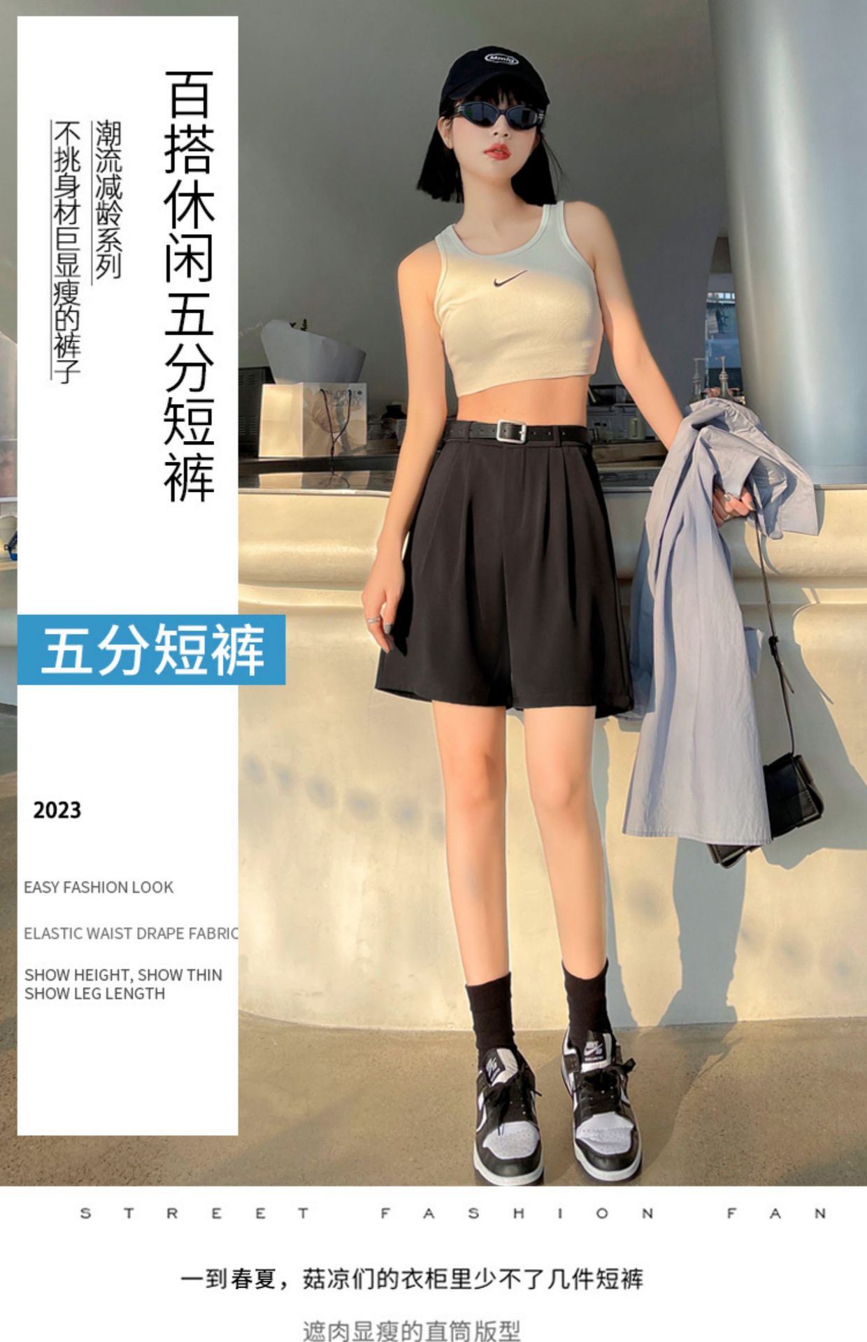 Five point Suit Shorts Women s Spring and Summer 2023 Thin High waist A line Straight leg Wide leg Loose Casual Hong Kong style Mid length Pants