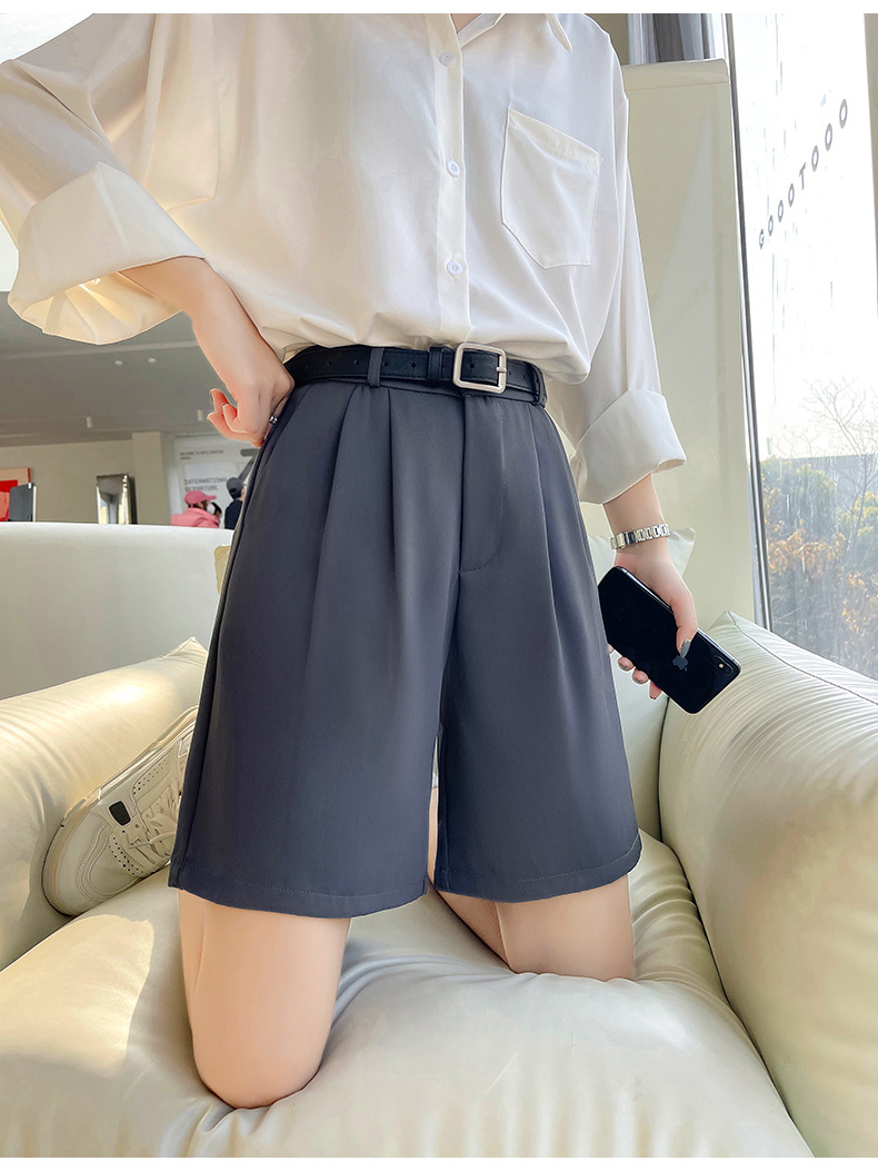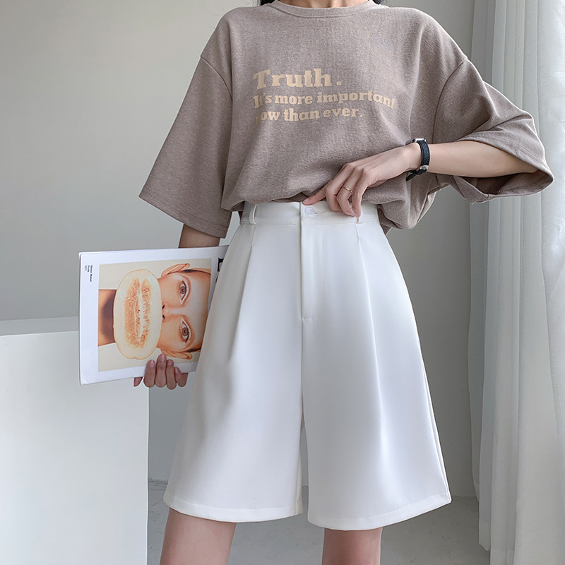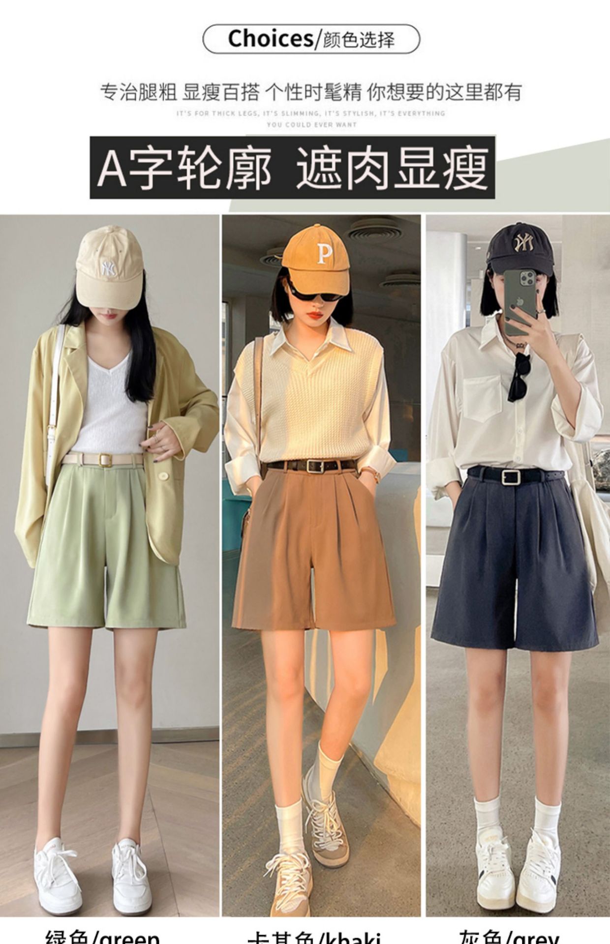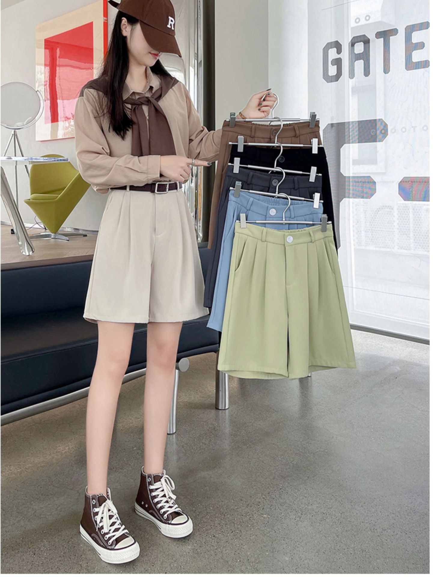 Five point Suit Shorts Women s Spring and Summer 2023 Thin High waist A line Straight leg Wide leg Loose Casual Hong Kong style Mid length Pants