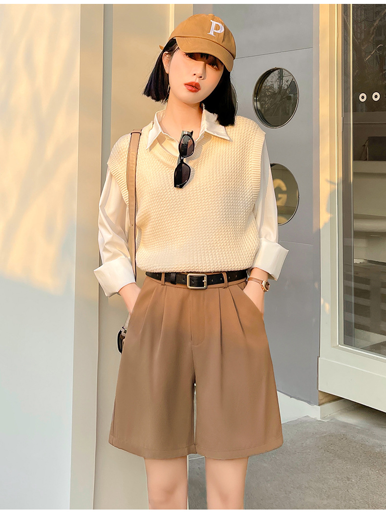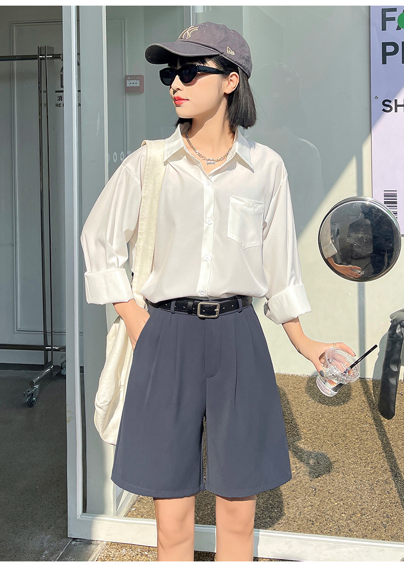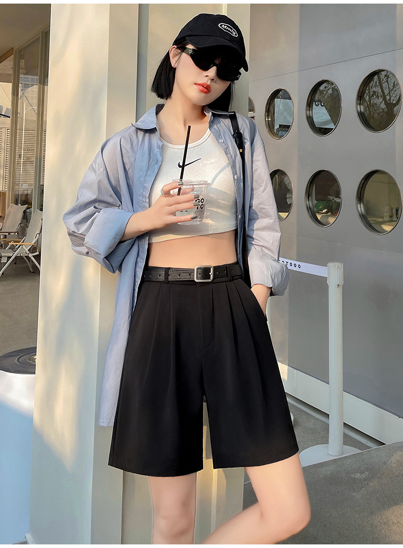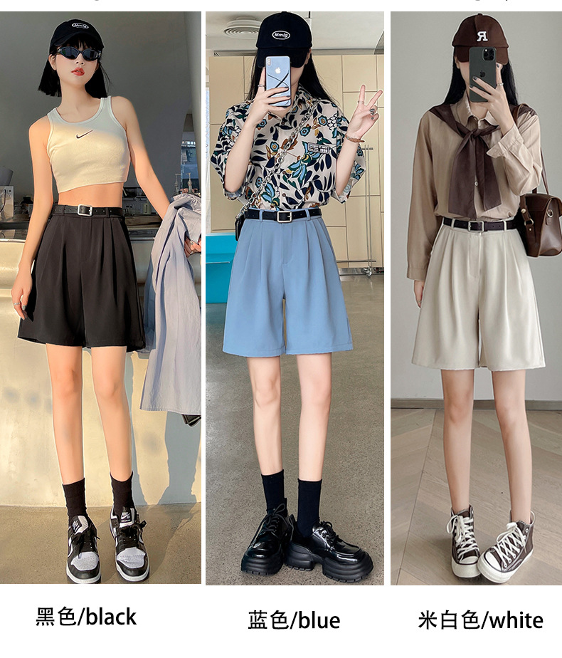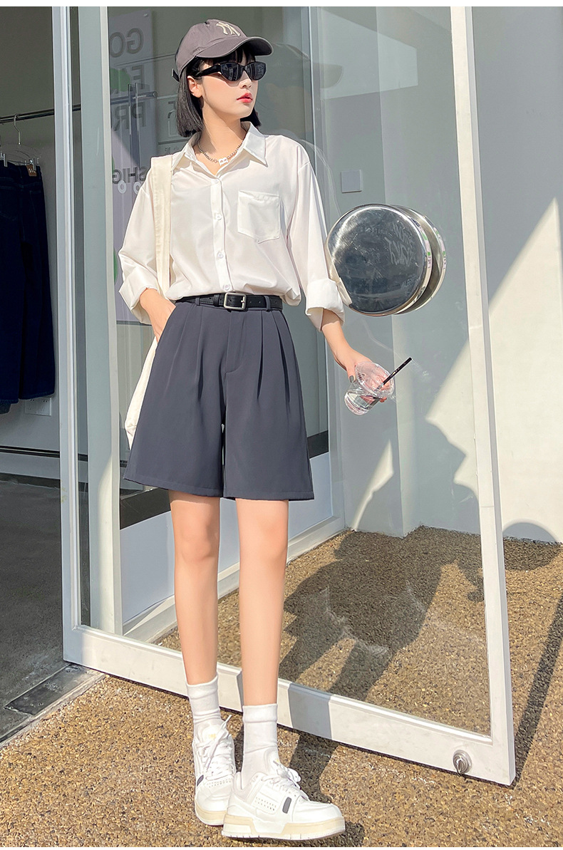 Five point Suit Shorts Women s Spring and Summer 2023 Thin High waist A line Straight leg Wide leg Loose Casual Hong Kong style Mid length Pants