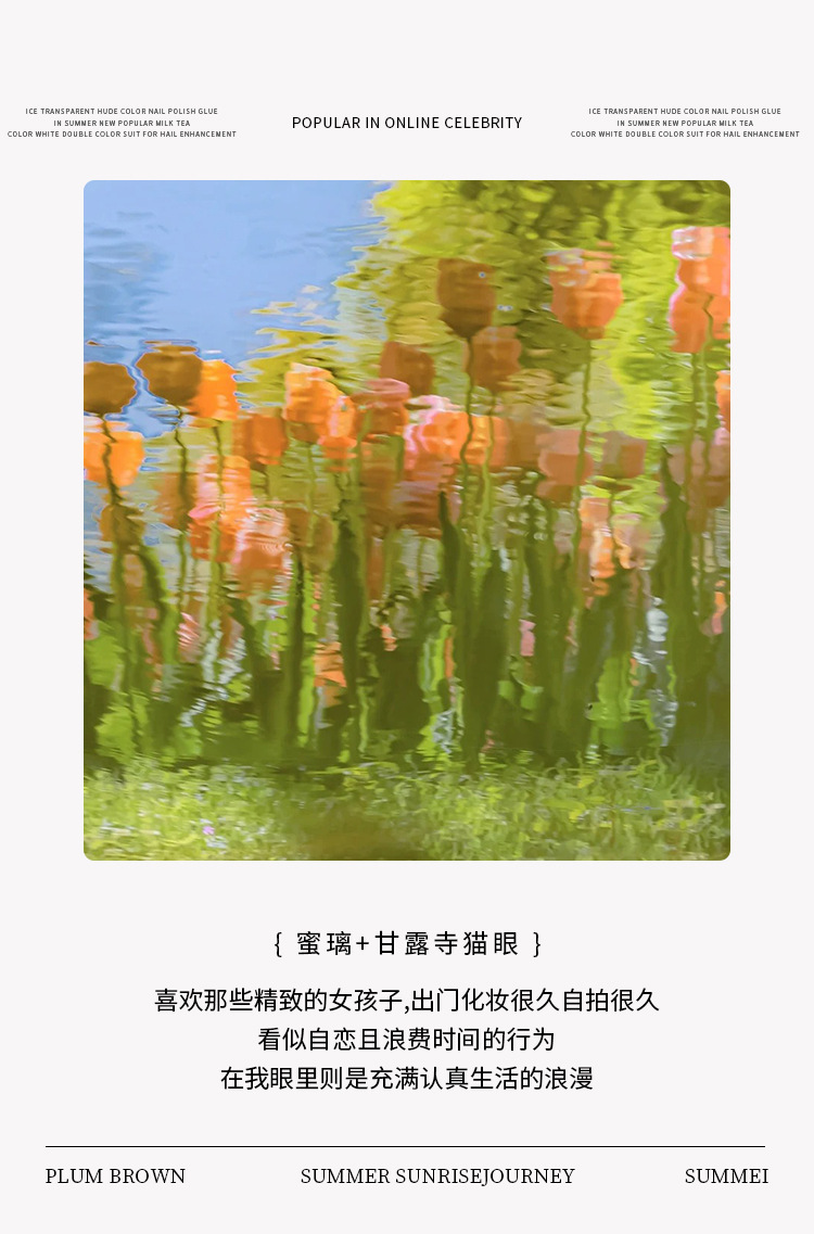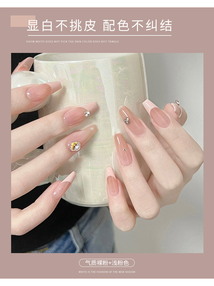 - Milk drunk white + semi-transparent nude tea + champagne gold drawing glue