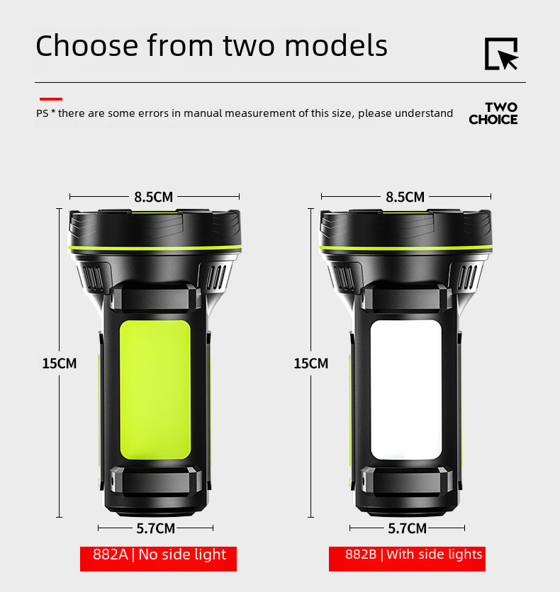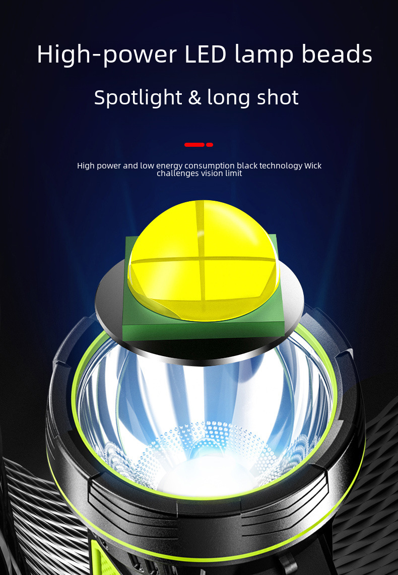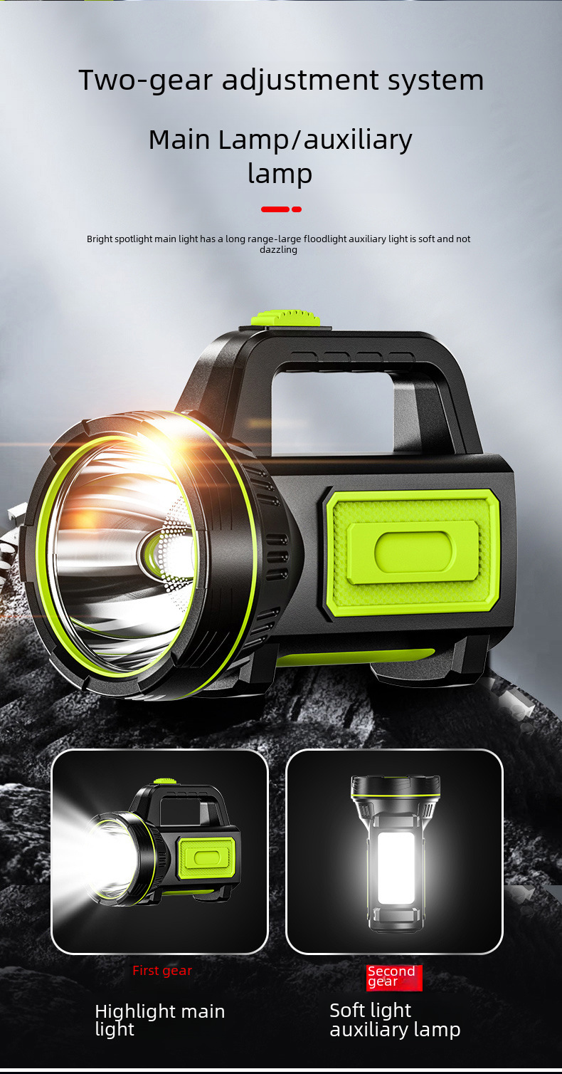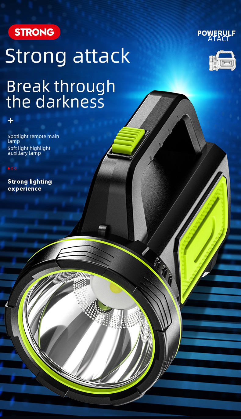 Flashlight outdoor strong light LED high power patrol emergency portable Searchlight USB charging with side lamp flashlight
