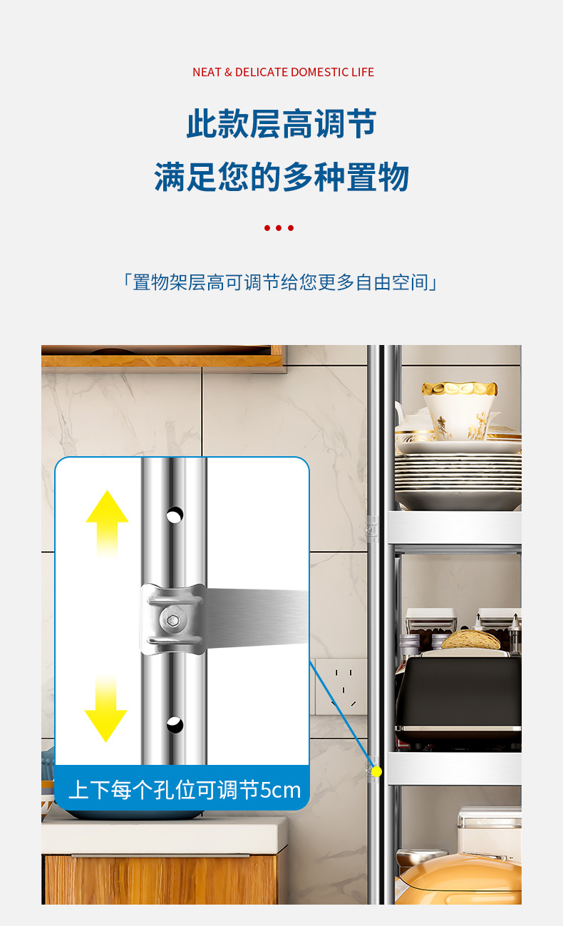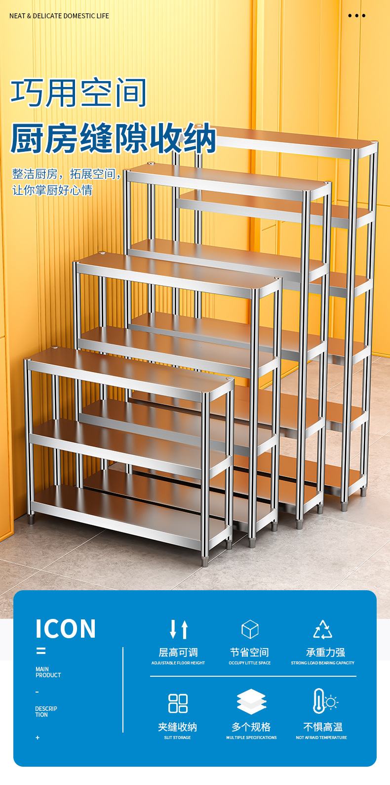 Floor-Standing Multi-Layer Refrigerator Gap Storage Small Shelf Stainless Steel Kitchen Household Balcony Storage Rack Gap Storage Rack