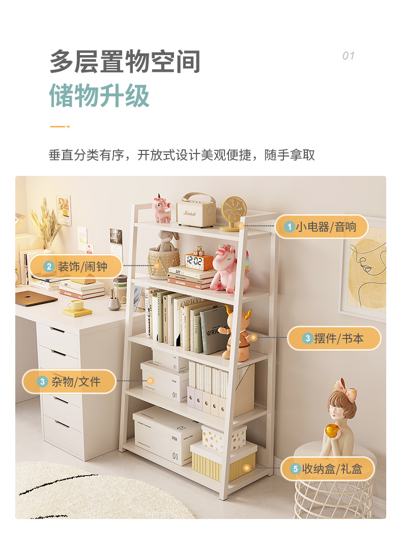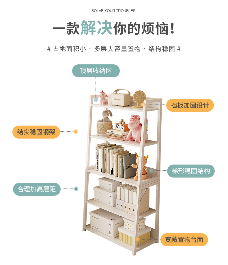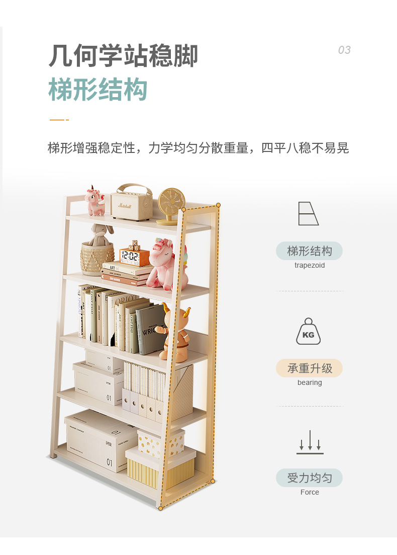Floor-standing multi-layer bedroom trapezoidal snack shelf bookshelf home storage rack living room display rack