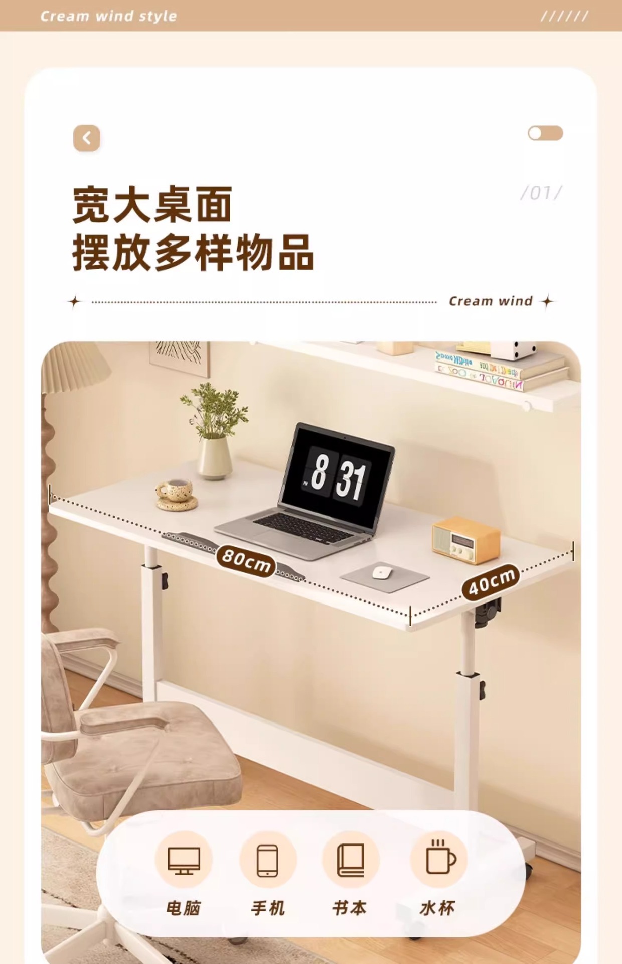 Folding Desk Movable Table Small Apartment Computer Desk Home Student Writing Desk Simple Bedside Table Lifting Table
