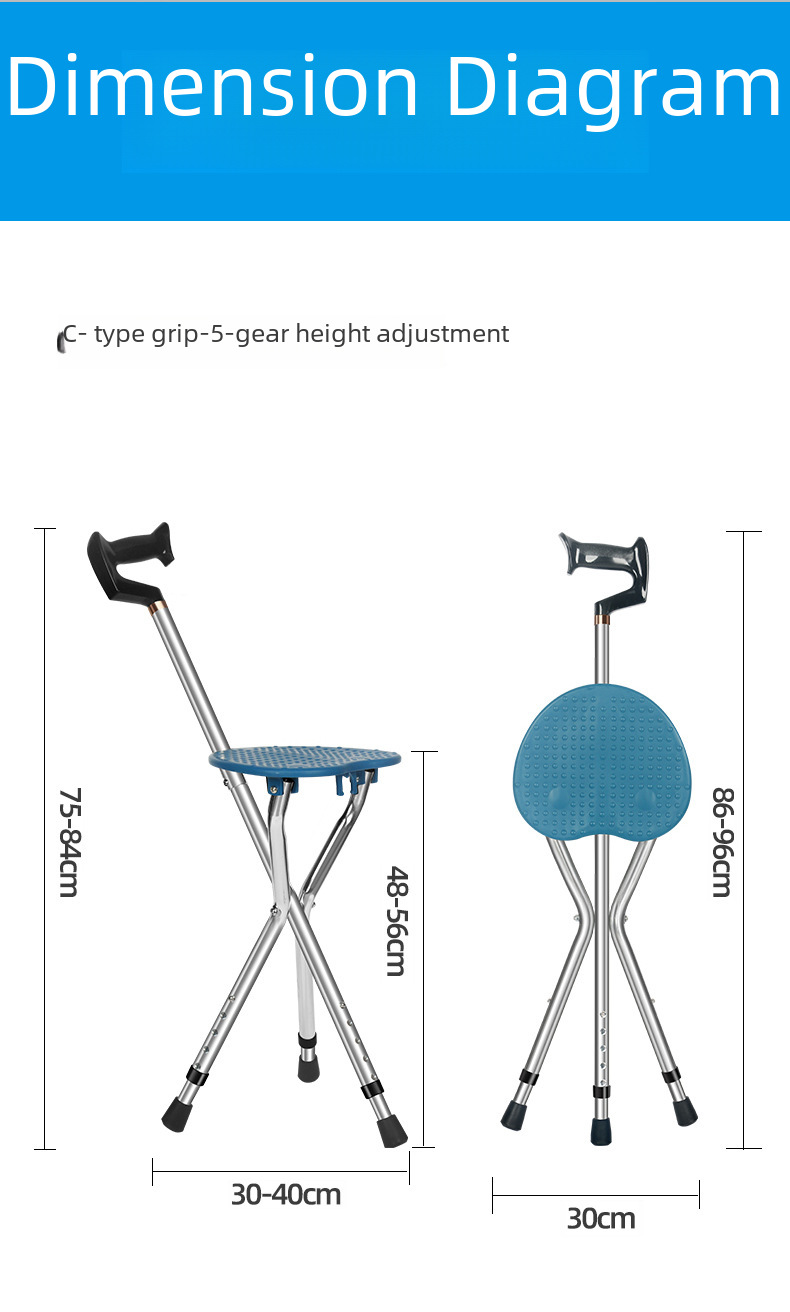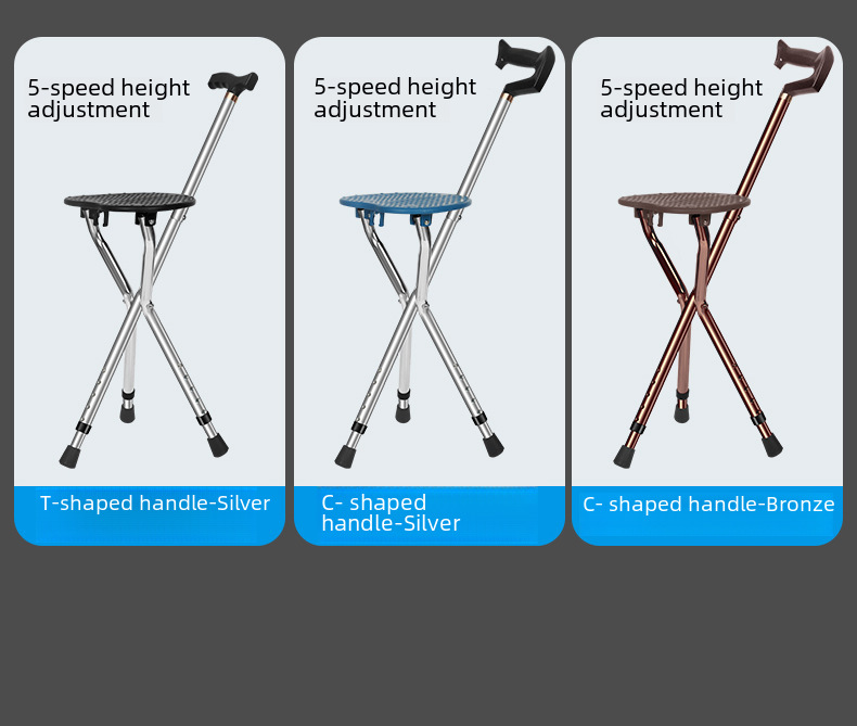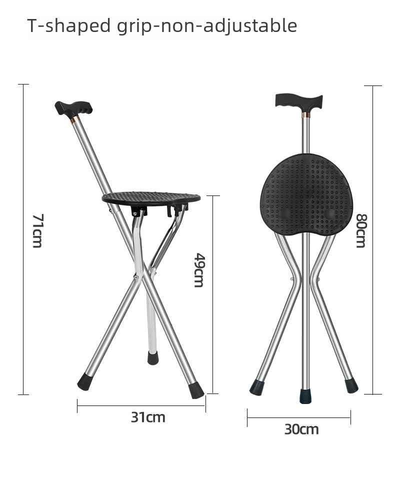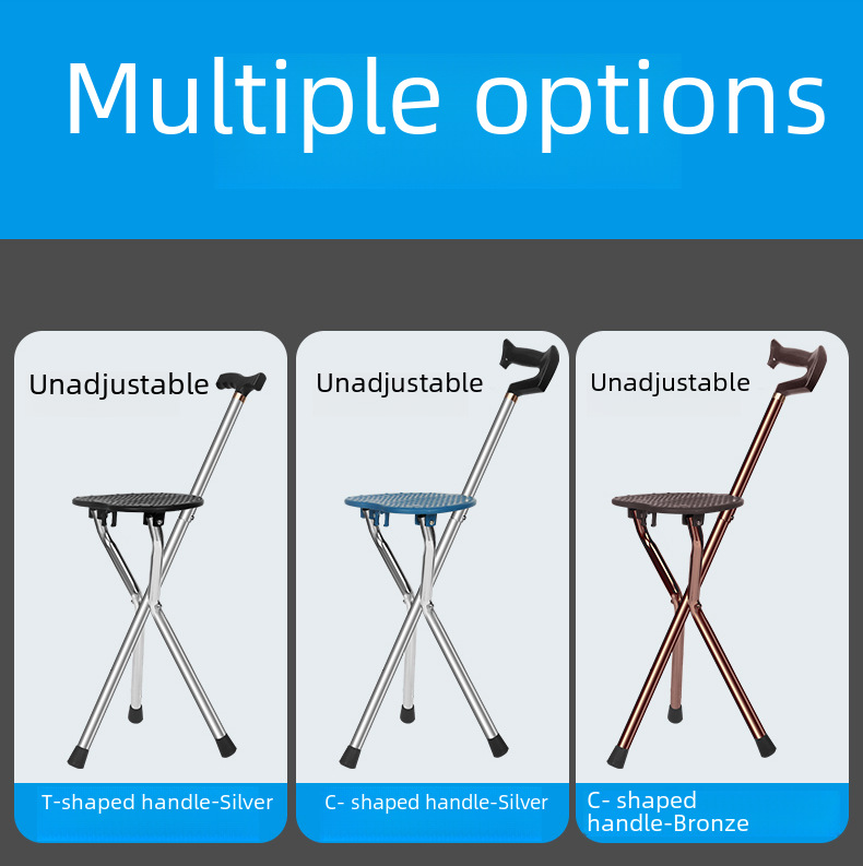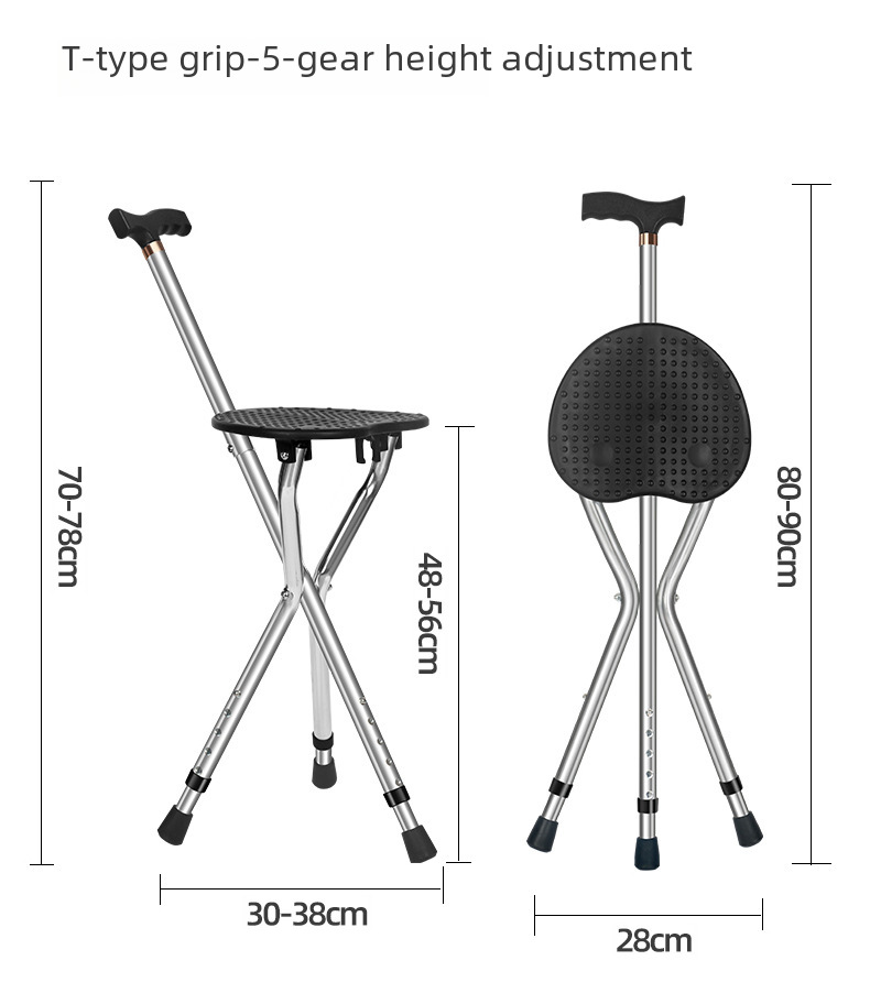 Folding Three legged Crutch Stool for the Elderly Aluminum Alloy Triangle Cane Stool Middle aged and Elderly Cane Stool Adjustable