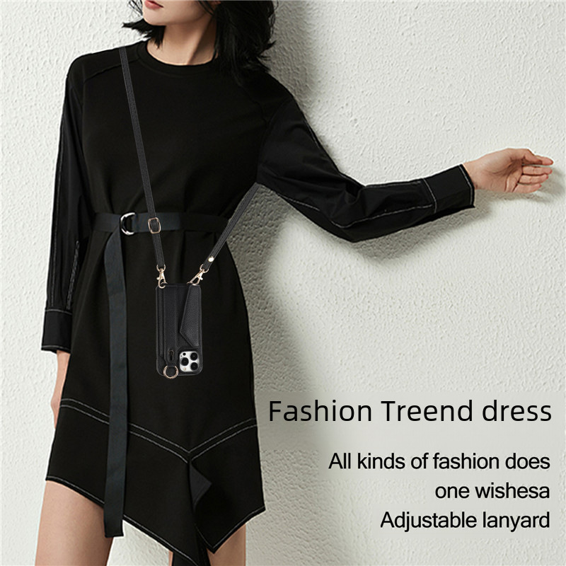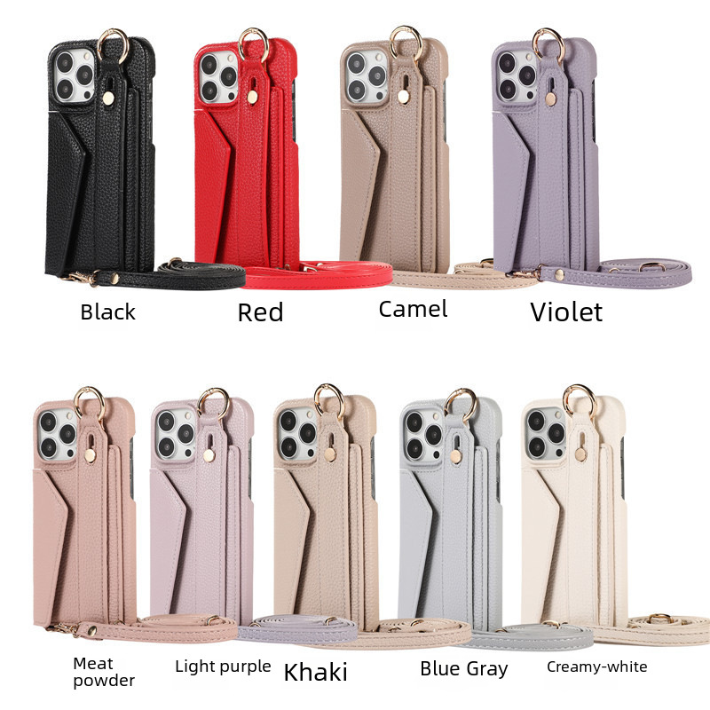 For iPhone 14 Phone Case Apple 13 Wrist Litchi Coin Purse Apple 14Pro Max Phone Case