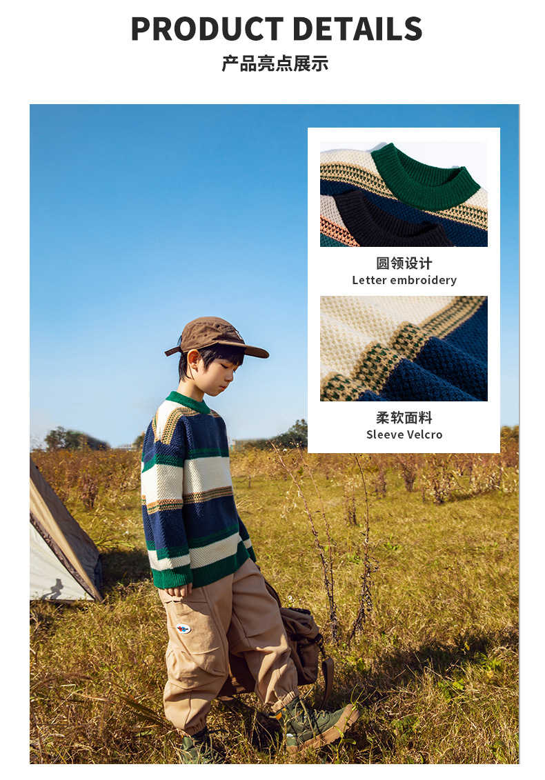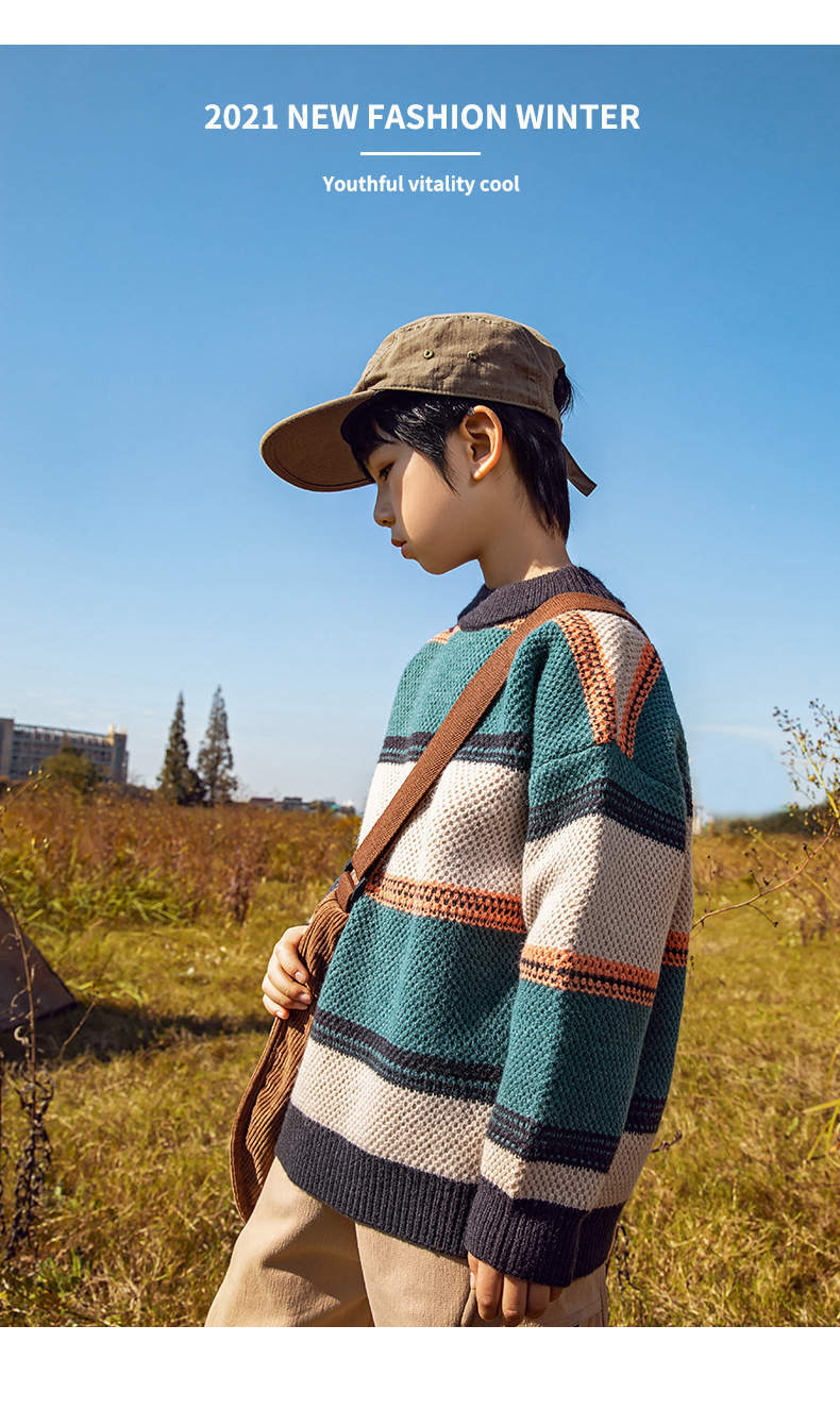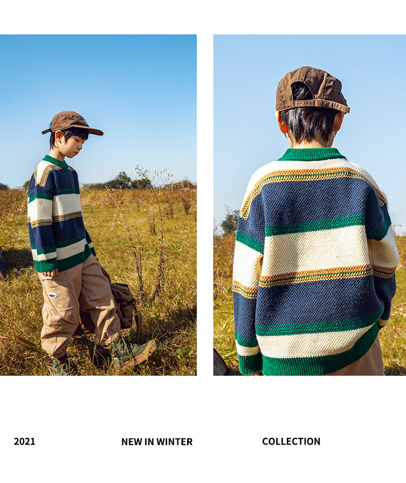 Foreign trade boys sweater 2023 new autumn and winter boys sweater fleece lined thickened children s winter medium and large children s western style