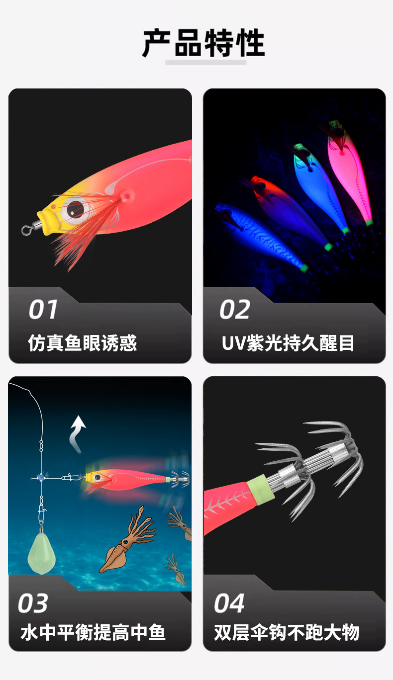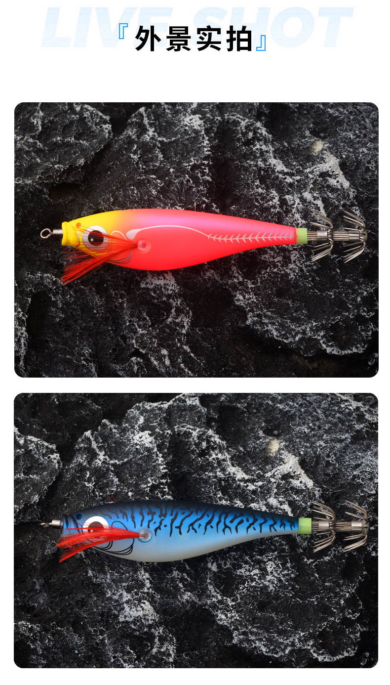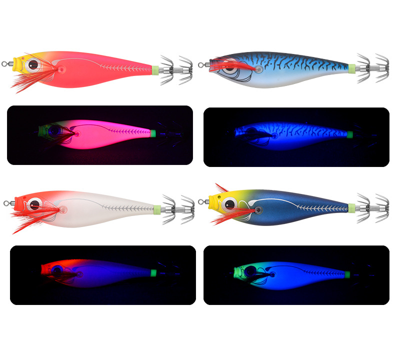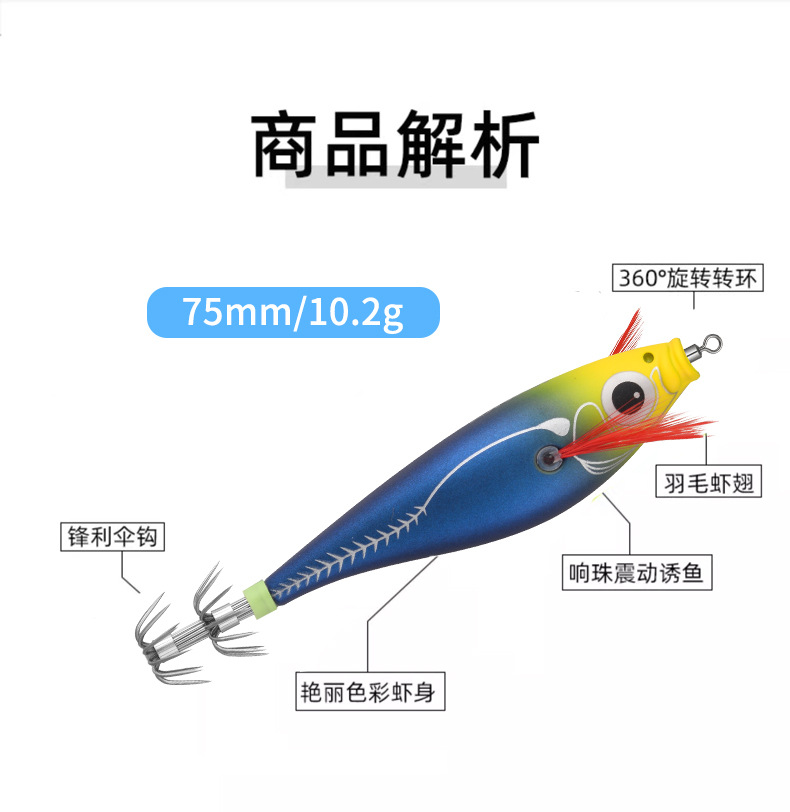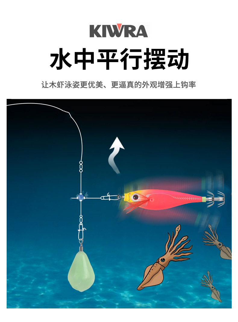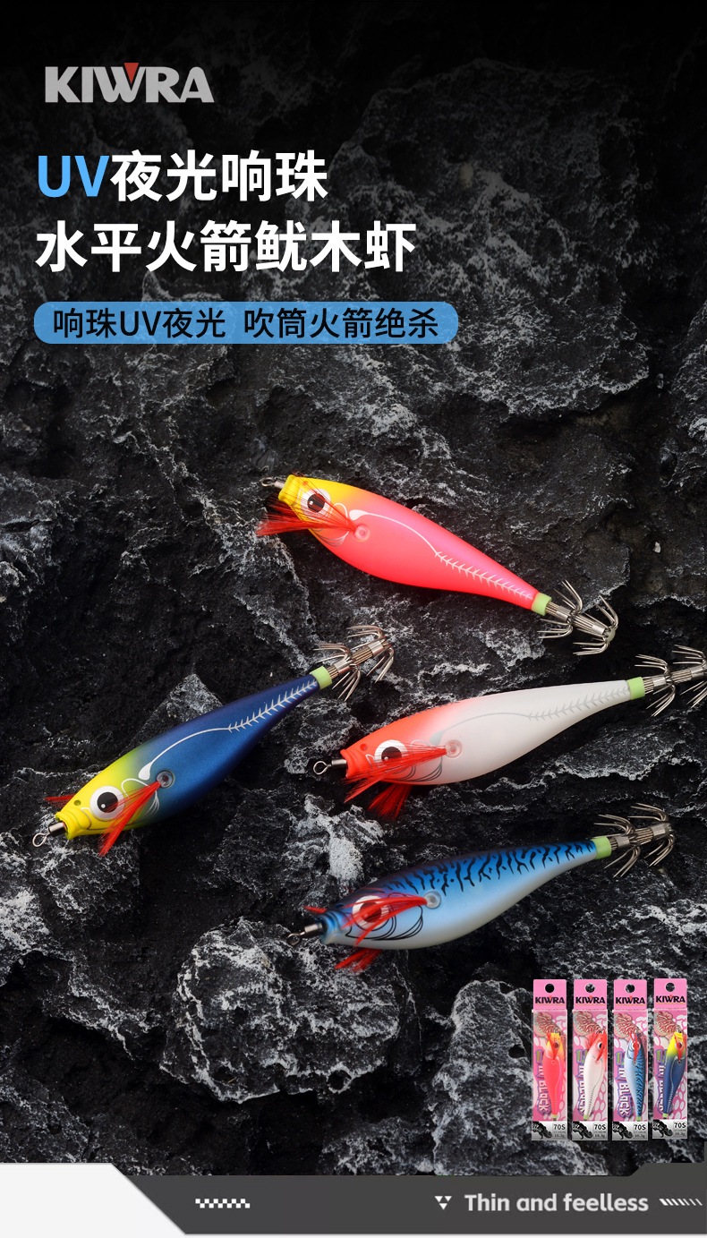 Foreign trade new KIWRA luminous level shrimp 70S 10.3g blow cylinder artifact sea fishing squid fake bait wooden shrimp