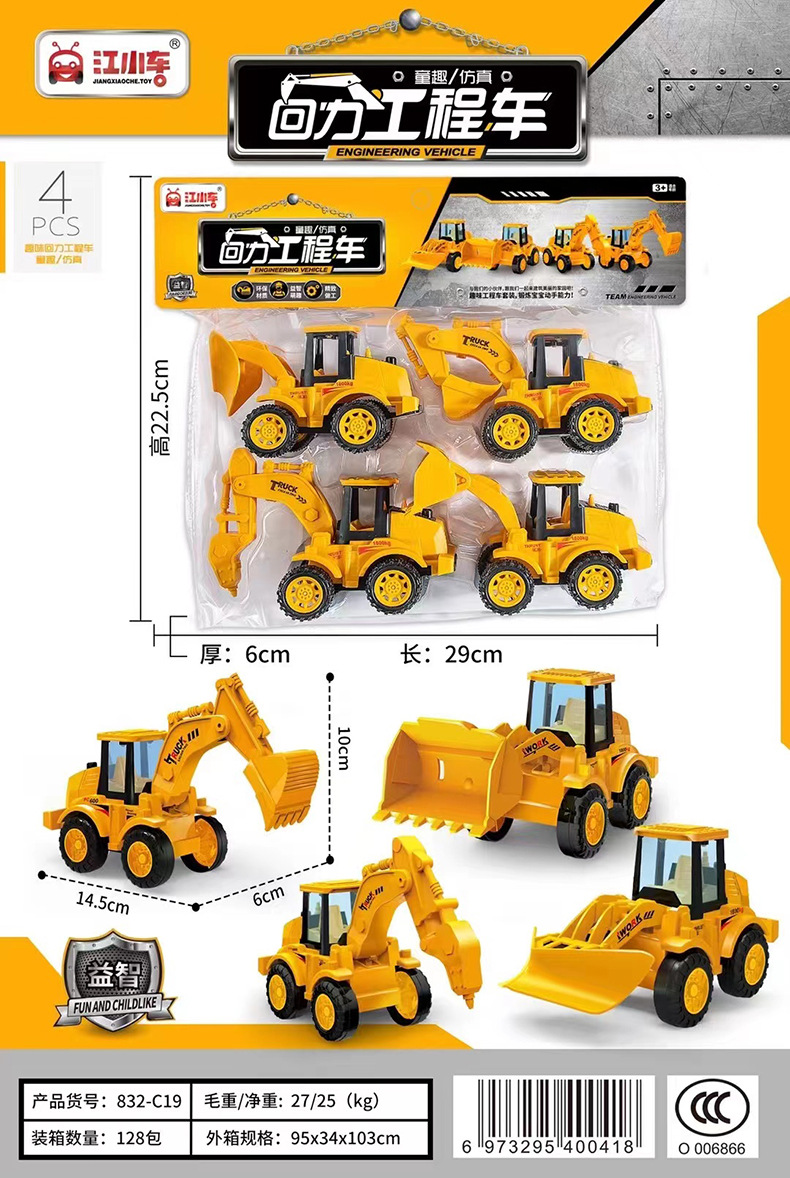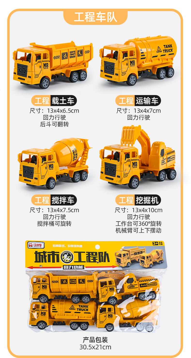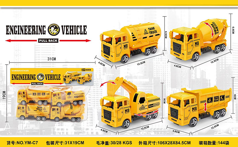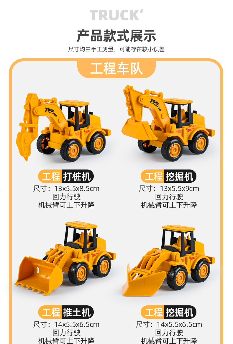 Foreign trade pull back engineering car toy car excavator sanitation car inertia model stall supply children s toys wholesale