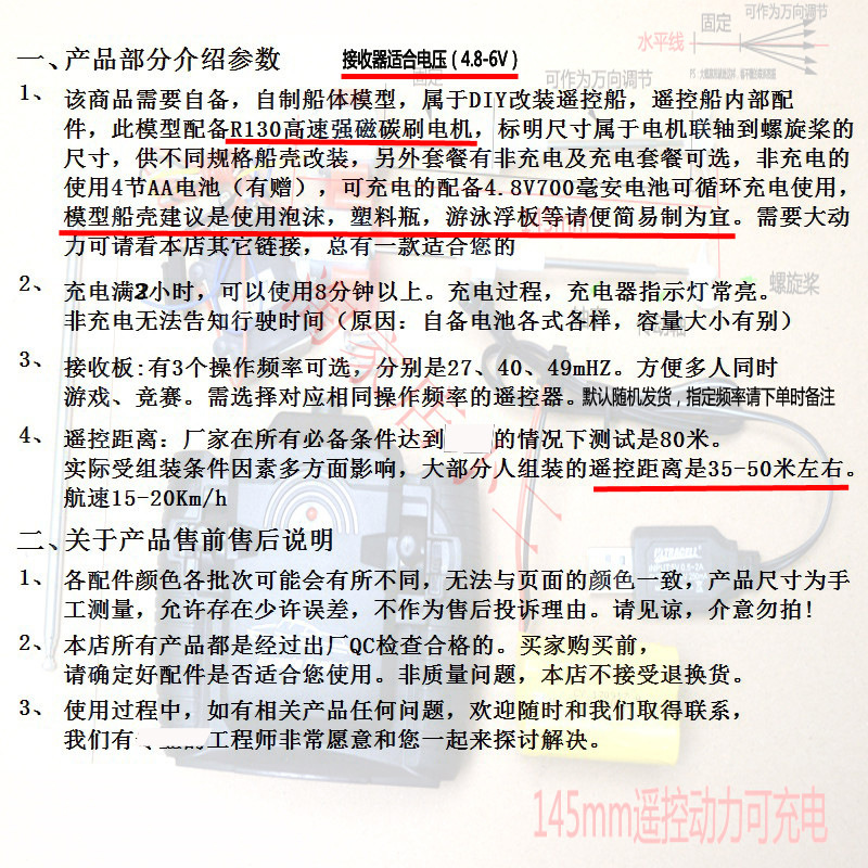 - 145mm remote control power 3000 mA (medium power with large capacity rechargeable electricity