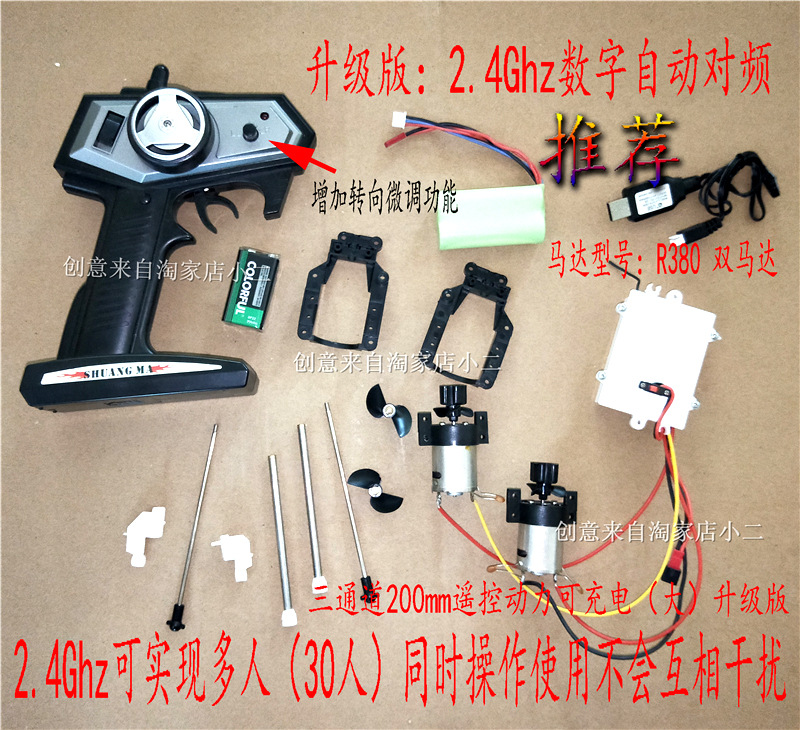 Four channel dual motor remote control boat speedboat accessories remote control receiving with power accessories self made DIY hull