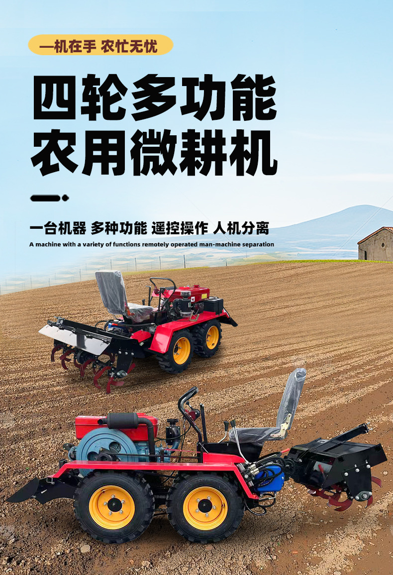 Four wheel drive crawler rotary tiller multifunctional micro tiller four wheel small tractor water and drought dual use diesel micro tillage zb