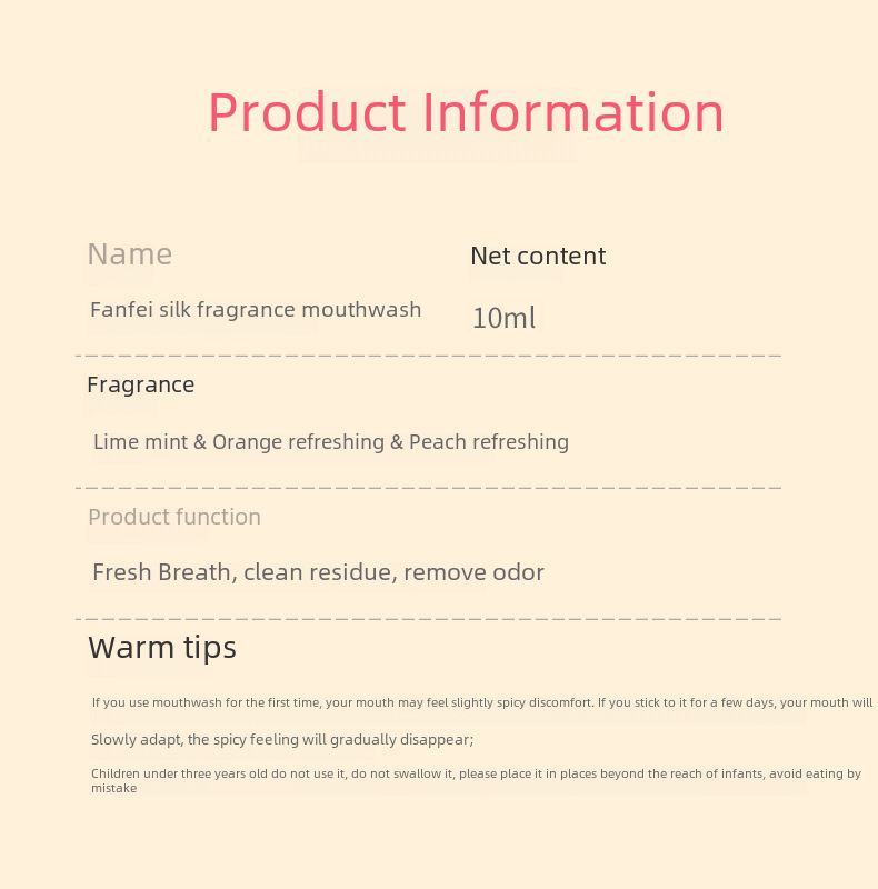 - Fanfei silk fragrance mouthwash (peach refreshing) single pack 10ml