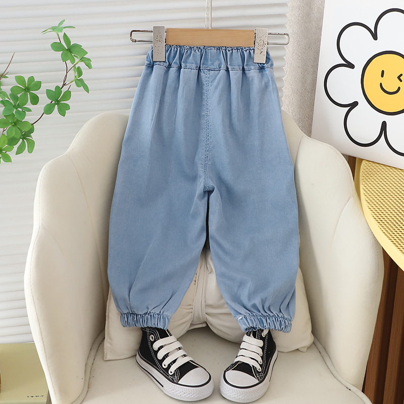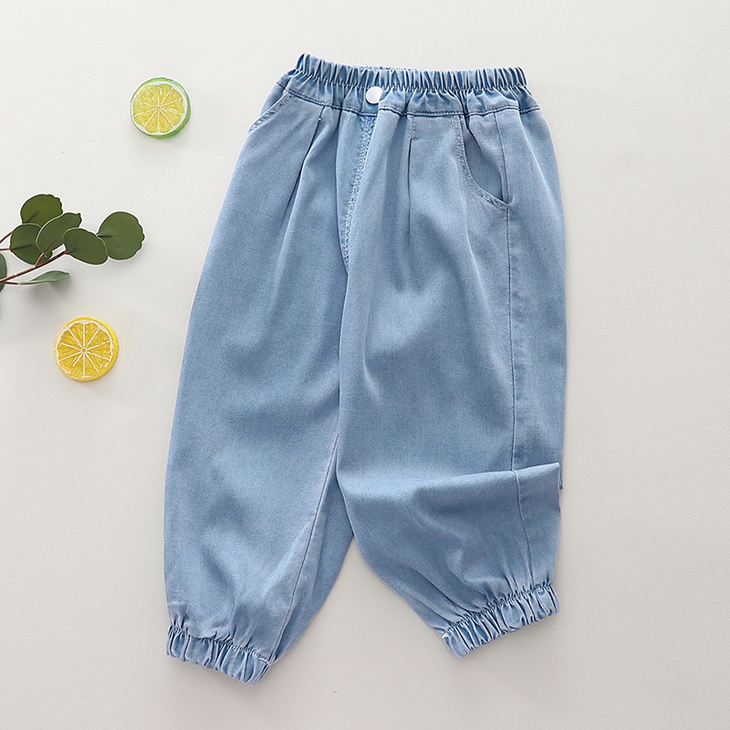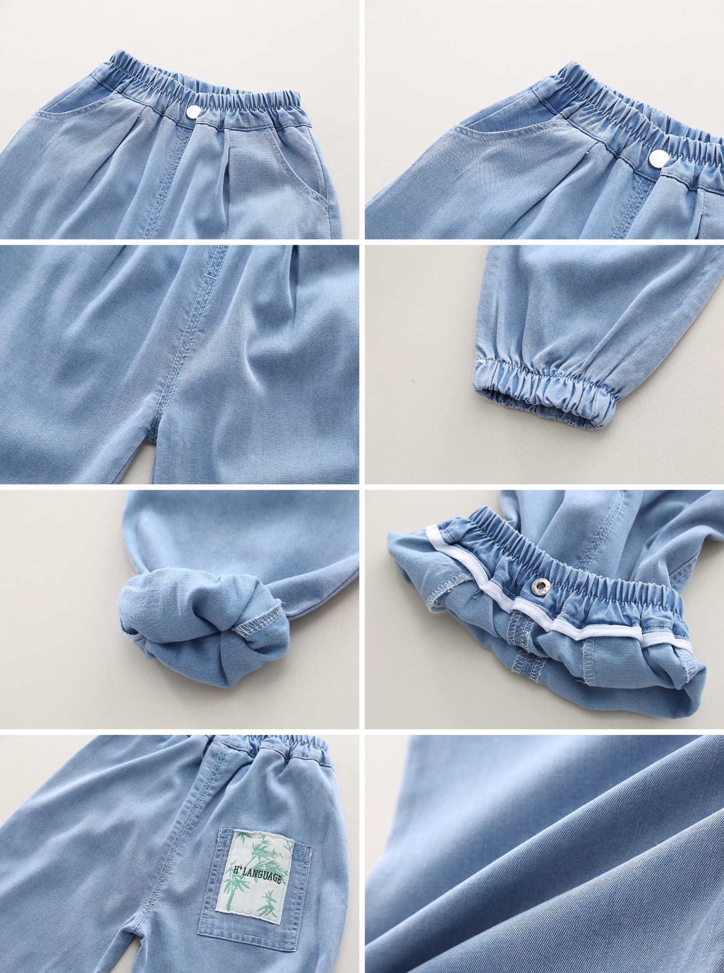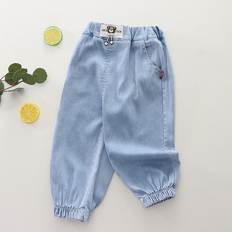 Free Shipping Yikids Spring and Summer Tencel Thin Soft Denim Pants Summer Ice Breathable Soft Long Pants