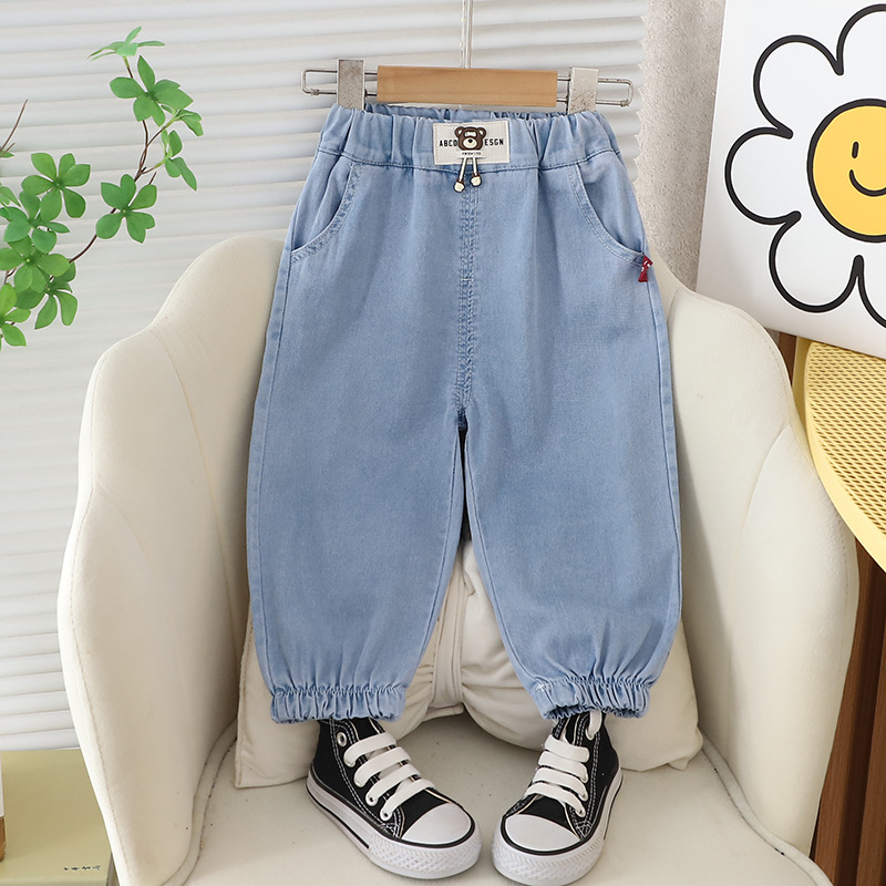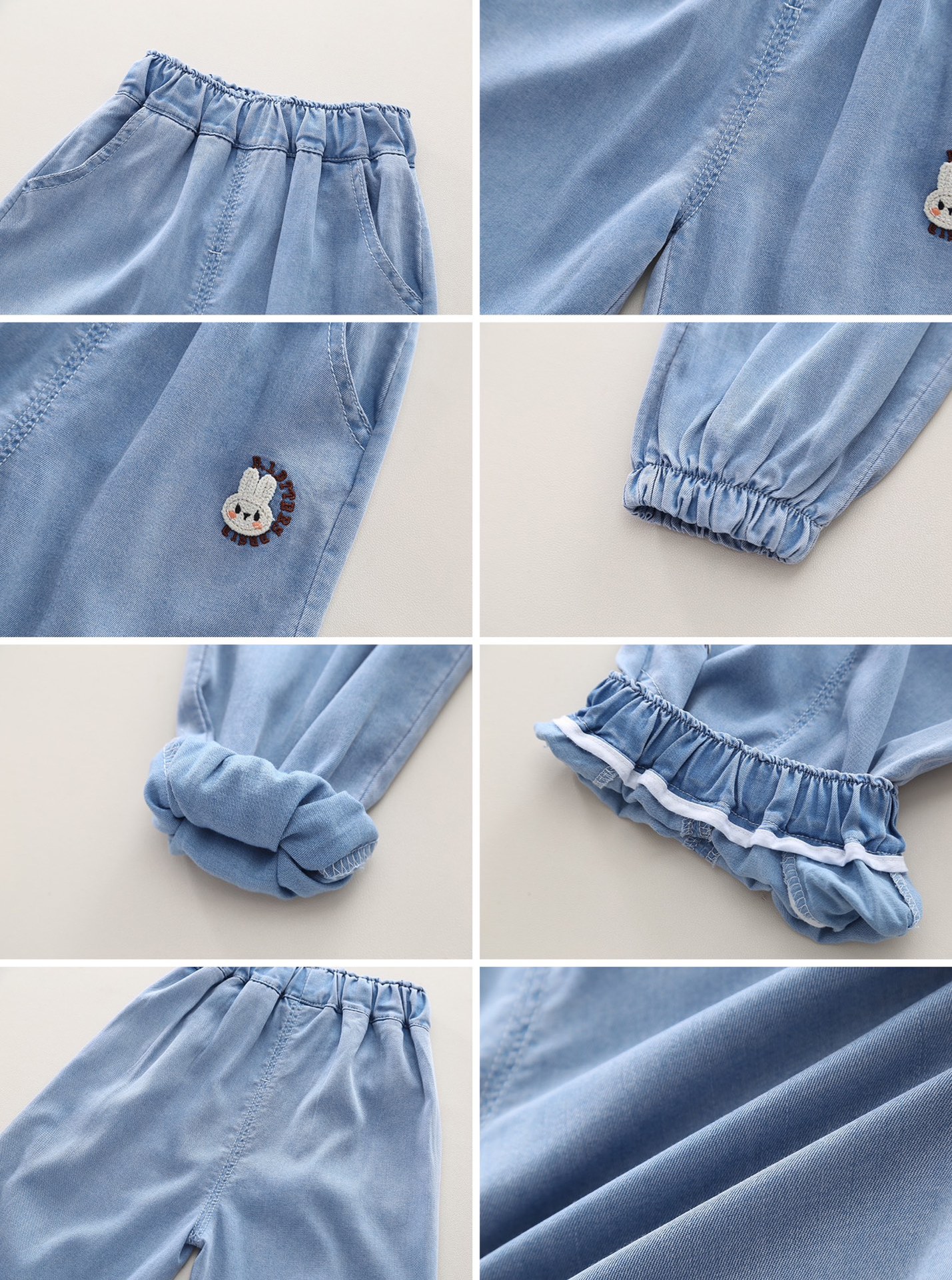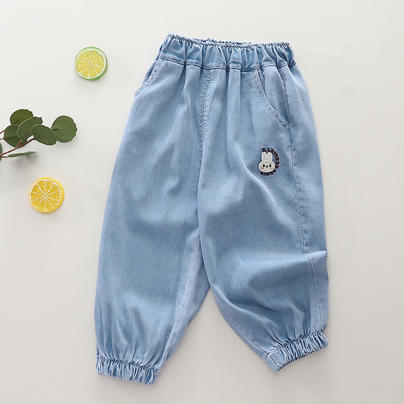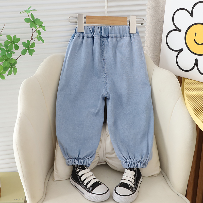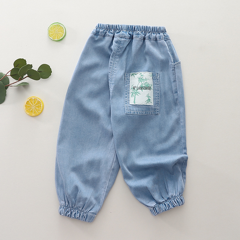 Free Shipping Yikids Spring and Summer Tencel Thin Soft Denim Pants Summer Ice Breathable Soft Long Pants