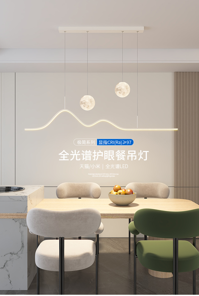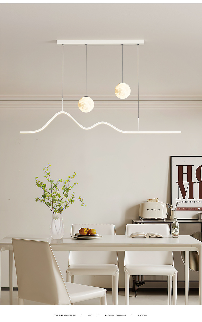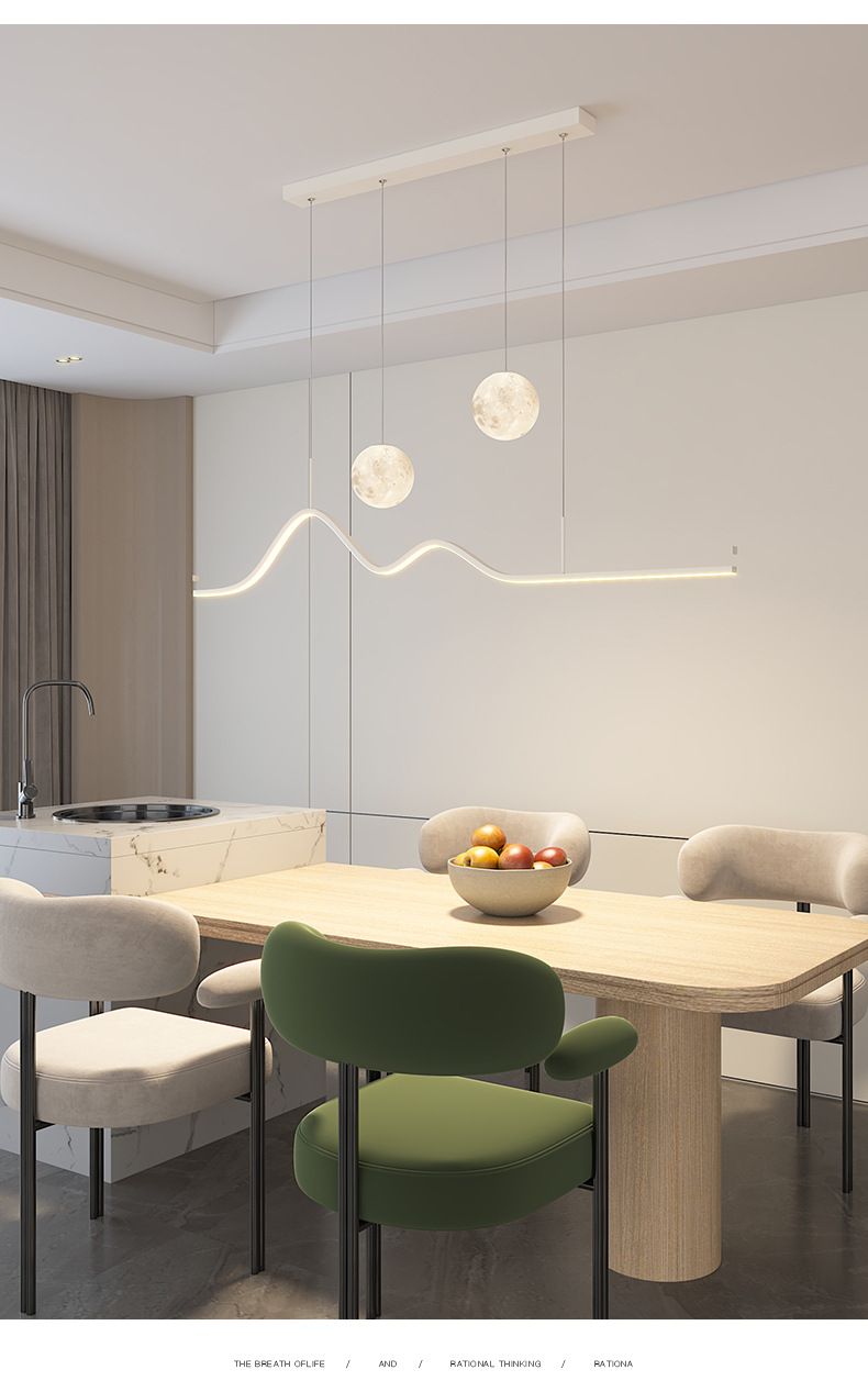 Full Spectrum Chandelier Dining Room Lamp One word Moon Lamp Cream Wind Long Eye Protection Lamp Advanced Sense Bar Table Chandelier
