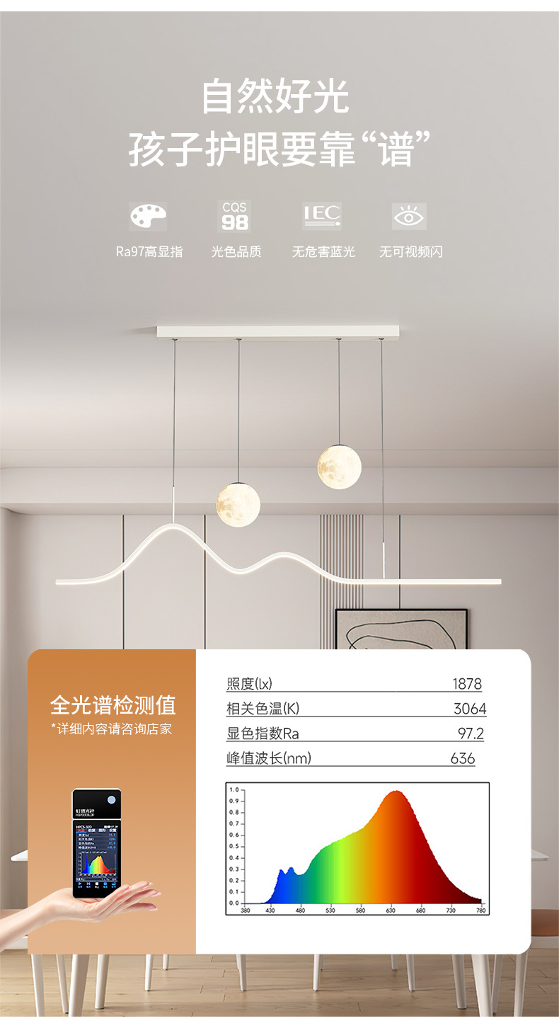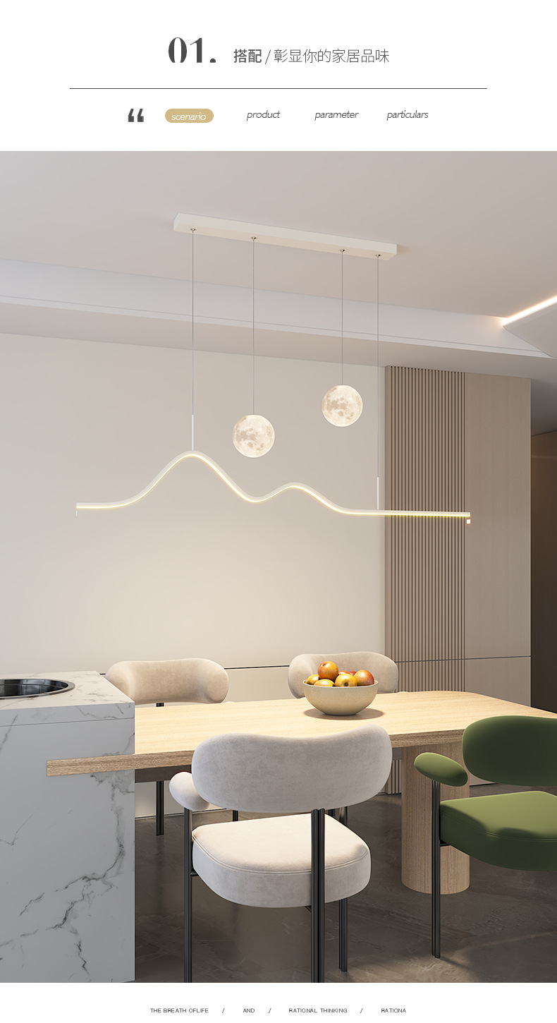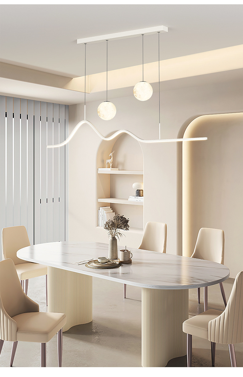 Full Spectrum Chandelier Dining Room Lamp One word Moon Lamp Cream Wind Long Eye Protection Lamp Advanced Sense Bar Table Chandelier