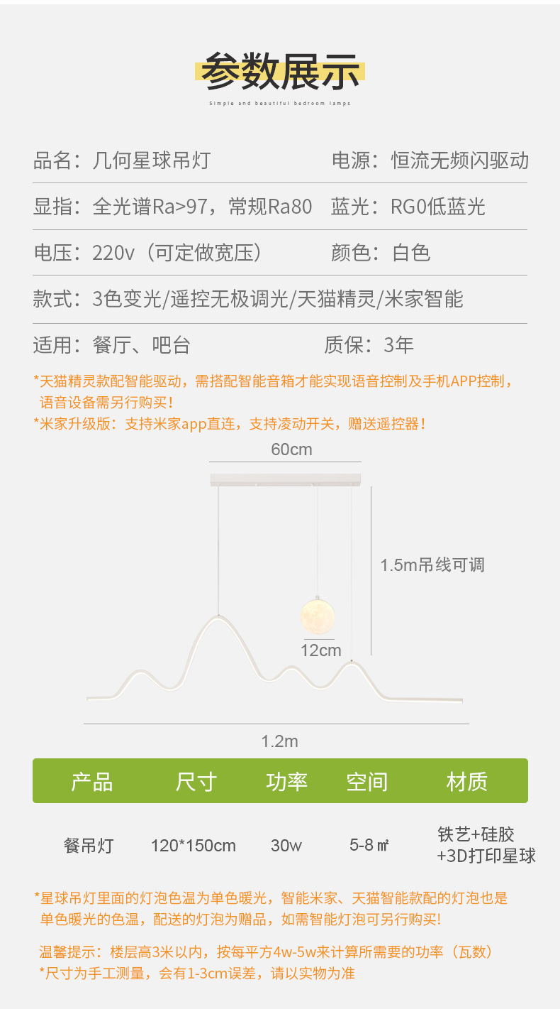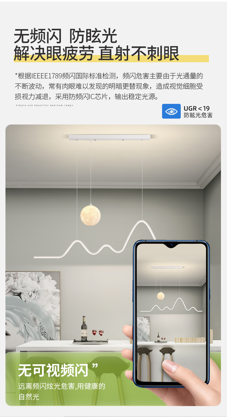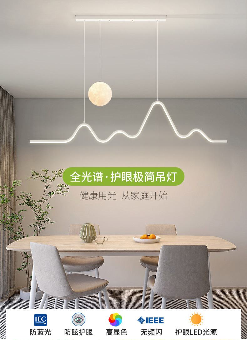 Full spectrum dining room chandelier dining table bar modern minimalist moon lamp eye protection strip dining room lamp Zhongshan lamps