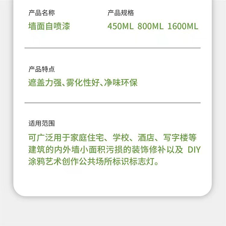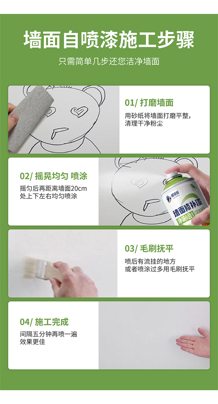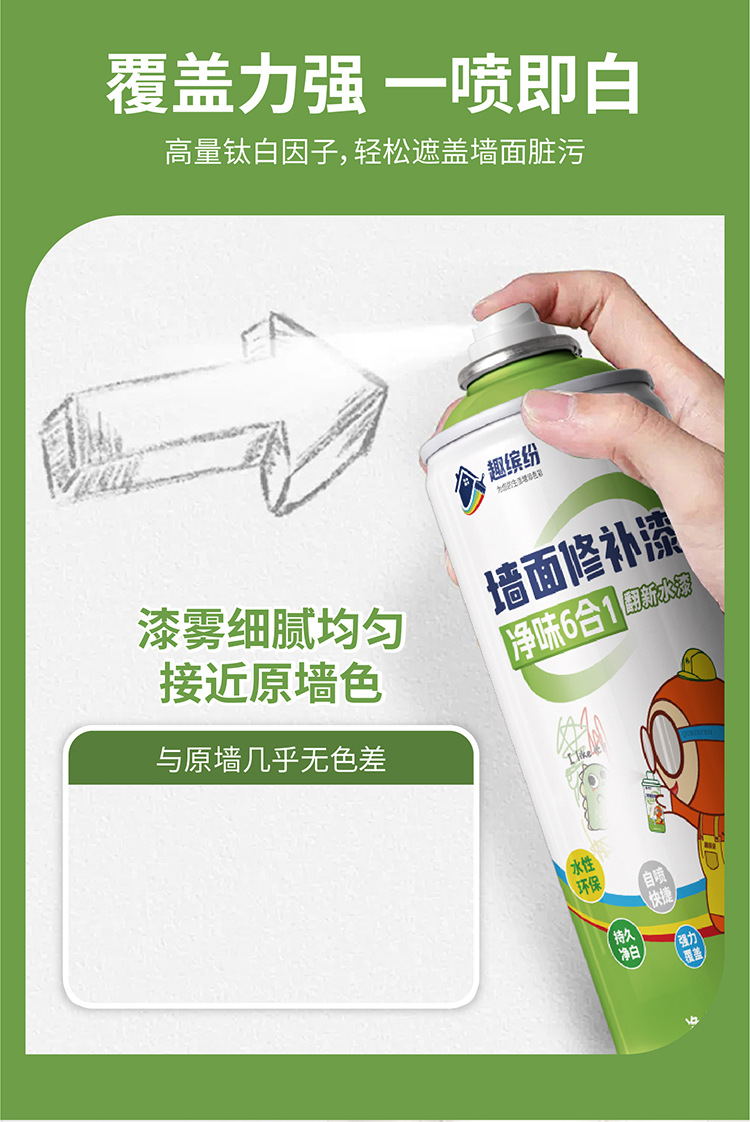 Fun and colorful wall repair paint water based clean taste environmental protection paint 1600ml indoor household renovation repair self spray paint