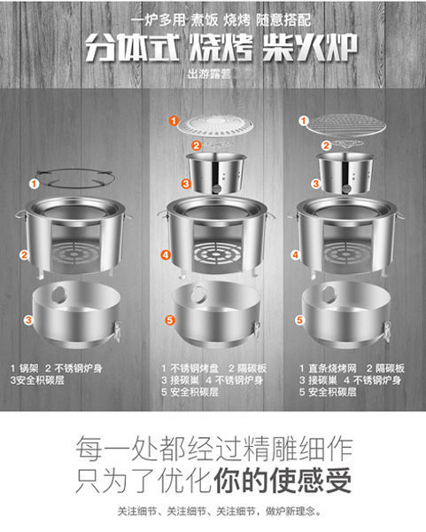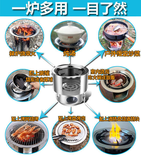 GKR Wild Cooker Outdoor Multifunctional Firewood Stove Portable Rural Household Wood Windproof Alcohol Camping Burning