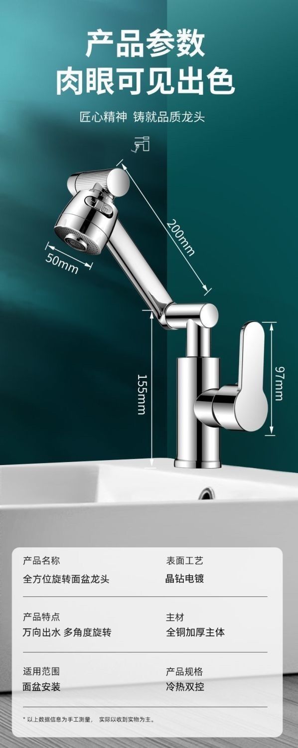 Gargle basin washbasin drawable universal copper hot and cold faucet bathroom wash basin universal swivel water hose