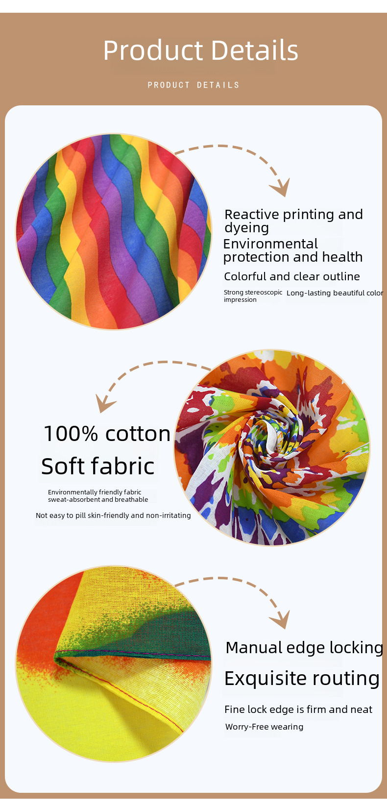 Gay Pride Festival cotton rainbow variety headscarf wholesale GayPride hip hop outdoor cycling square scarf wholesale