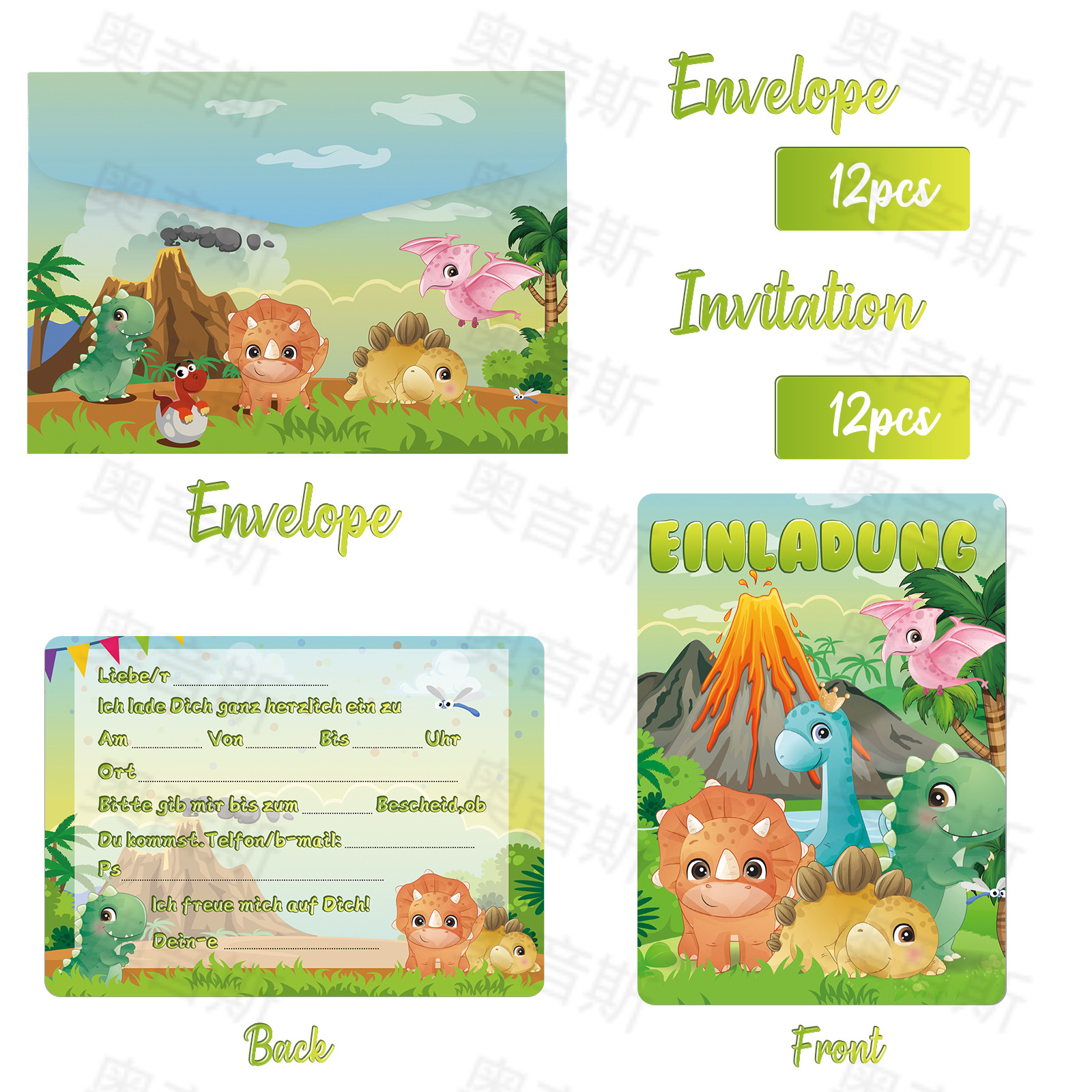 - Dinosaur German 12PCs card +12PCs self-adhesive envelope