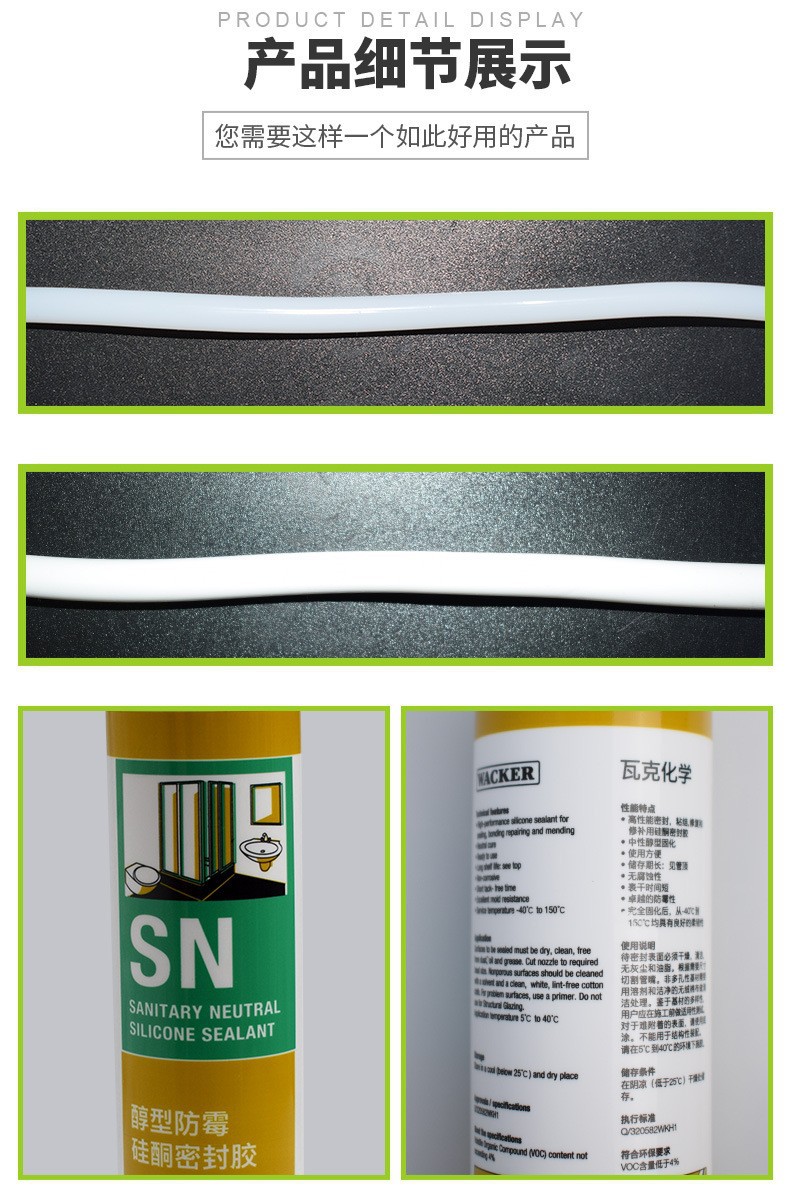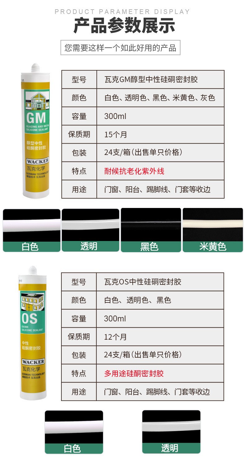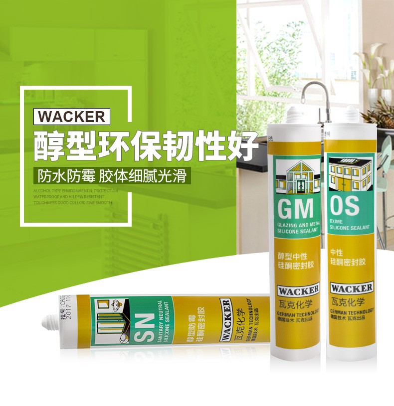 Germany WACKER DA neutral silicone sealant kitchen and mirror special glass glue white transparent beautiful seam