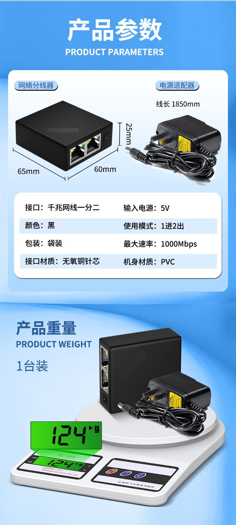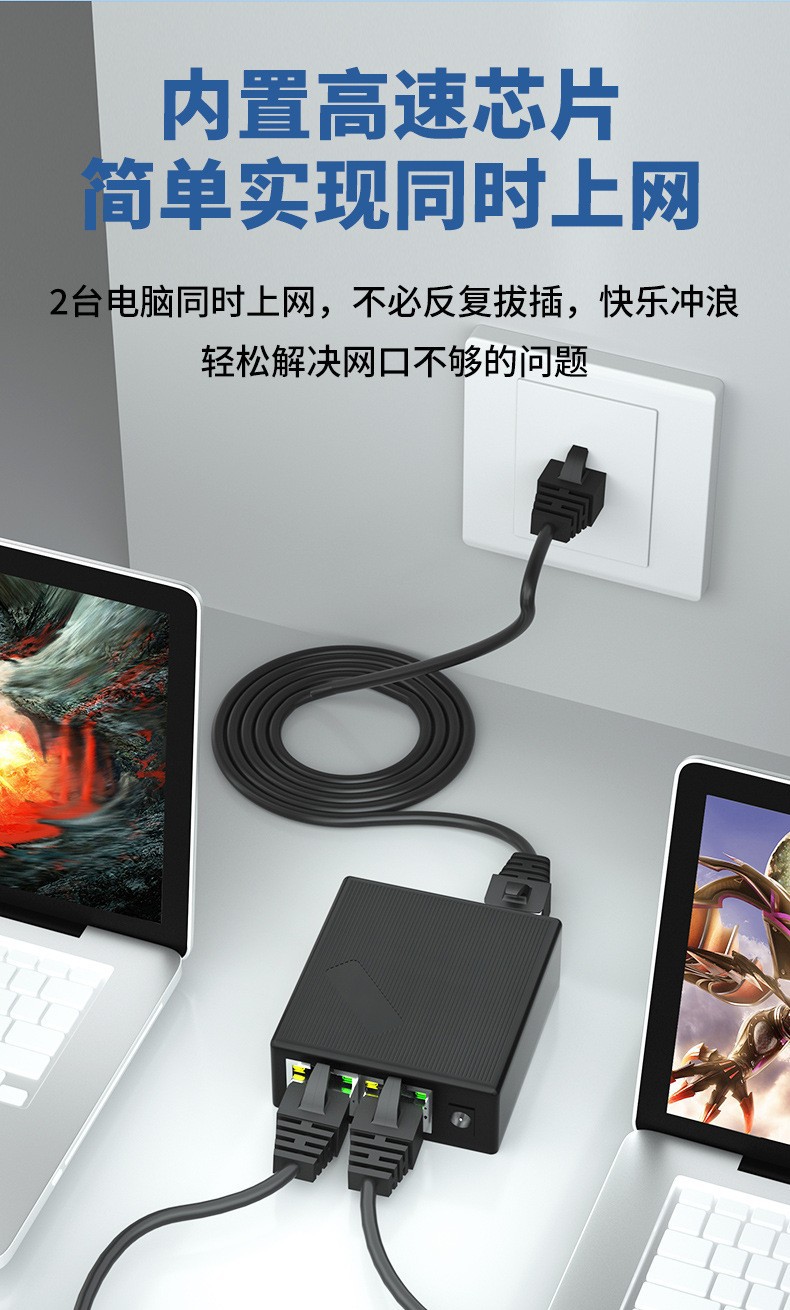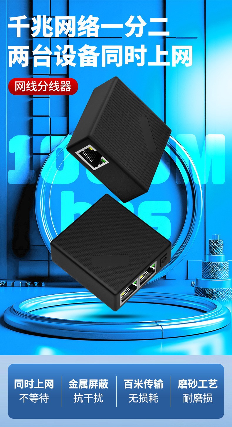 Gigabit Network Splitter One to Two Computers Simultaneous Internet Access RJ45 Transfer Network Cable Extender Switch