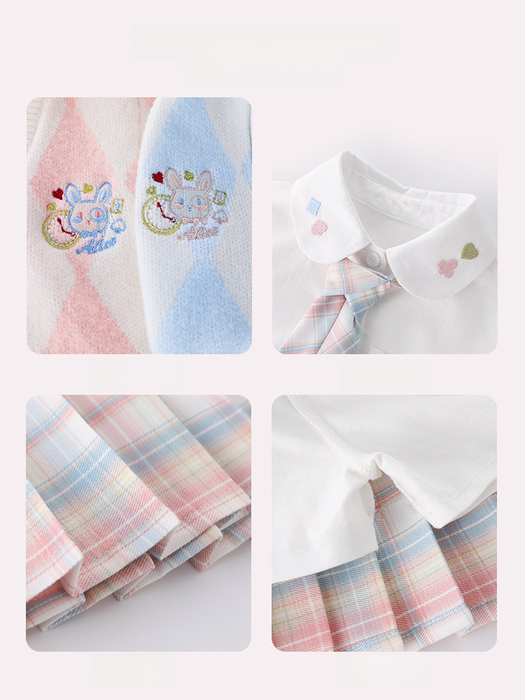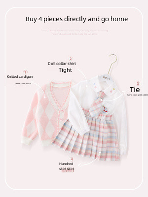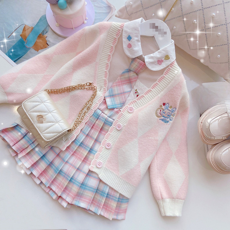 Girl s Set Spring 2023 New Children s jk Plaid Skirt Three Piece Set Girl s Sweater Spring and Autumn College Style Foreign Style