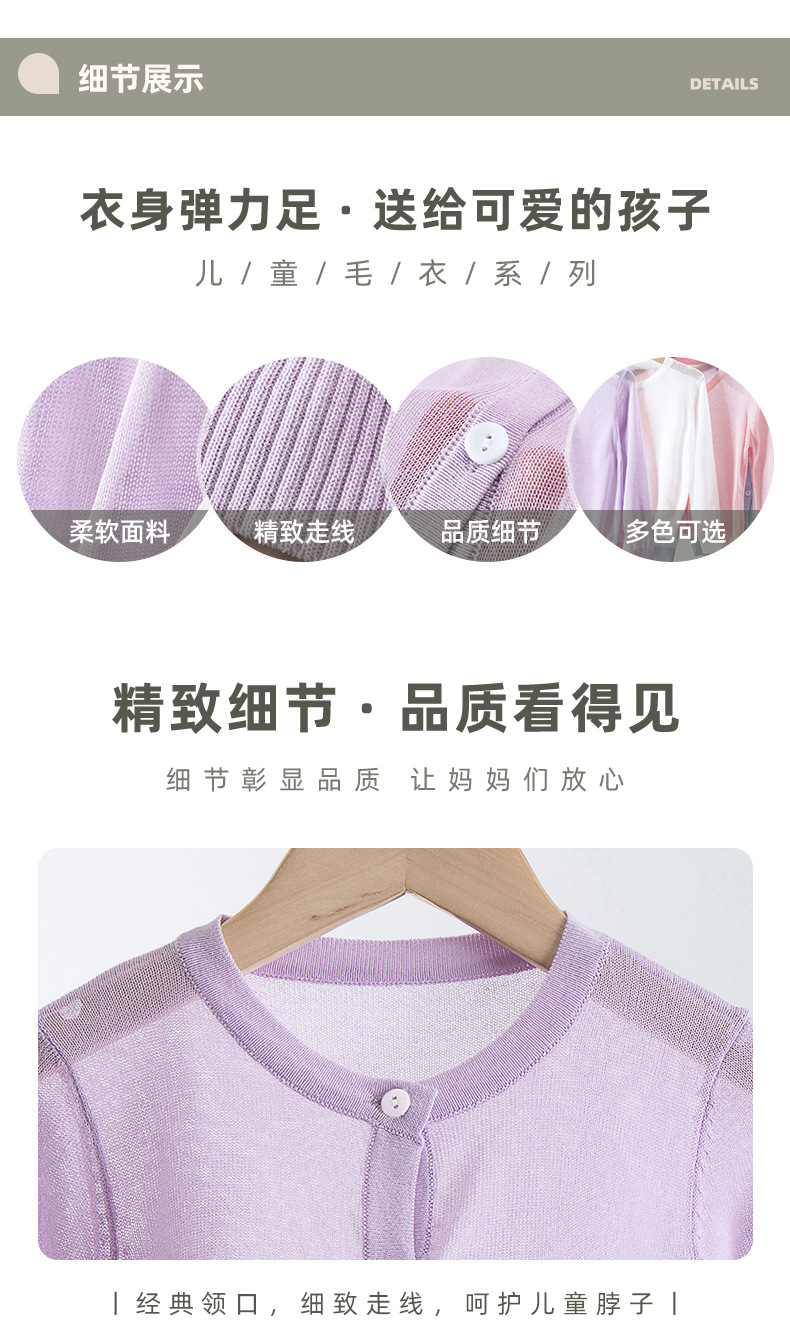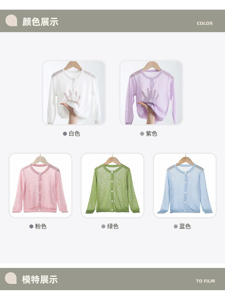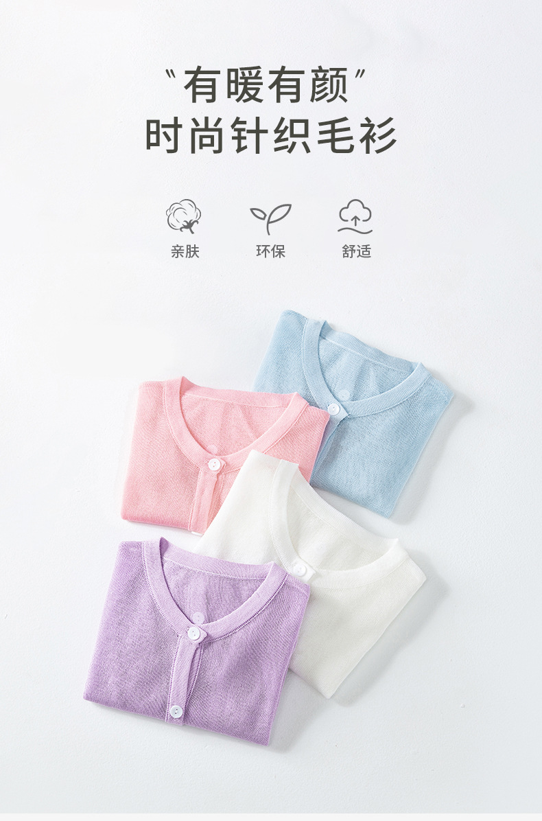 Girls 2023 Summer New Children s Solid Color Knitted Cardigan Baby s Thin All match Air conditioning Shirt Jacket Sunscreen Shirt