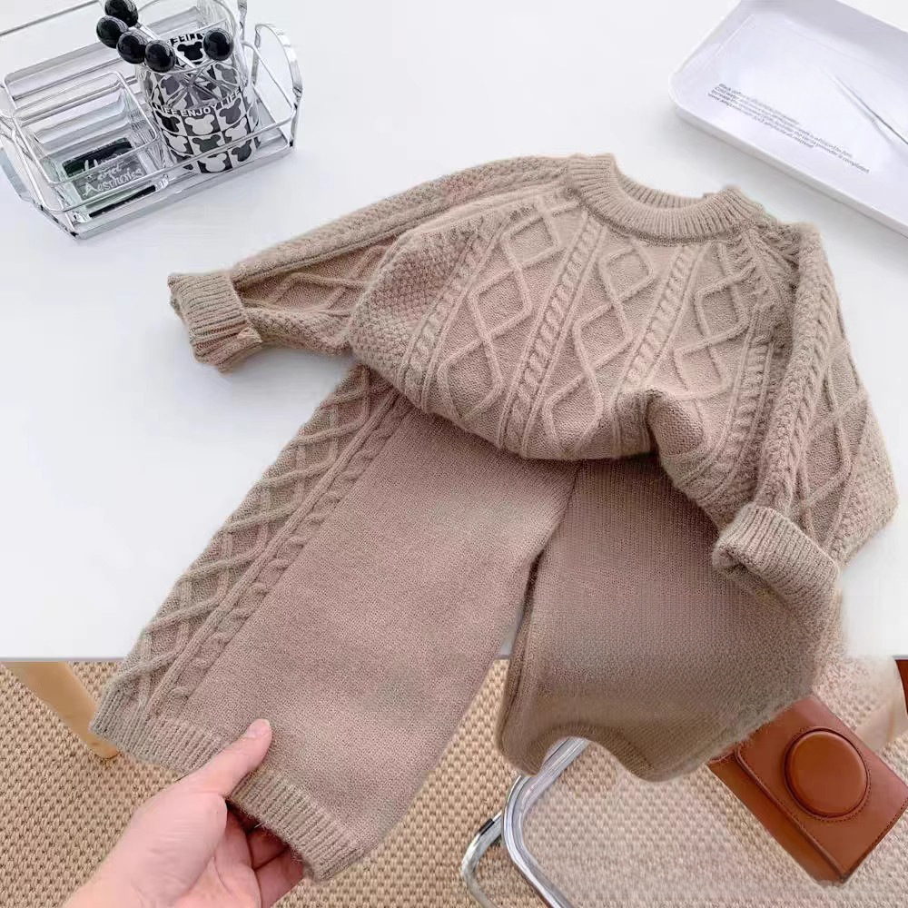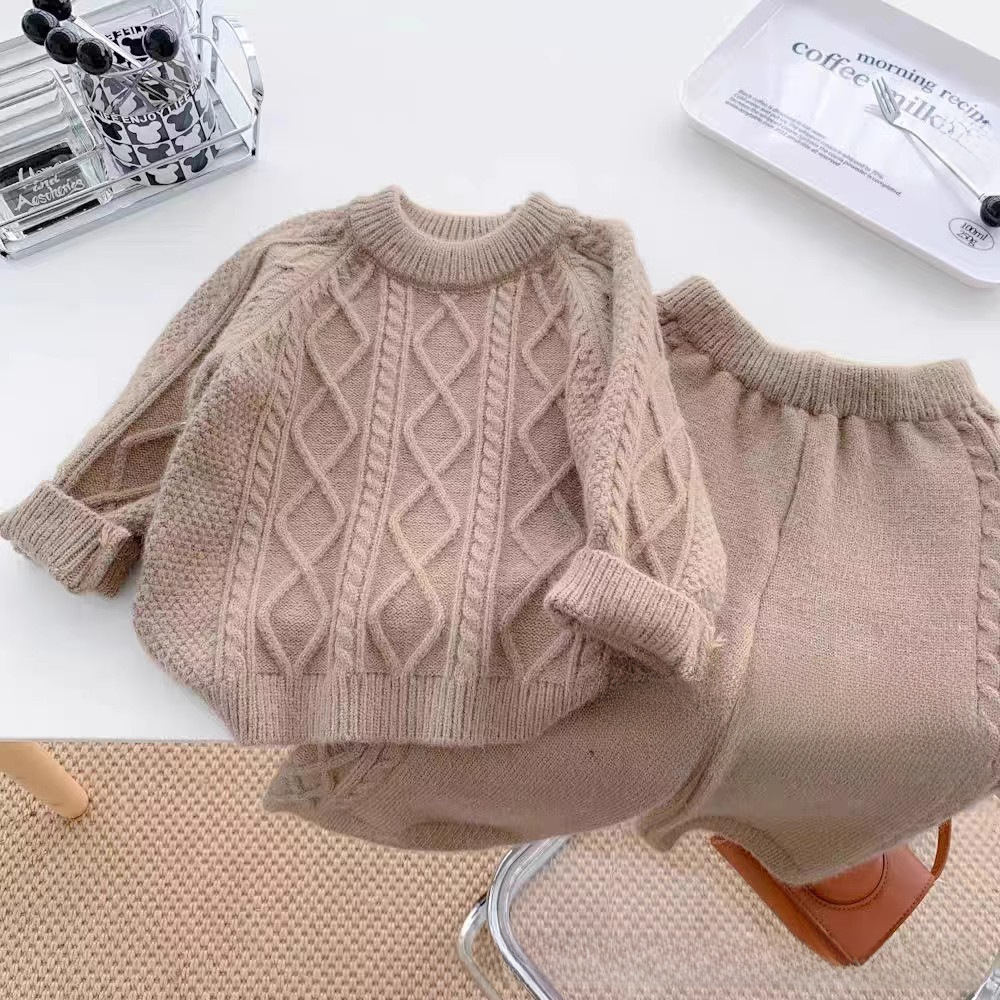 Girls Autumn and Winter Retro Korean Style Sweater 2023 New Children s Fashionable Mori Knitted Wool Pants Set Trendy