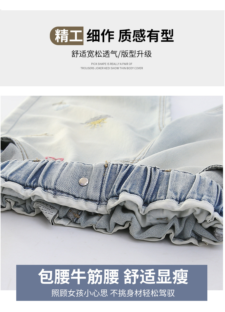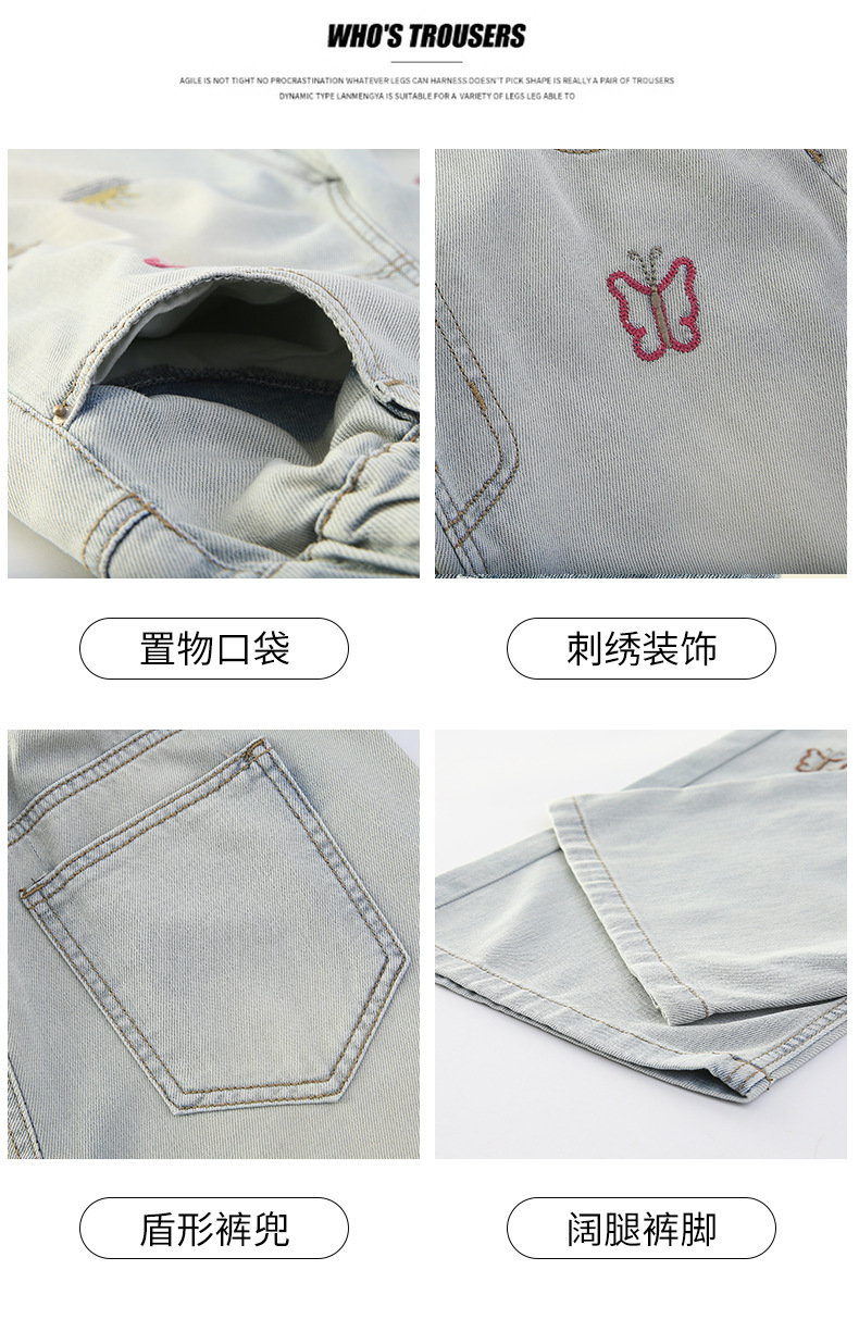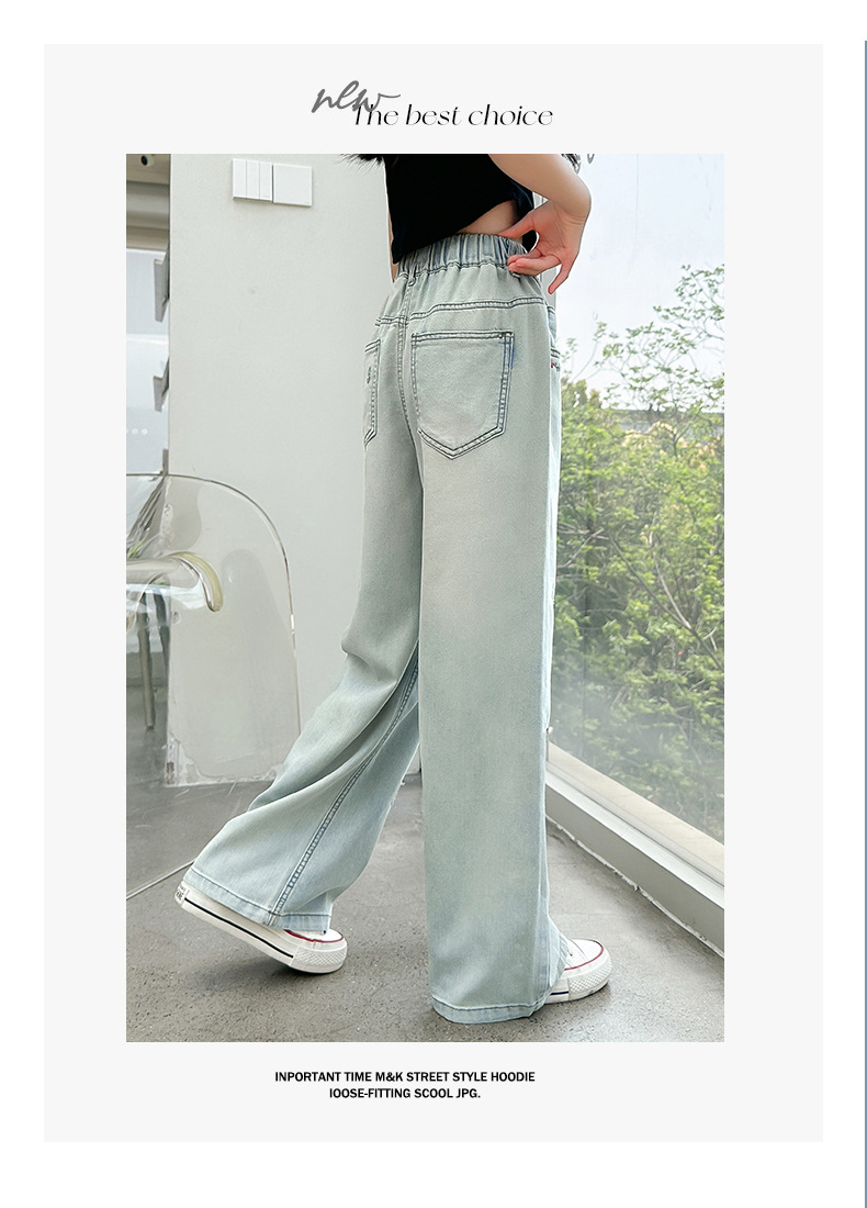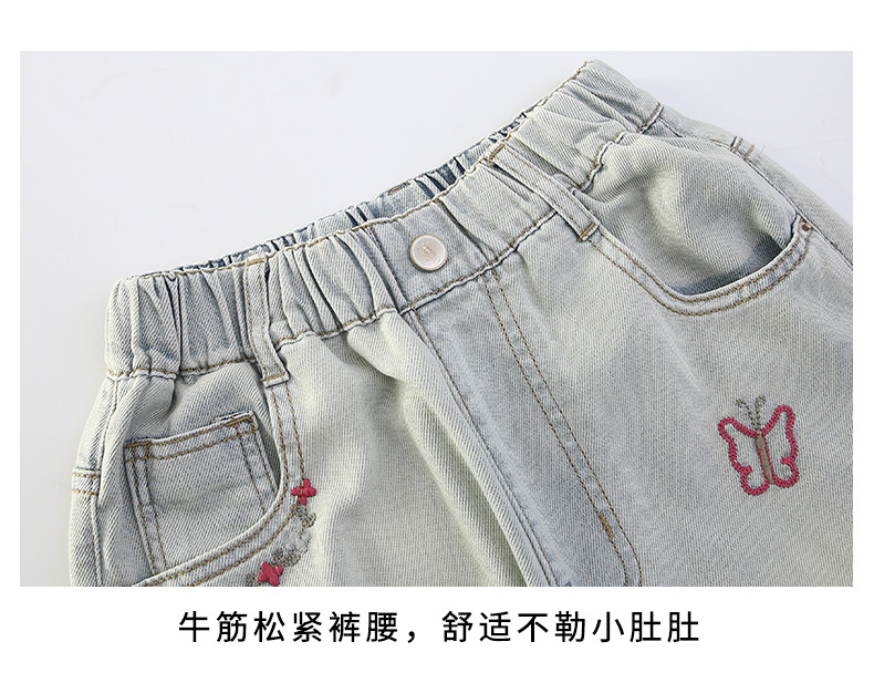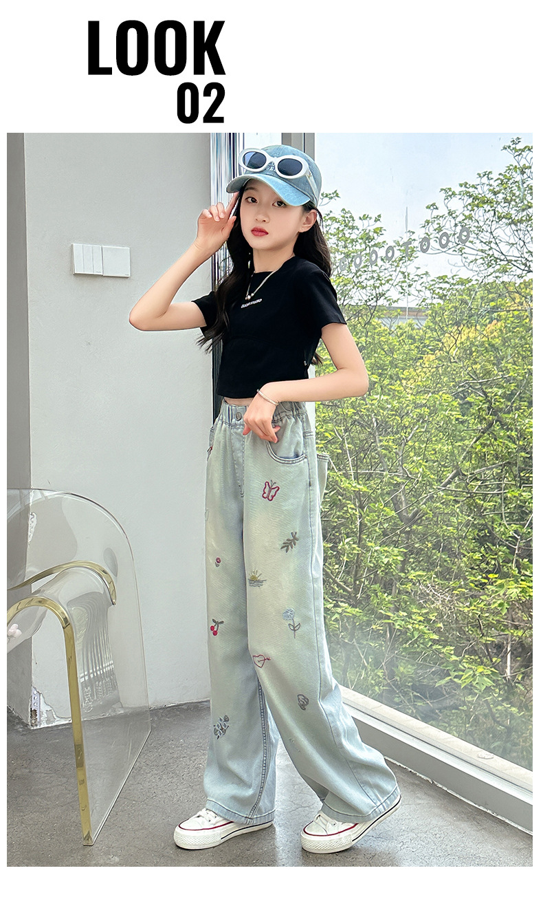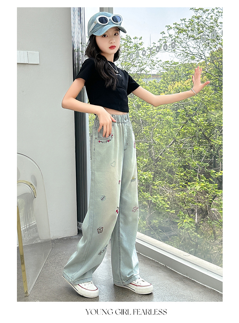 Girls Embroidered Jeans Summer 2024 New Children s Straight Wide Leg Pants Girls Big Children s Thin Pants for Junior High School Students