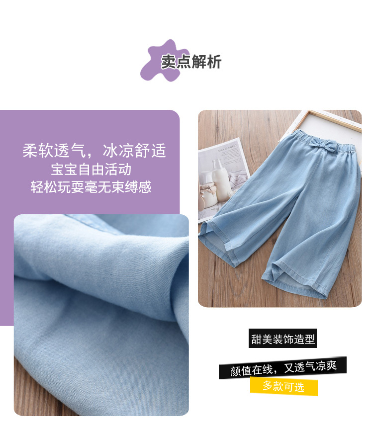 Girls Pants Summer Thin Wide Leg Pants ins Trendy All Match Women s Mid Big Children s Summer Tencel Denim Loose Outer Wear