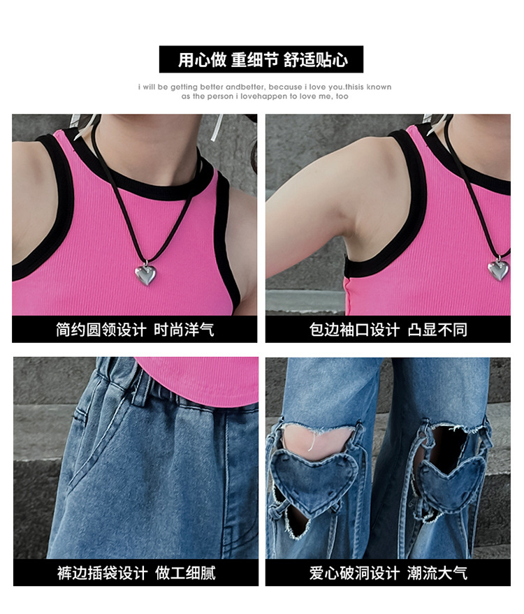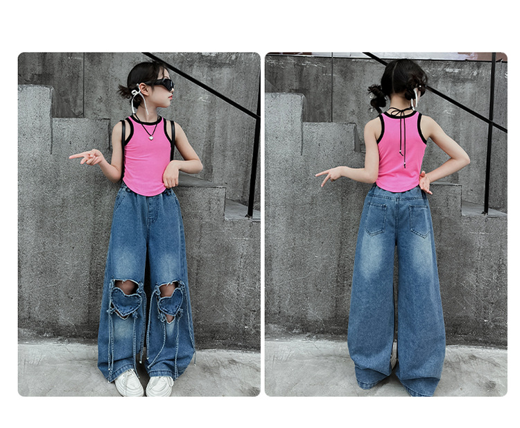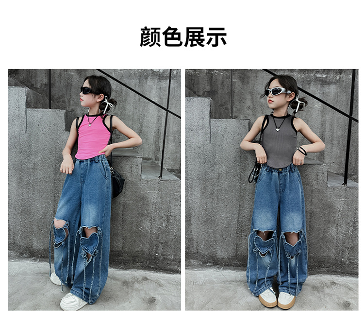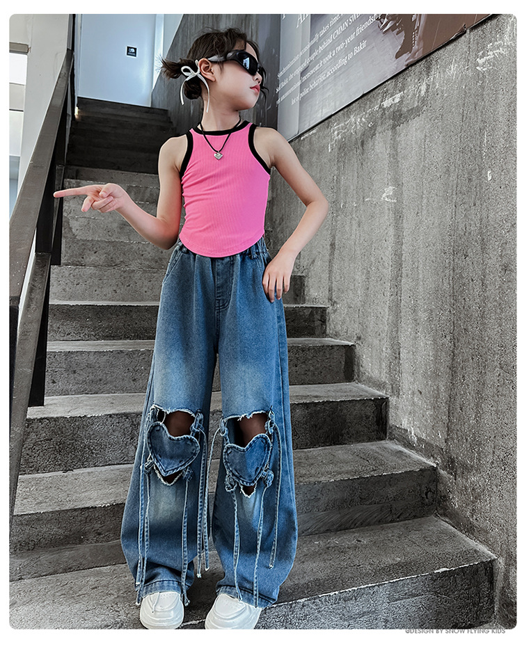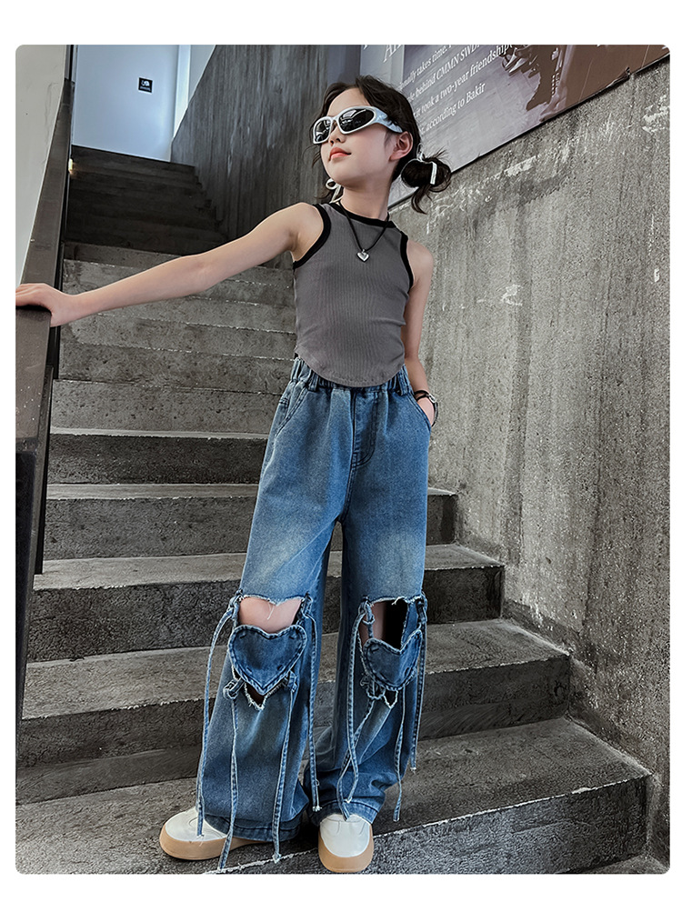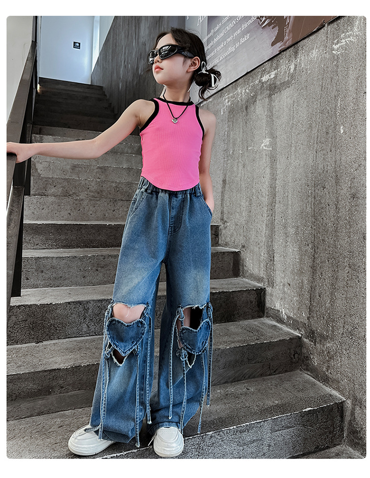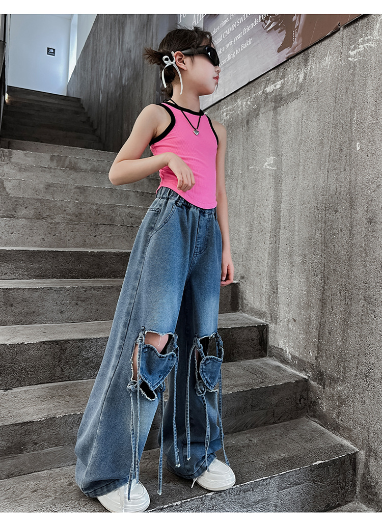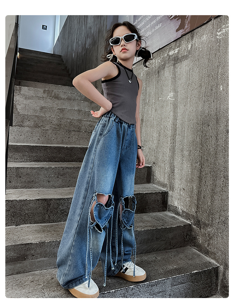 Girls Ripped Jeans Summer 2024 New Style Korean Style Loose Wide Leg Pants Children s Summer Straight Leg Pants