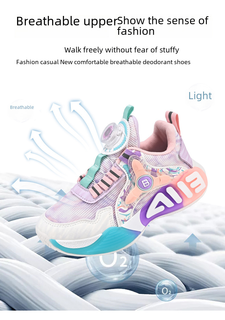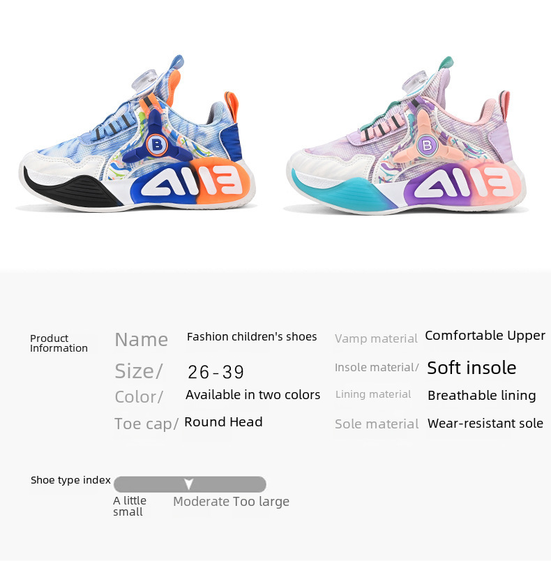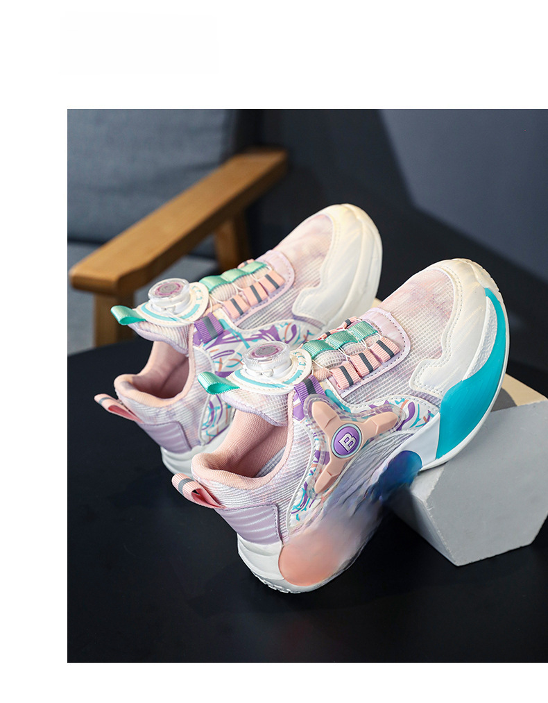 Girls Shoes 2024 New Spring Kids Basketball Shoes Swivel Button Boys Running Summer Middle and Big Kids Sneakers