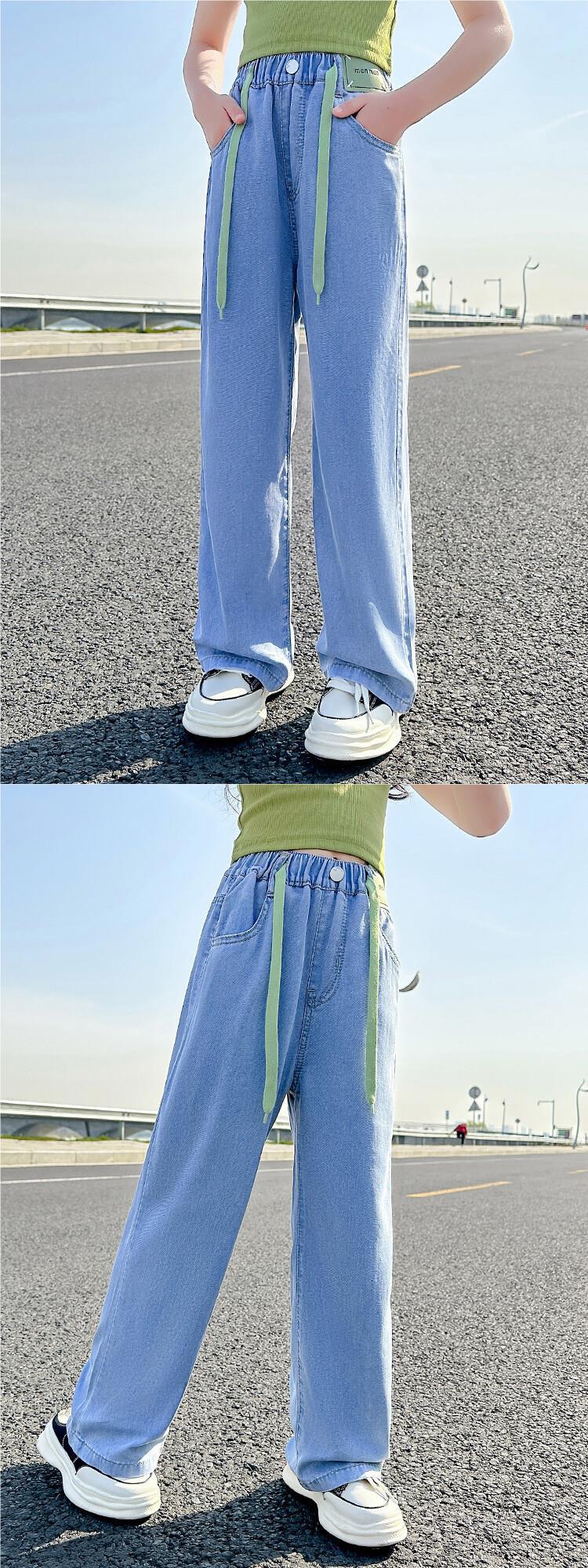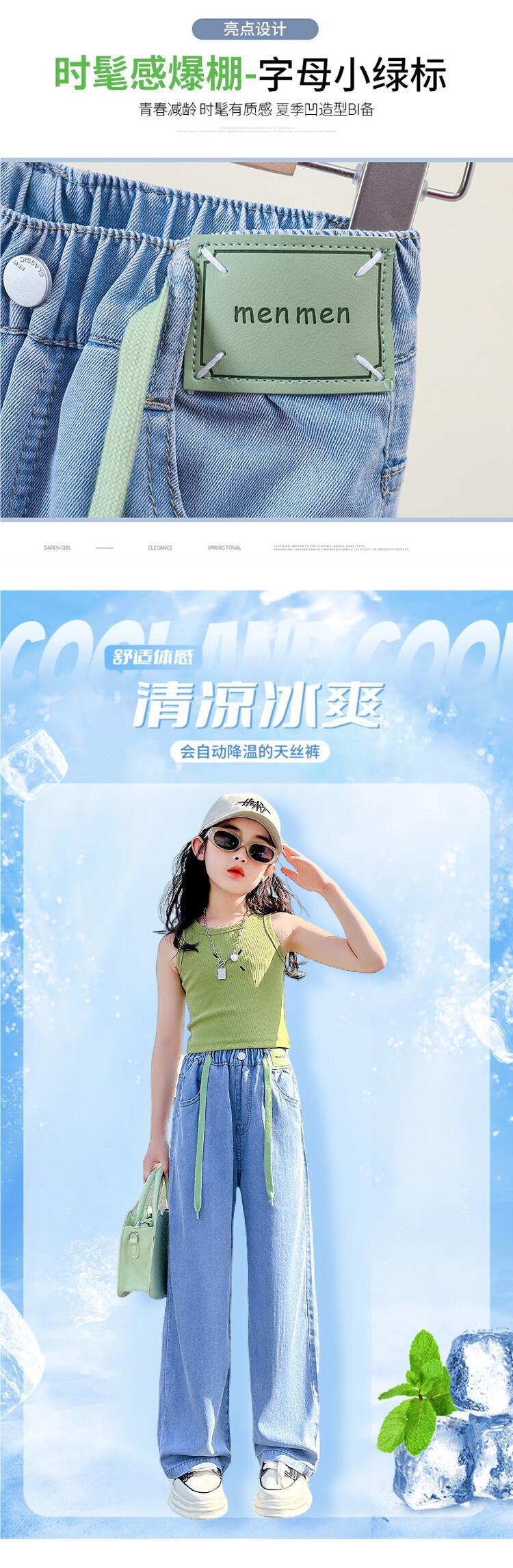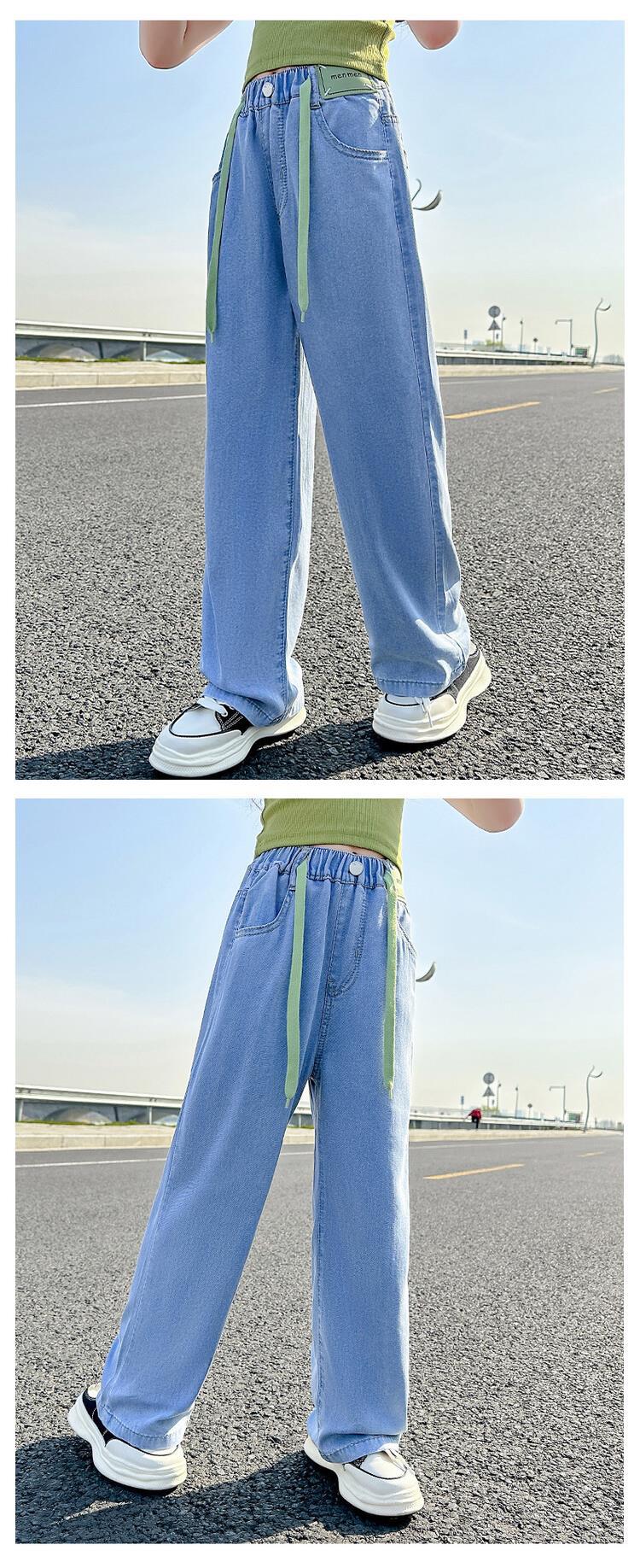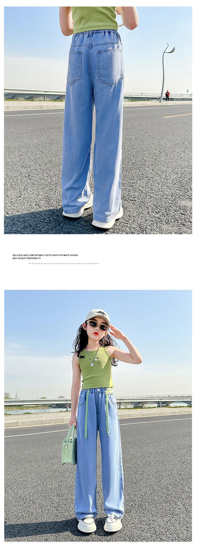 Girls Summer Jeans 2024 New Western Style Mid Big Children s Thin Ice Silk Anti mosquito Pants Summer Straight Casual Pants