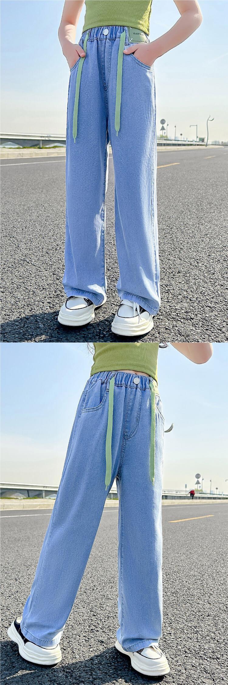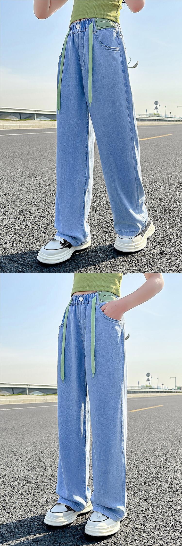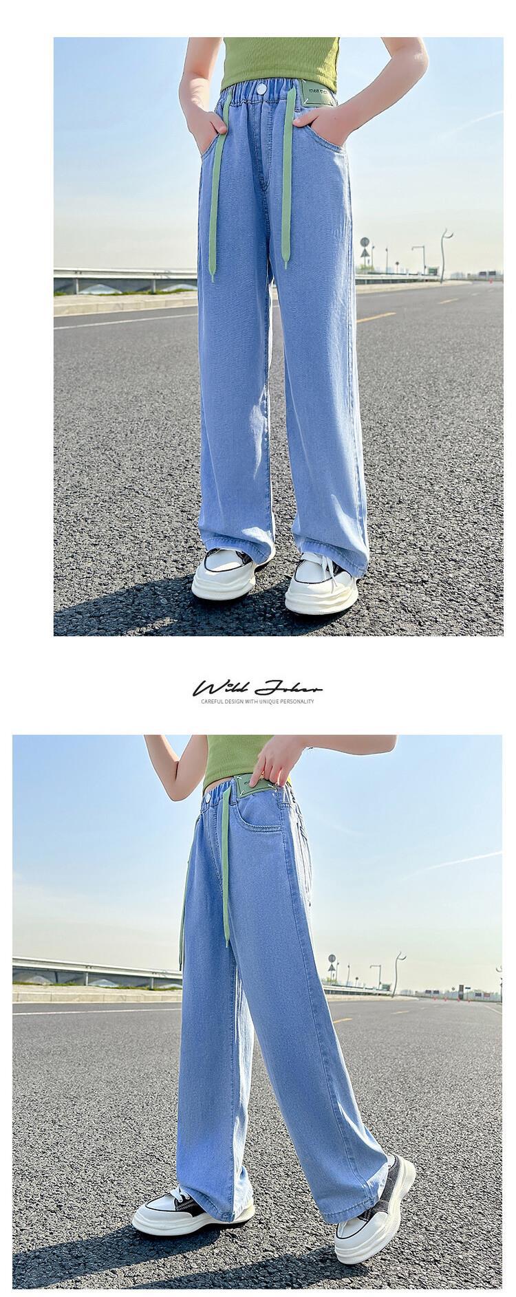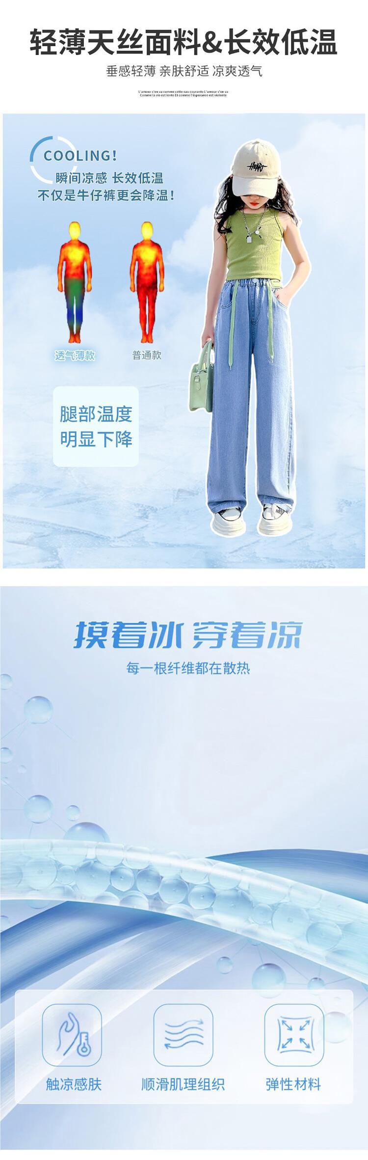 Girls Summer Jeans 2024 New Western Style Mid Big Children s Thin Ice Silk Anti mosquito Pants Summer Straight Casual Pants