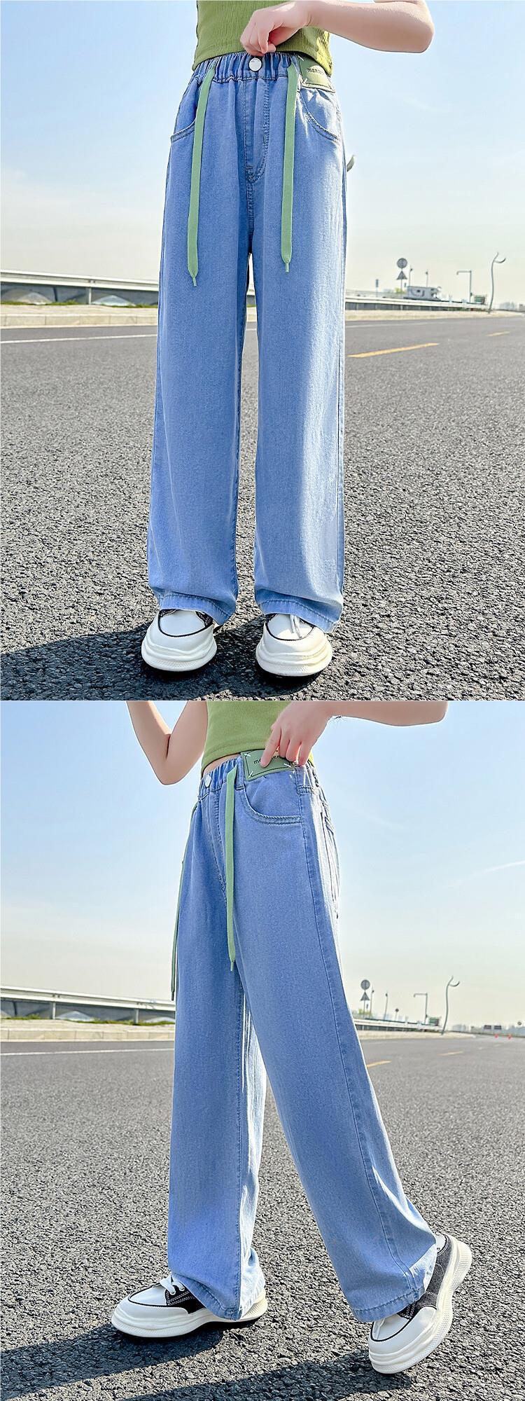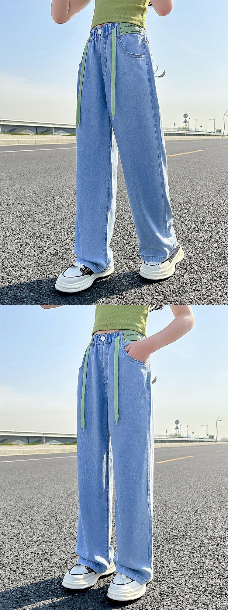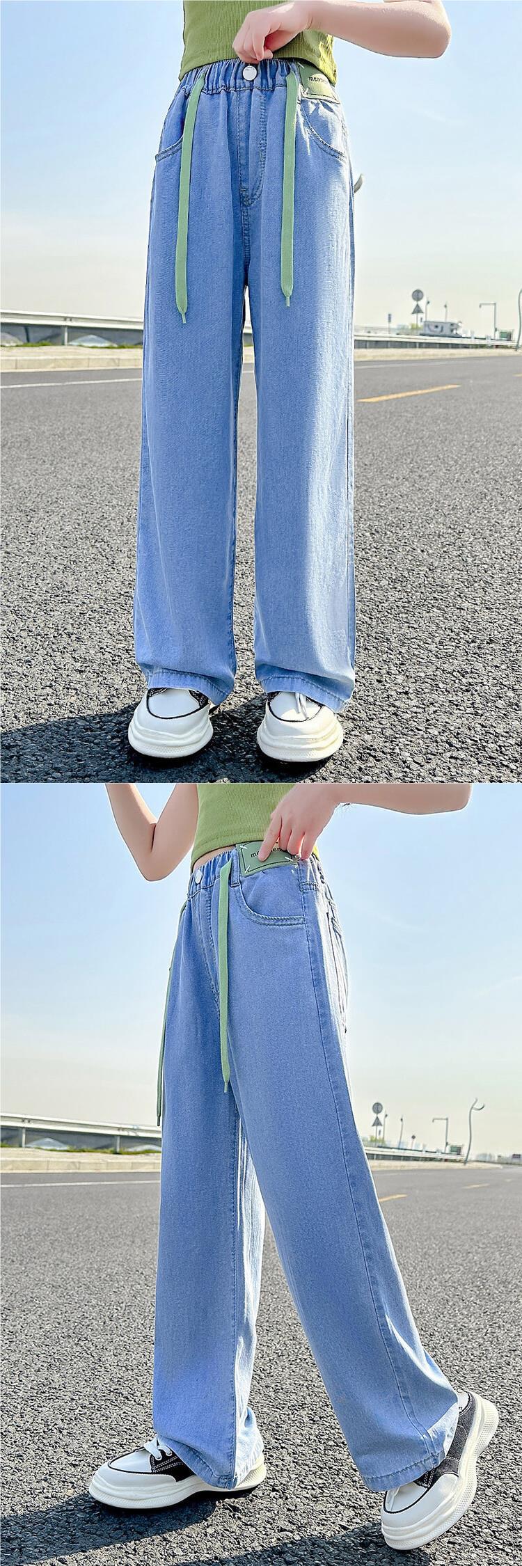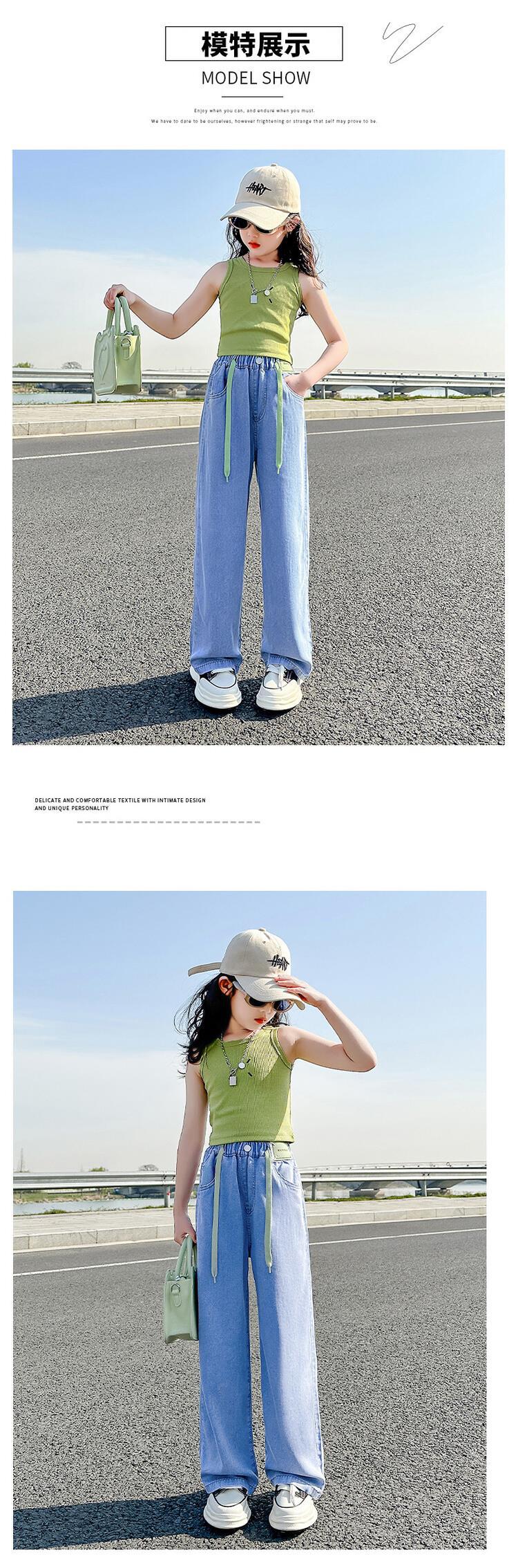 Girls Summer Jeans 2024 New Western Style Mid Big Children s Thin Ice Silk Anti mosquito Pants Summer Straight Casual Pants