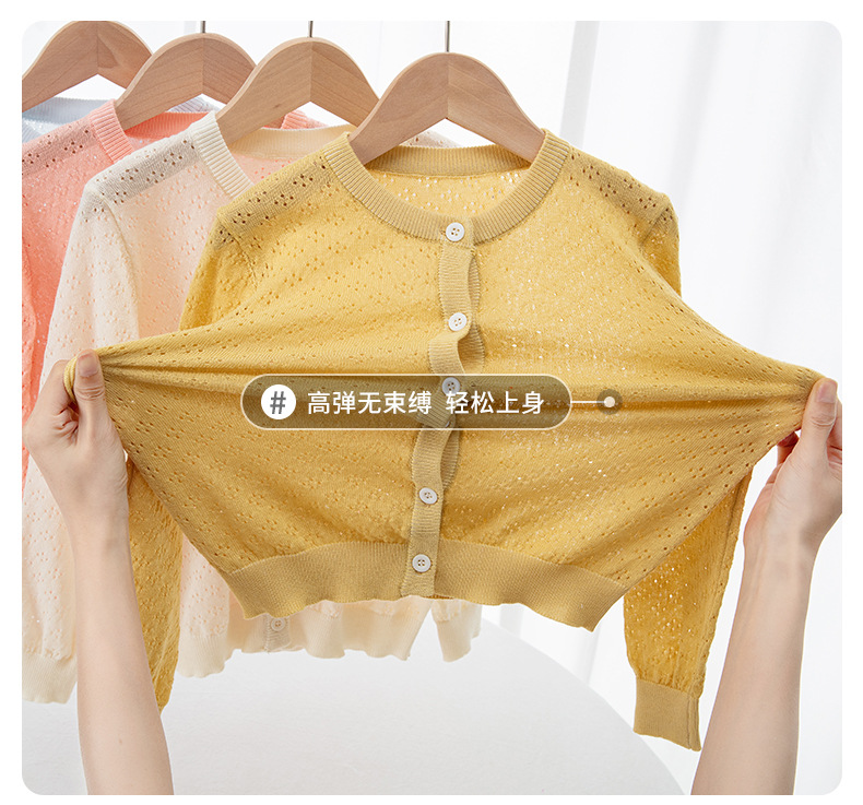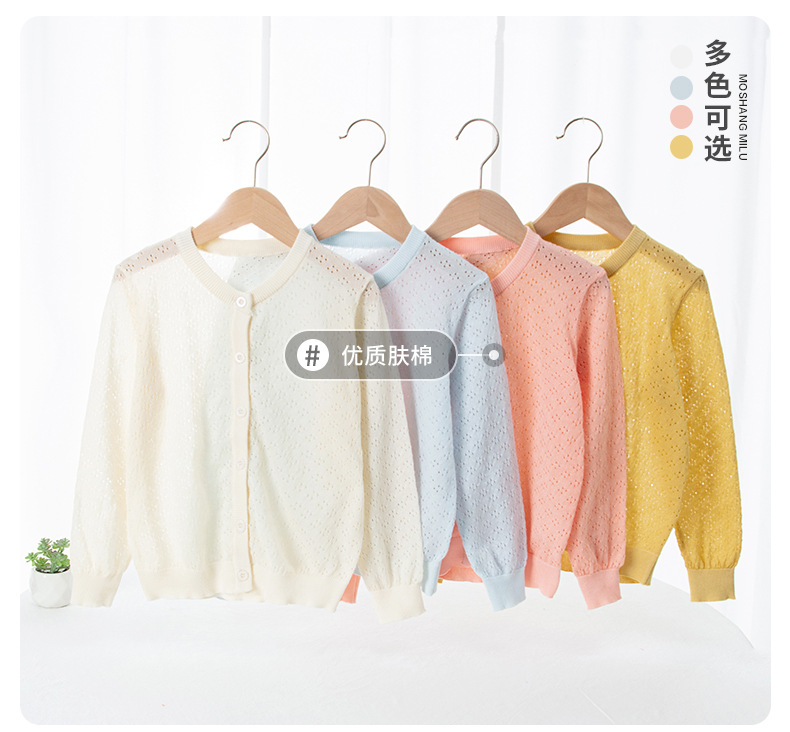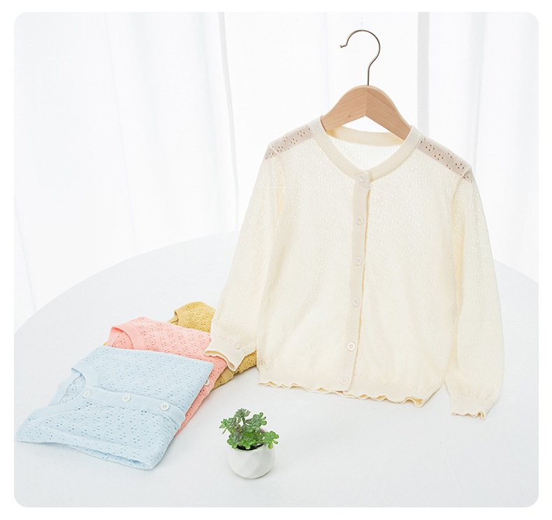 Girls Summer Knitted Cardigan 2023 New Sunscreen Hollow Top Coat Baby Girls Thin Air conditioning Shirt