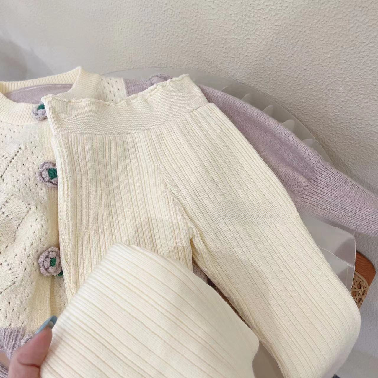 Girls autumn clothing suit 2023 new style baby girls Western style knitted cardigan children s autumn flared pants two piece suit fashion