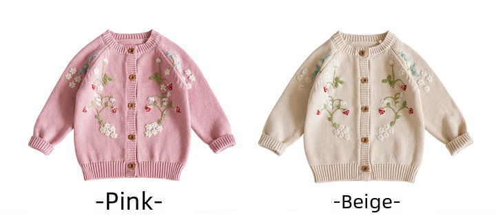 Girls children s clothing 2023 new children s sweater wholesale autumn girls knitted sweater hand embroidered strawberry flower cardigan