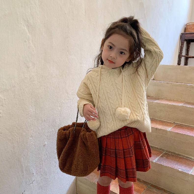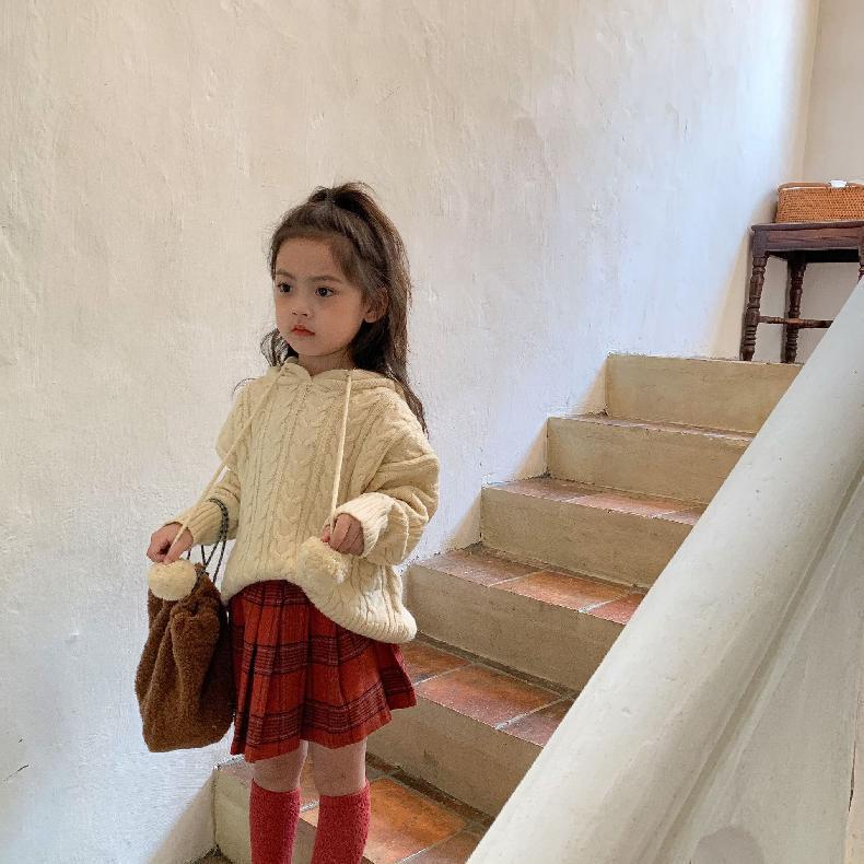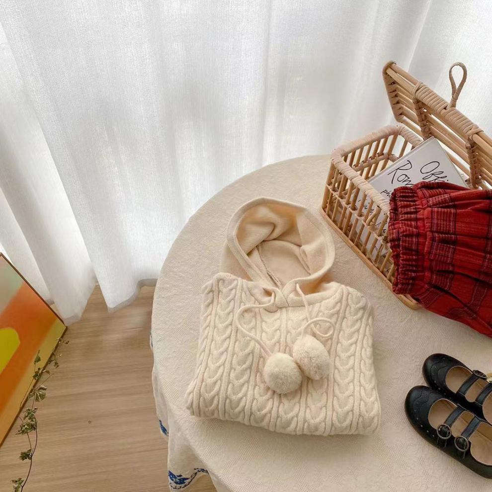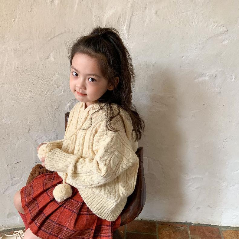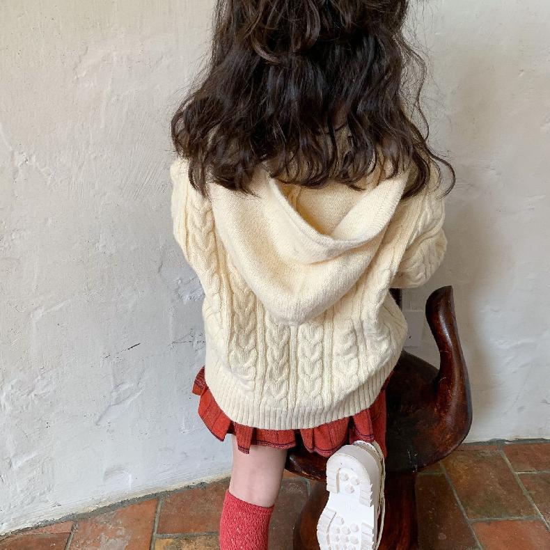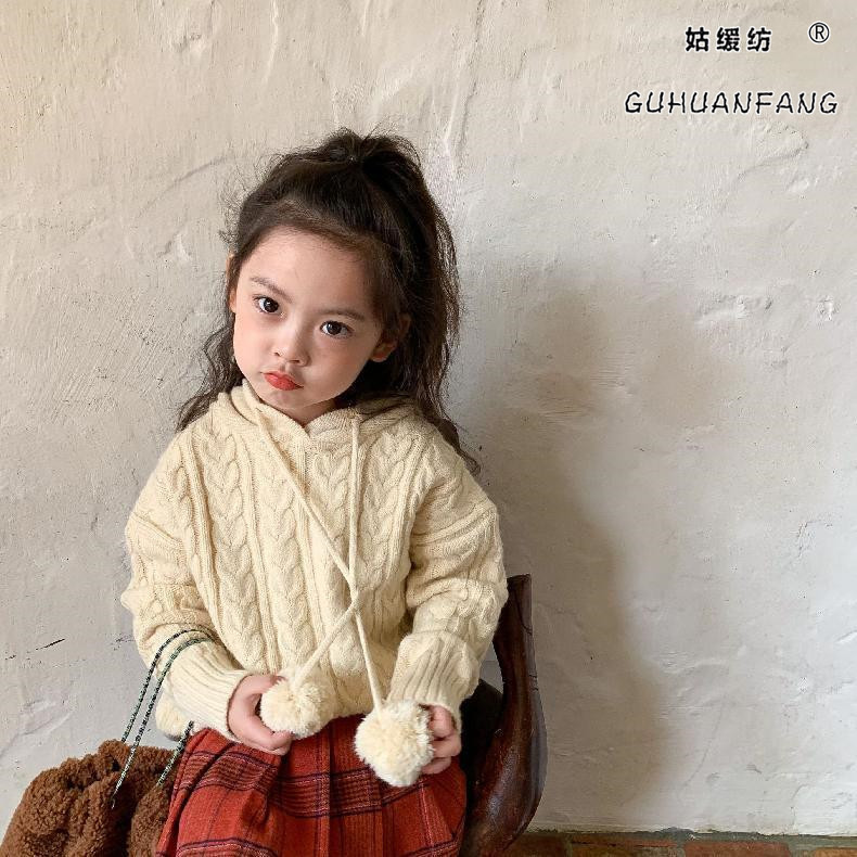 Girls hooded sweater autumn and winter New baby girls retro coarse twist sweater children s pullover sweater
