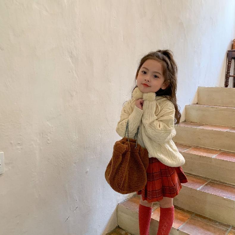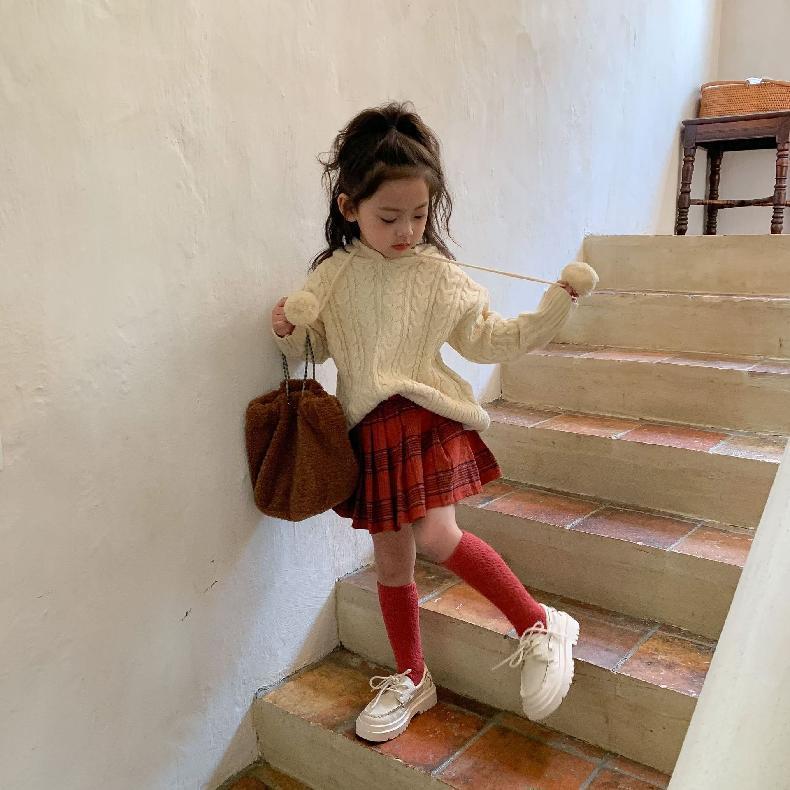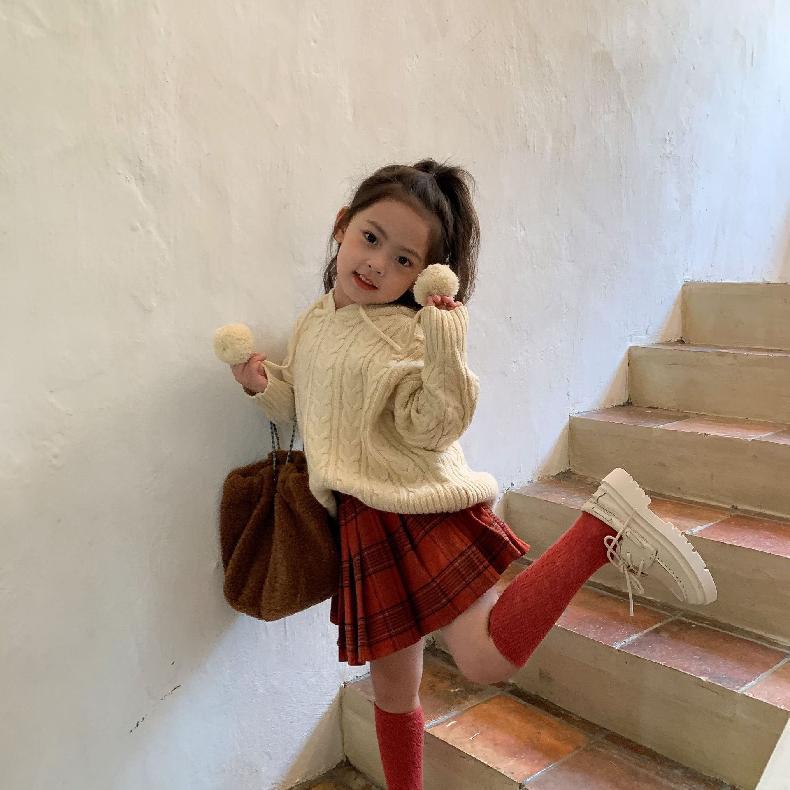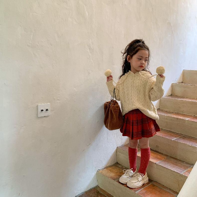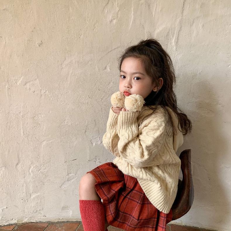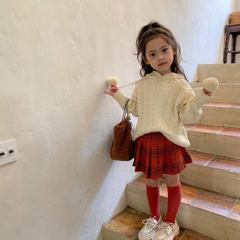 Girls hooded sweater autumn and winter New baby girls retro coarse twist sweater children s pullover sweater