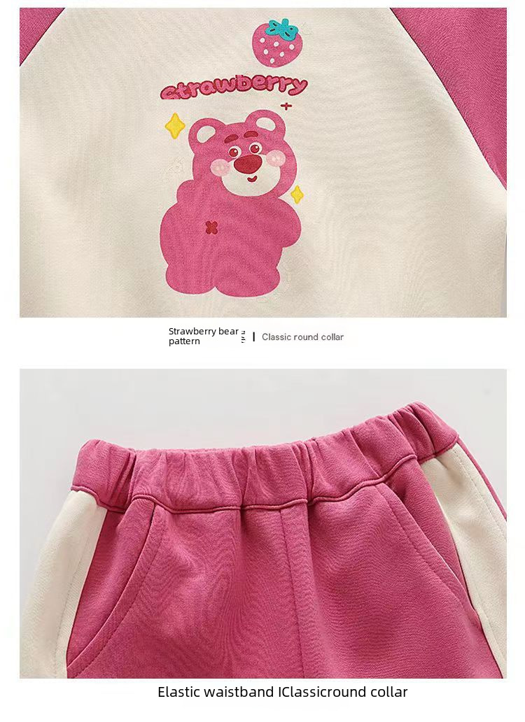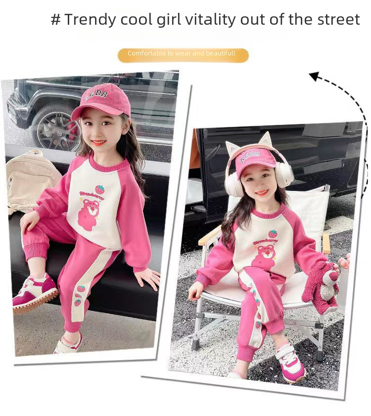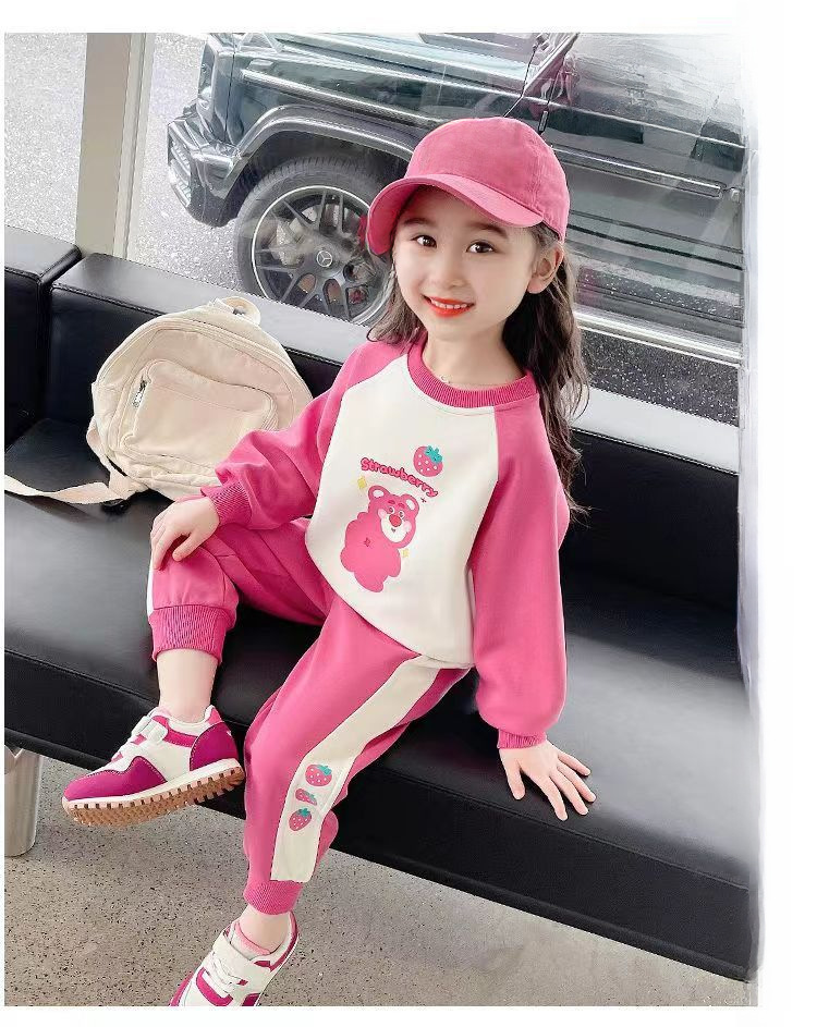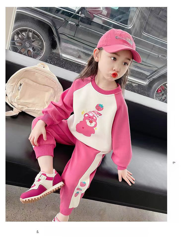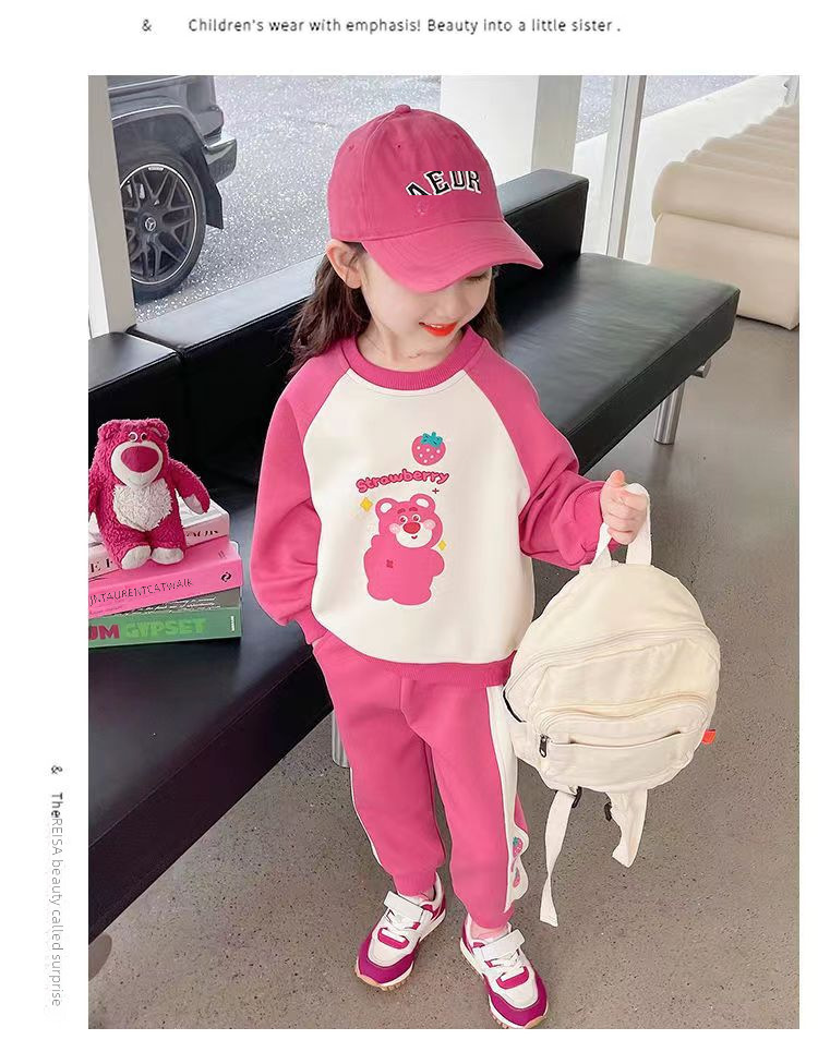 Girls pink printed cartoon suit winter new children s baby girls round neck leisure sports two piece suit fashion