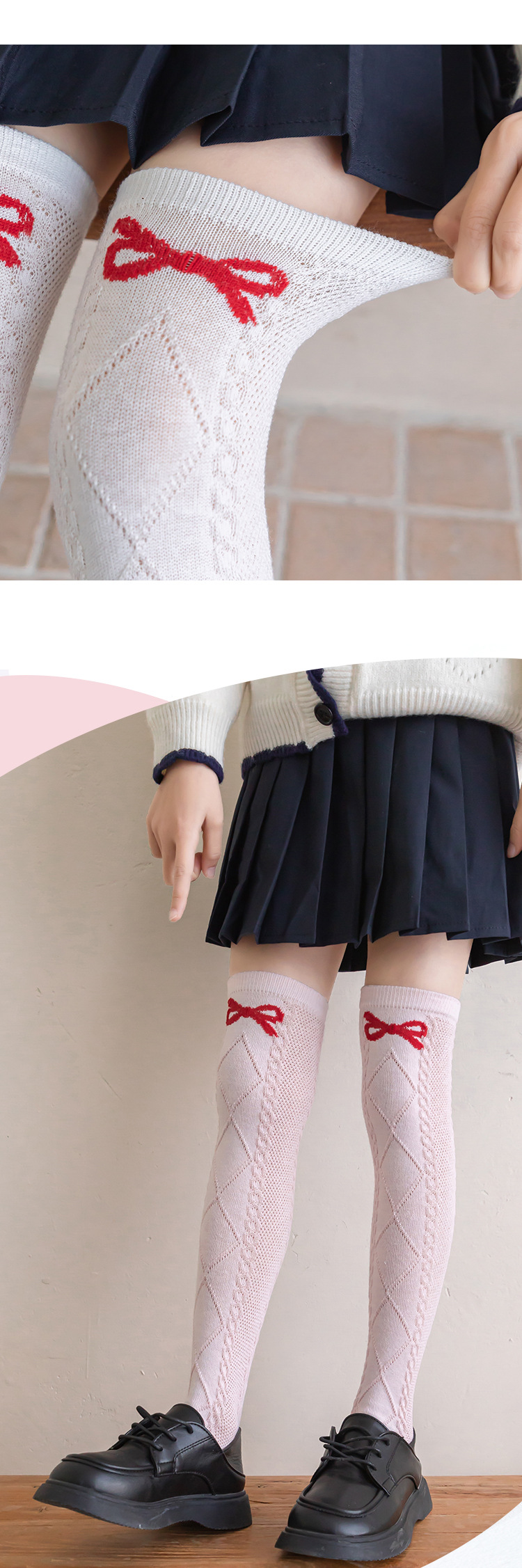 Girls spring new bow stockings thin children s outer wear bottoming socks over the knee girls Princess socks high