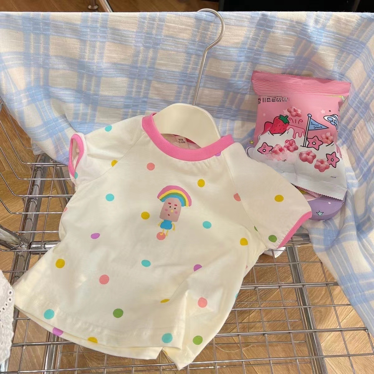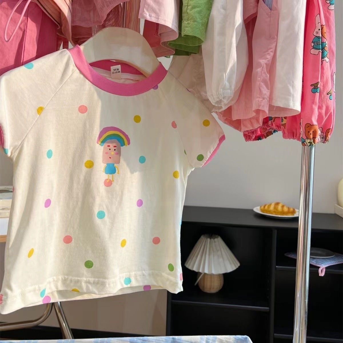 Girls summer suit 2023 New girls fashion polka dot short sleeve children s western style Korean style short two piece suit